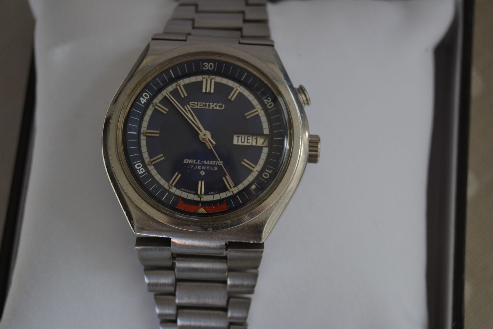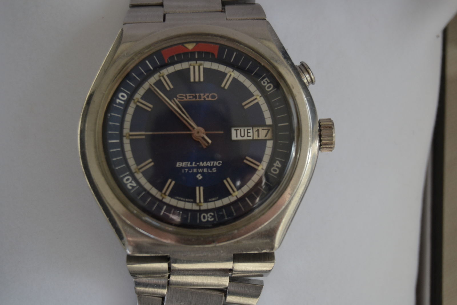 I'm in need of some advice from Bell Matic experts: what are yout toughts about this 6040? The movement has been revised recently (in the photo it seems to have a new part but others look in bad shape). Regarding the dial, shouldn't it say to the right of the 6 hour index 6061? This one says 6060? Thanks in advance.