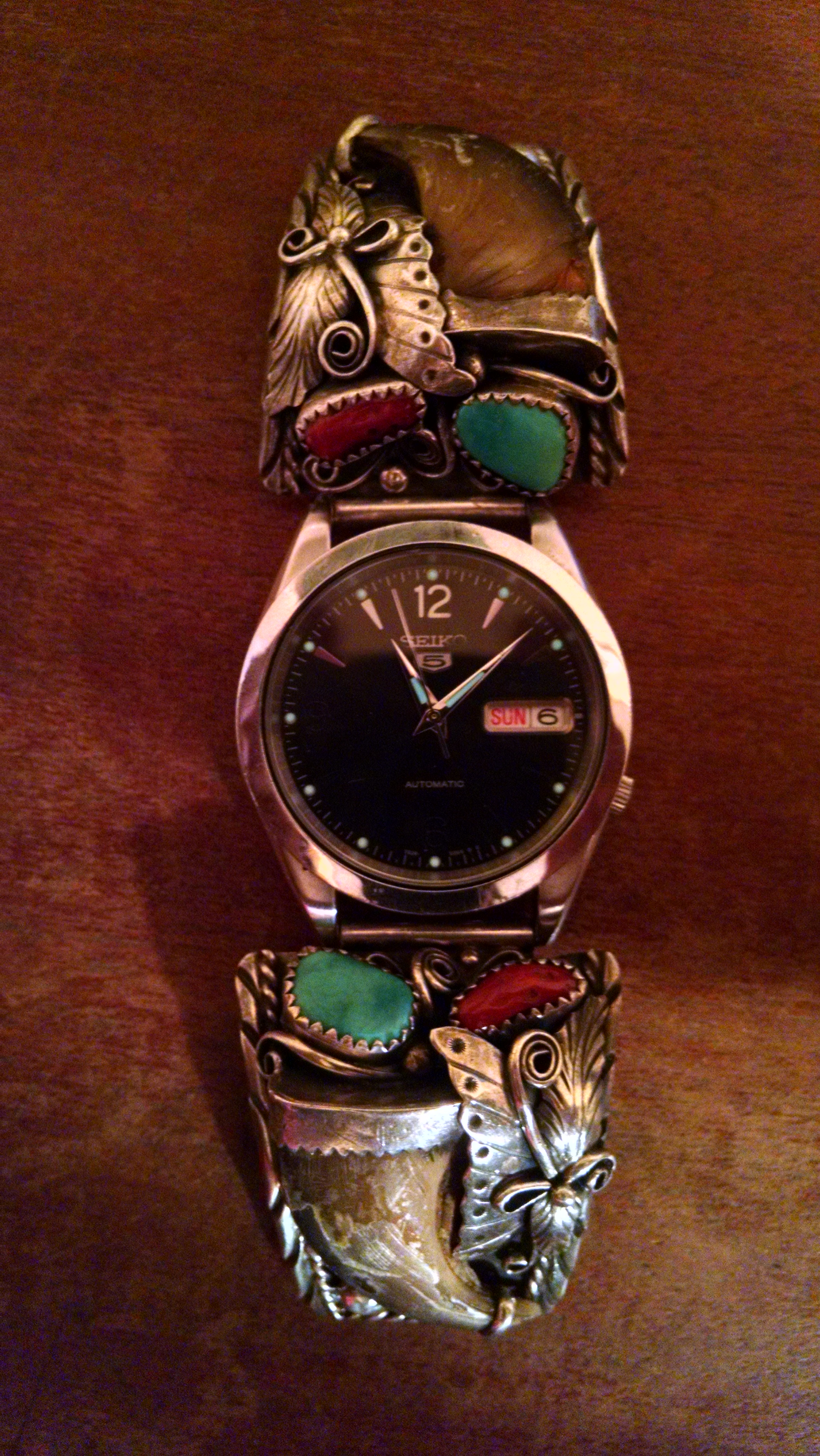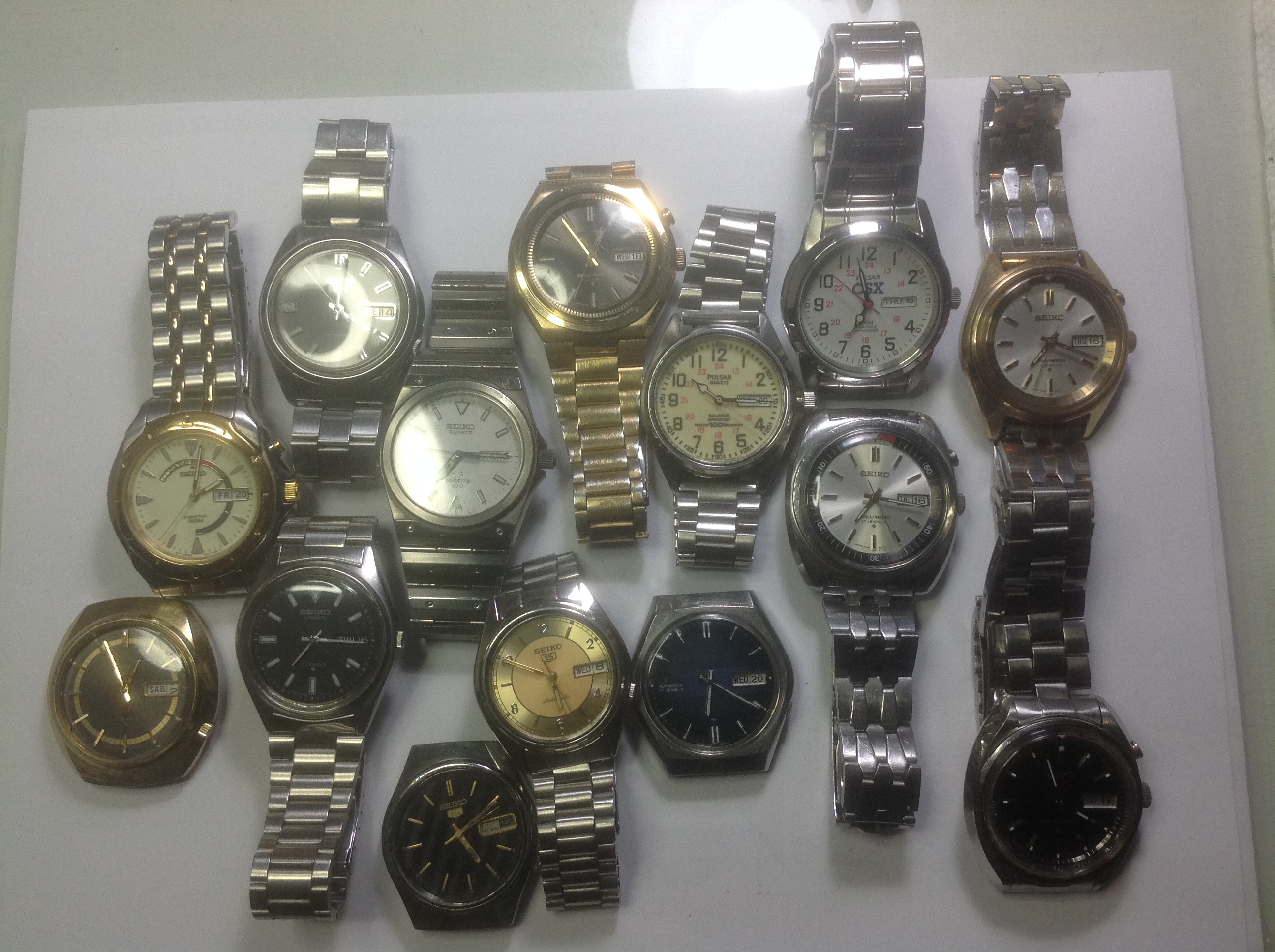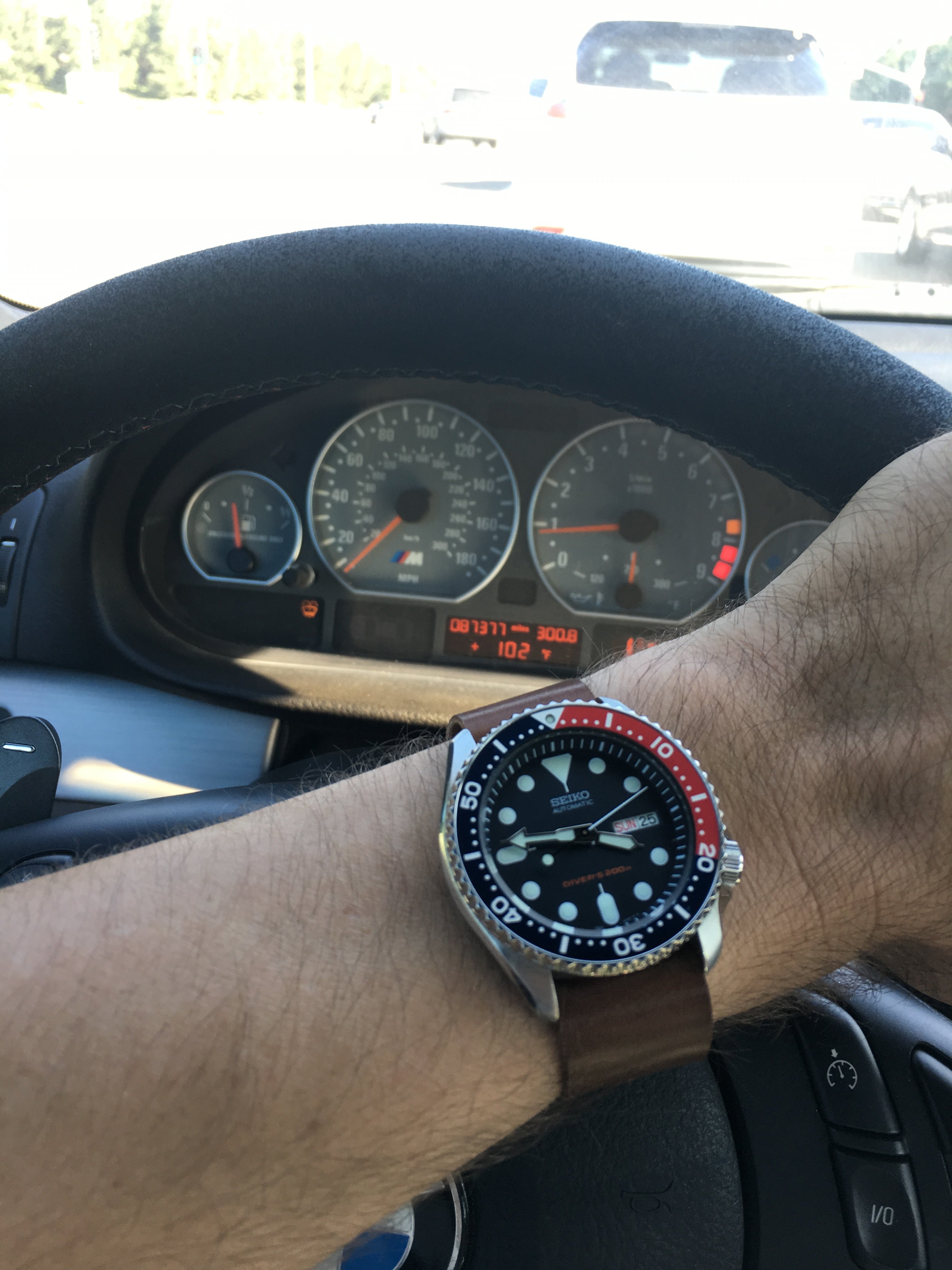 That's my skx on a custom leather strap, and me wearing my girl friends Seiko 5 on a nylon NATO. Plus I have a few vintage pieces.