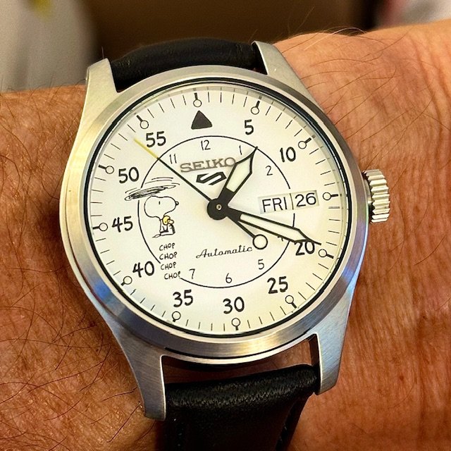 Check out the Snoopy Surfer, released concurrently with the 'chop chop'. It's a 38mm white dial diver sold with a NATO-style strap. Also very appealing, though I have no personal connection to surfing.