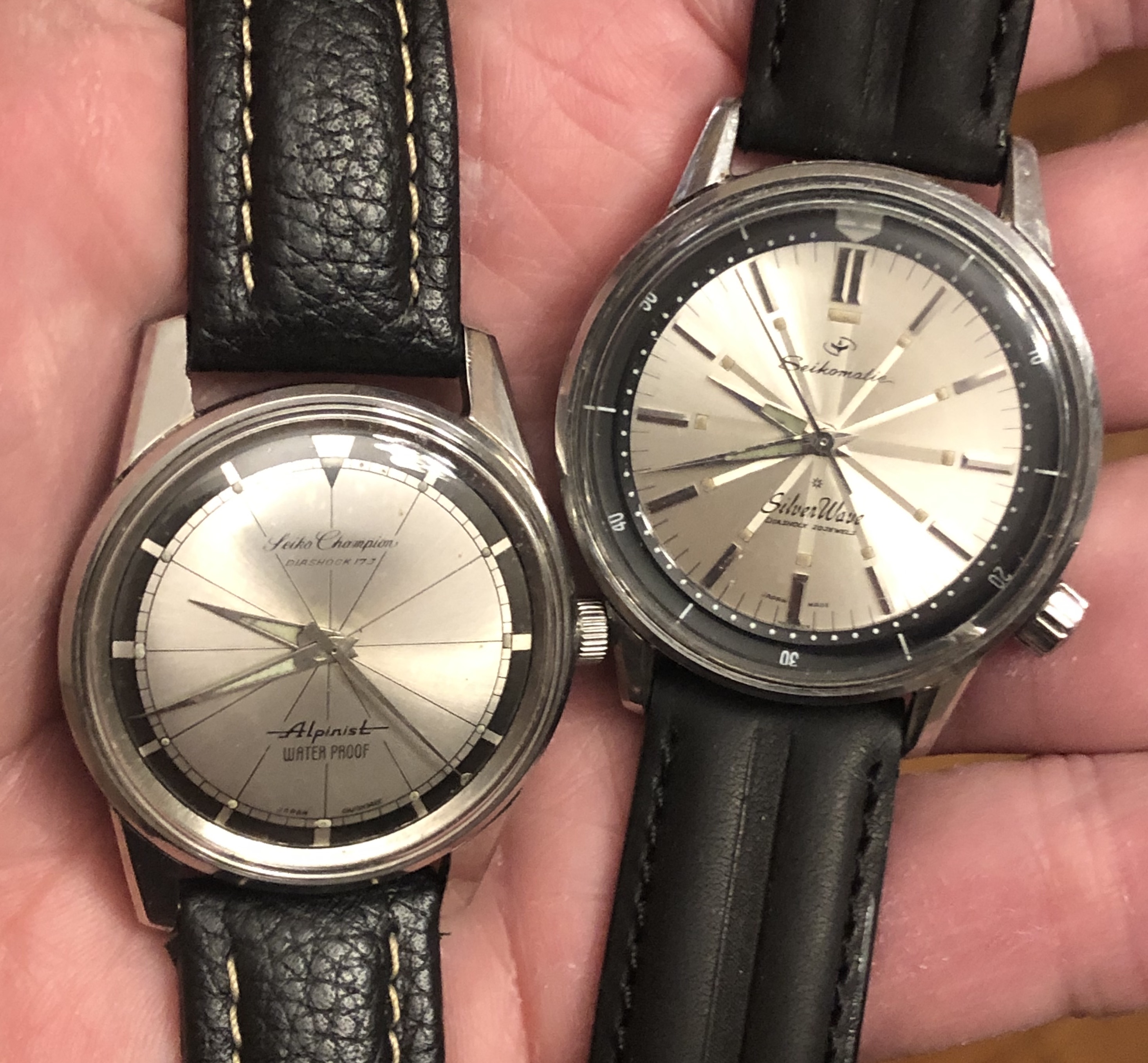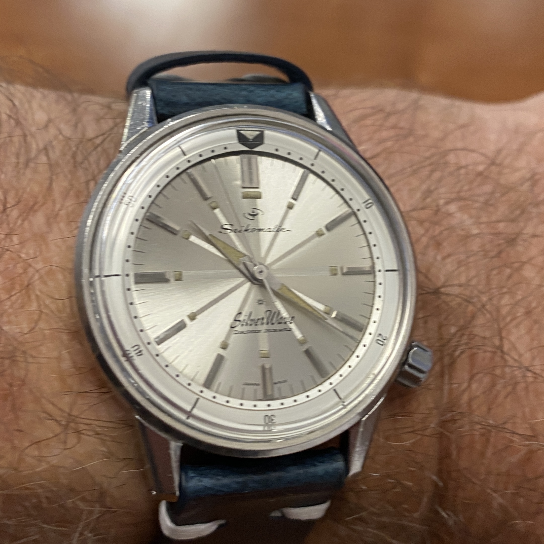 The first Silverwave I bought appeared on ebay about 5 years ago. It was a Sportsmatic 30m from 1964. It was in lovely condition and running perfectly. I can’t remember how much I paid but I think it was about £300. I then bought a Seikomatic 50m with Sunburst dial from another collector. The Sunburst dial Silverwave must surely be one of the most difficult watches to read the time ever produced, particularly under water I imagine.