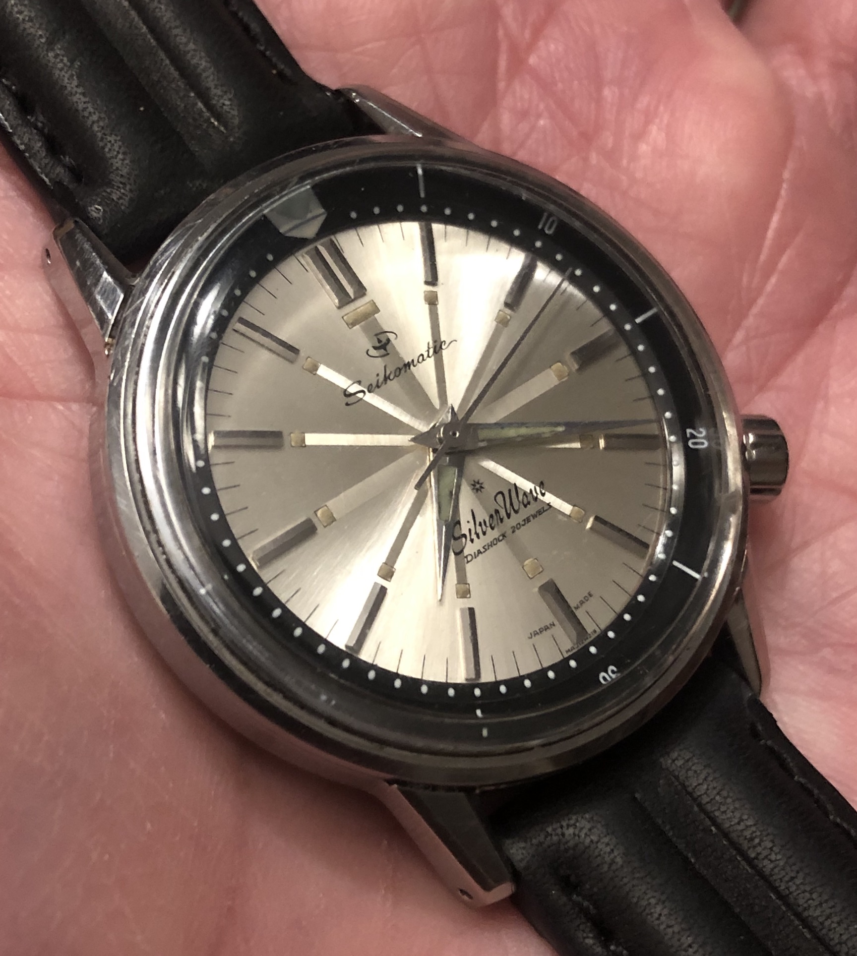 Seikomatic Silverwave 50m, Silver dial, Black rotating bezel