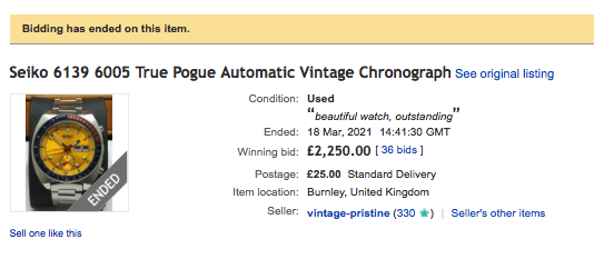 we have a few of them but I doubt your value predictions will work in the real world. the name "pogue" has been thrown around for so many years on the internet for anything with that case design regardless of dial color or configuration that the genuine examples' values are diluted.