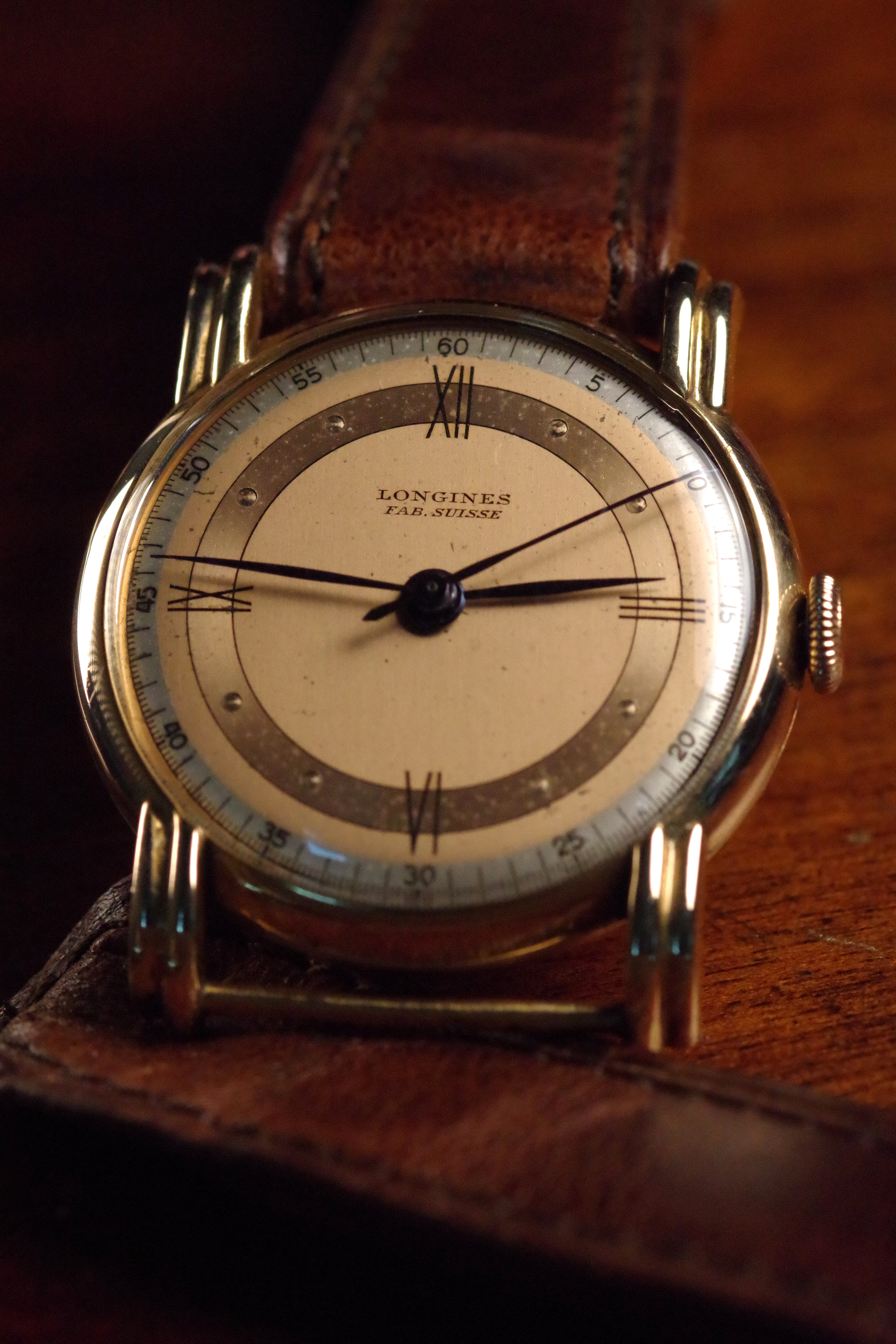 Posts 431 Likes 739 JohnLy 路Feb 8, 2023 dirtydata Posted about this Longines a couple months back and ended up scooping it for myself. 18k rose gold French case with prominent stepped lugs. Bi-colored salmon dial with Roman numeral and dot hour markers surrounded by a silver minute track. killer dial and case combination.