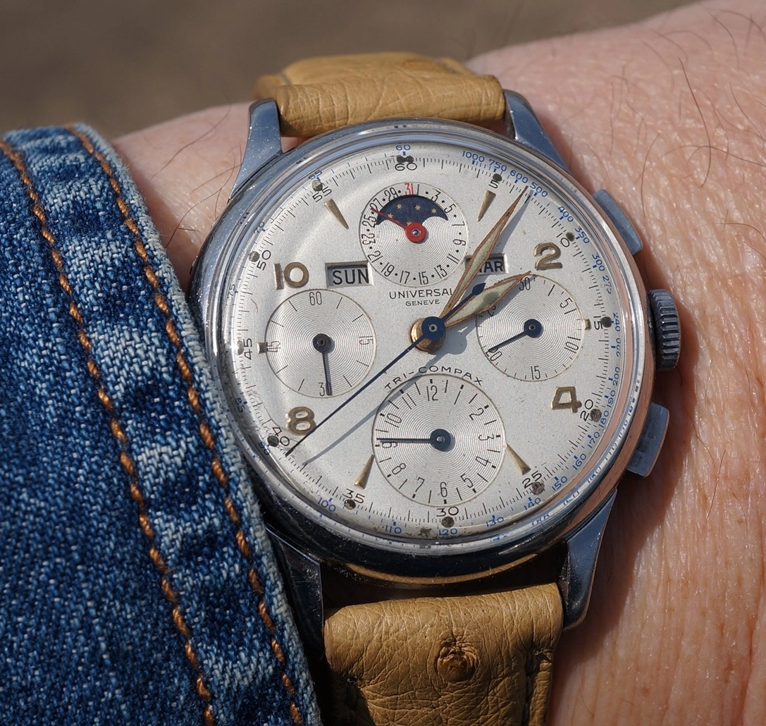 Threads like this remind me of my own UG Tri-Compax journey that started about 4 years ago with many questions and a few threads asking for dial and watch evaluations from the experts here. I persisted and it paid off and I now have 3 of these beauties. The point is that while new people are constantly joining and asking questions about watches they like, the advice is always the same - self education is key (in fact essential) and there is no short cut to it (many, many hours spent viewing listings here and at auctions houses, both current and old). Using resources is highly advantageous (there are a few sites and online resources dedicated to specific models like the Polerouter in addition to a number of threads here) but nothing beats having the revised edition of the Sala book. Having said that, for me personally, the tipping point came when Max Bernardini exhibited about 50 of his watches at the DWW and I had the chance to personally inspect many of them. This completely changed the game for me. I may not be able to describe with accuracy as some of the experts here can "why" a certain dial isn't original, but my eye is forever trained (in most instances) and I can spot a redial with much more ease than I could before.