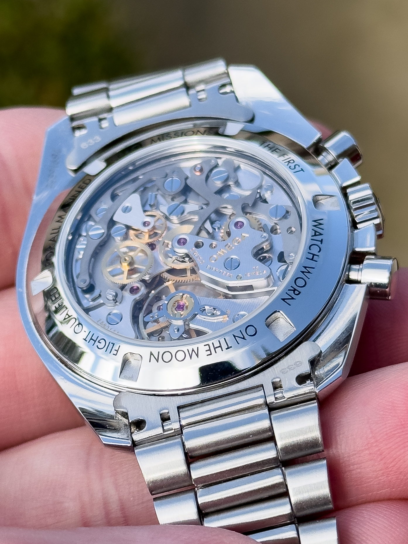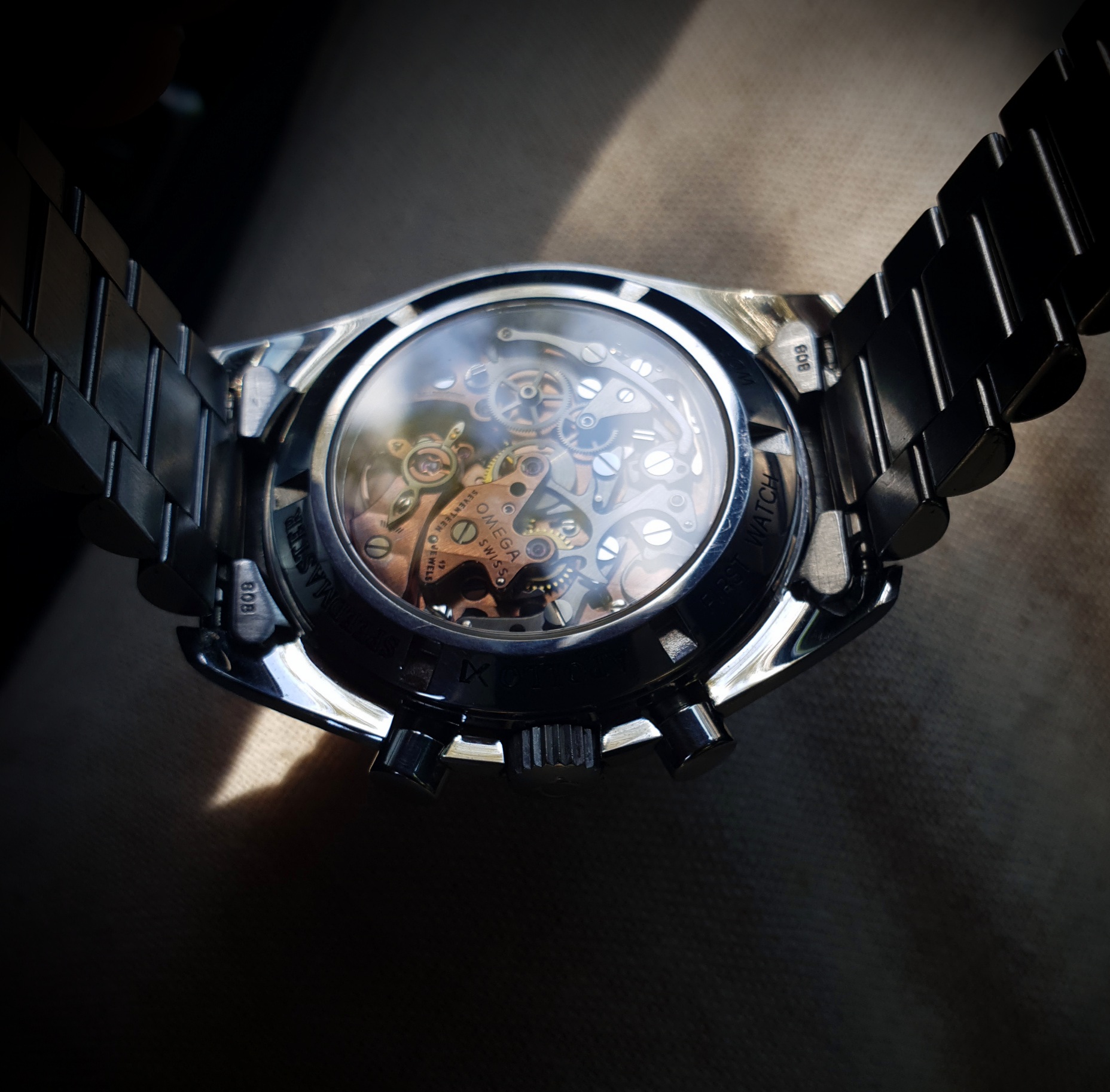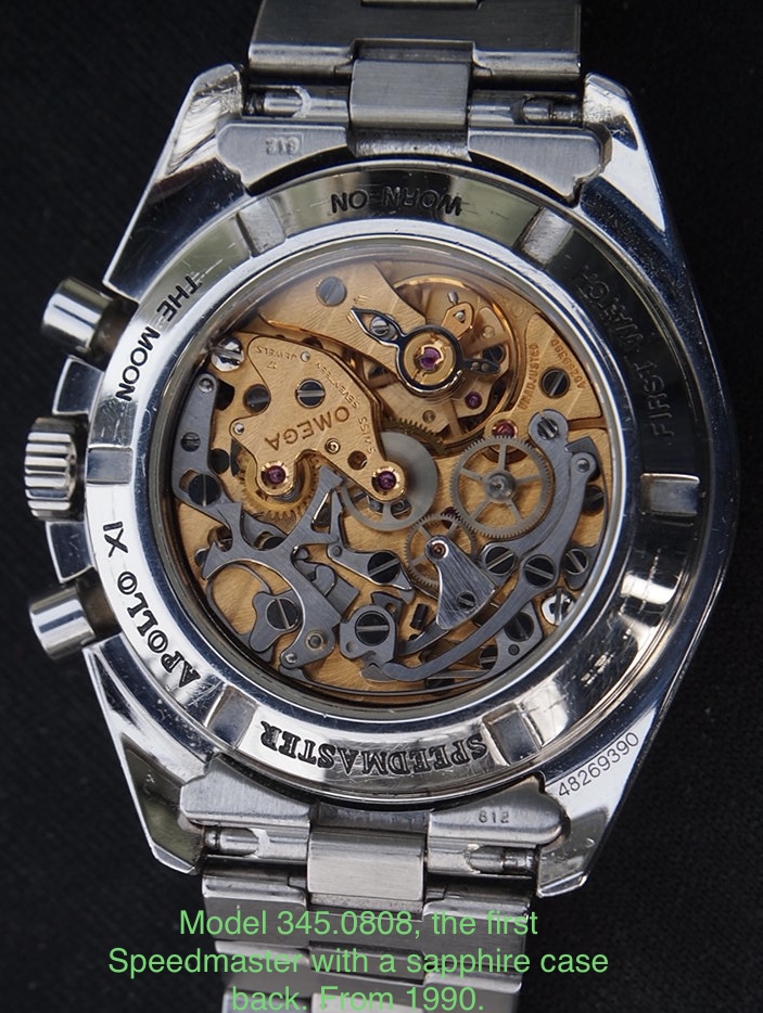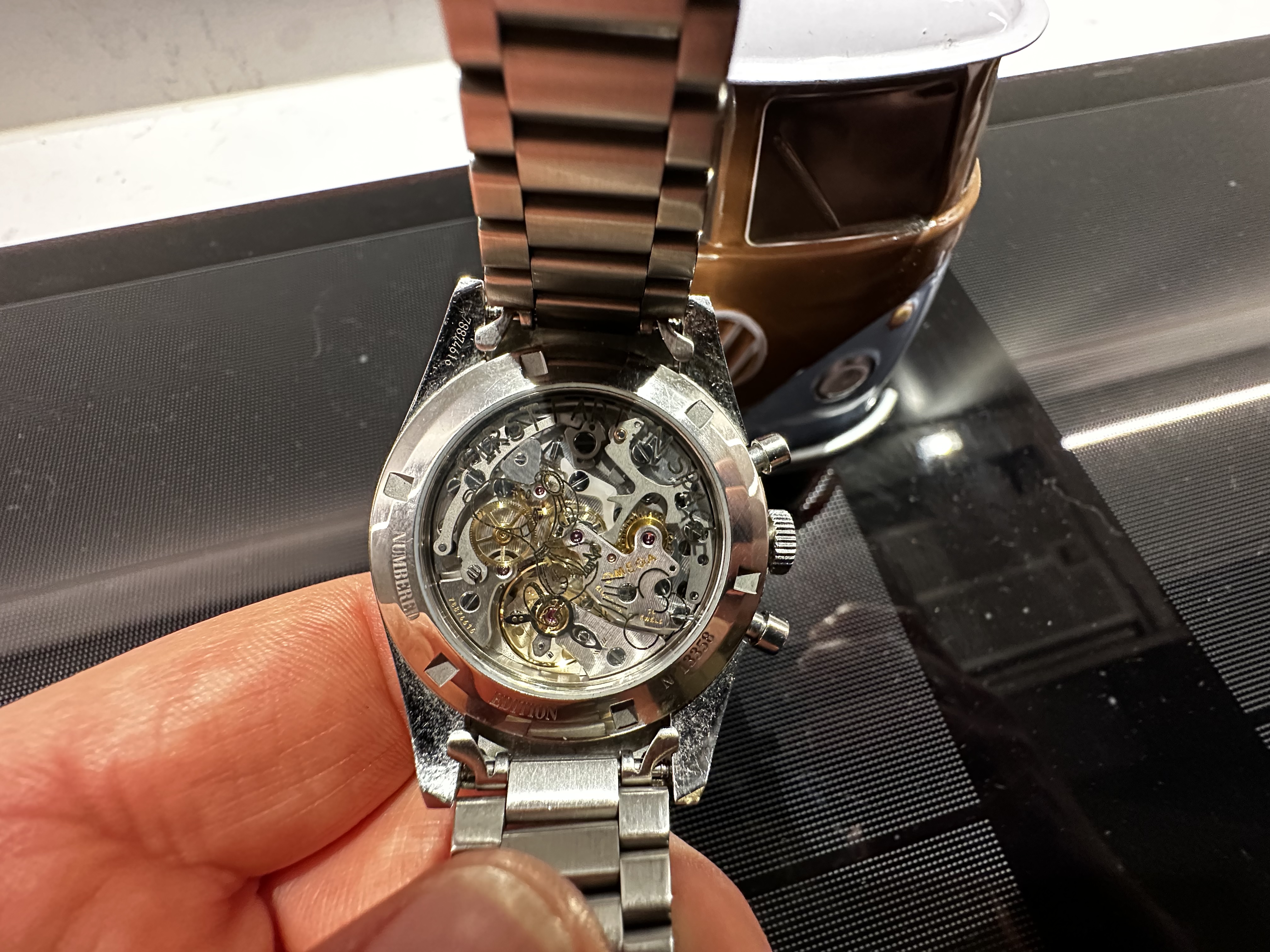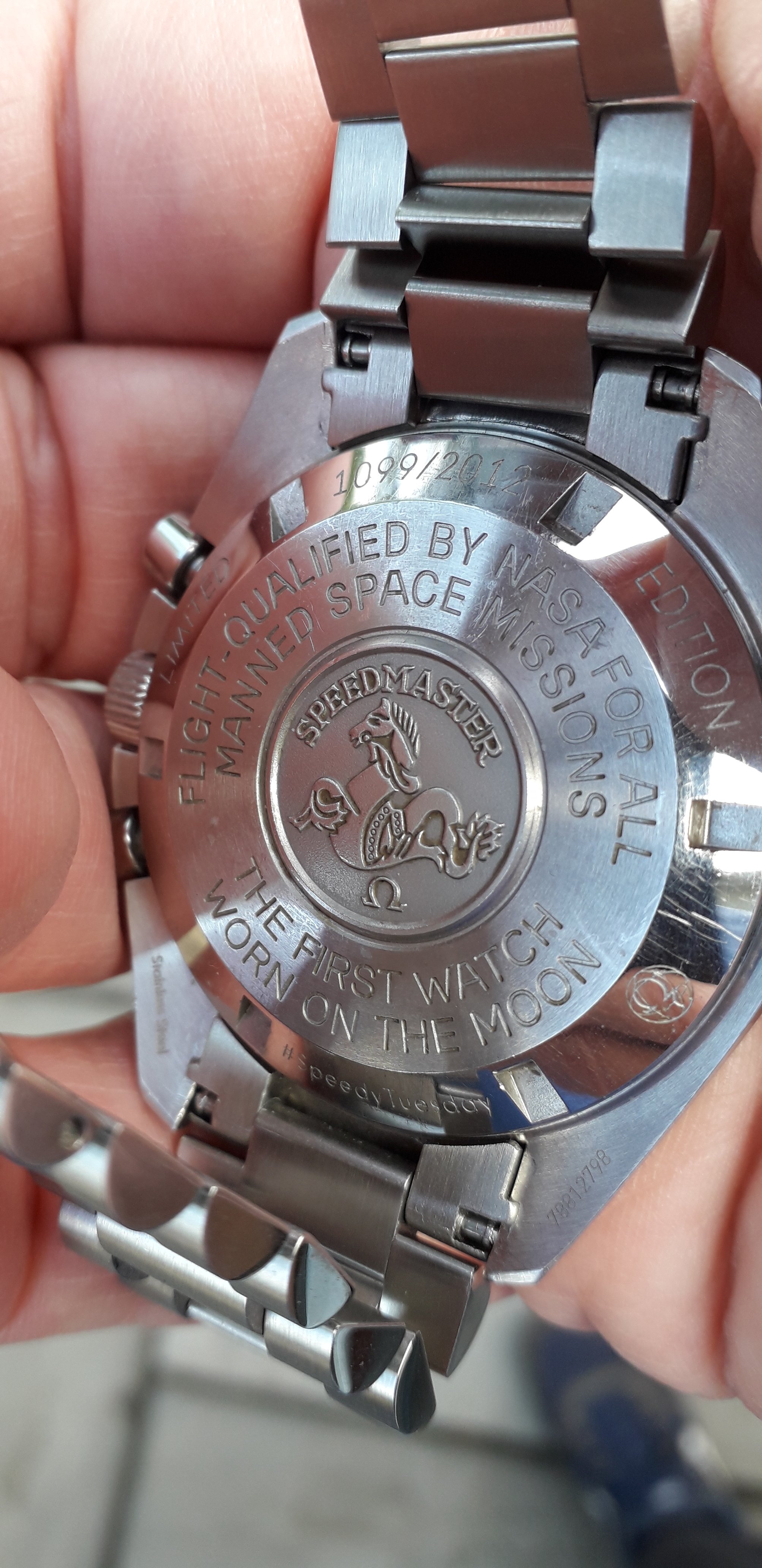 Posts 7,518 Likes 13,894 Evitzee ·May 4, 2023 Omega sapphire back on a 3575.20 date/moon Speedmaster from ca. 2002, reconditioned cal. 1866 by Adam Lewis.
