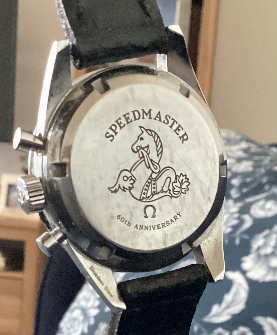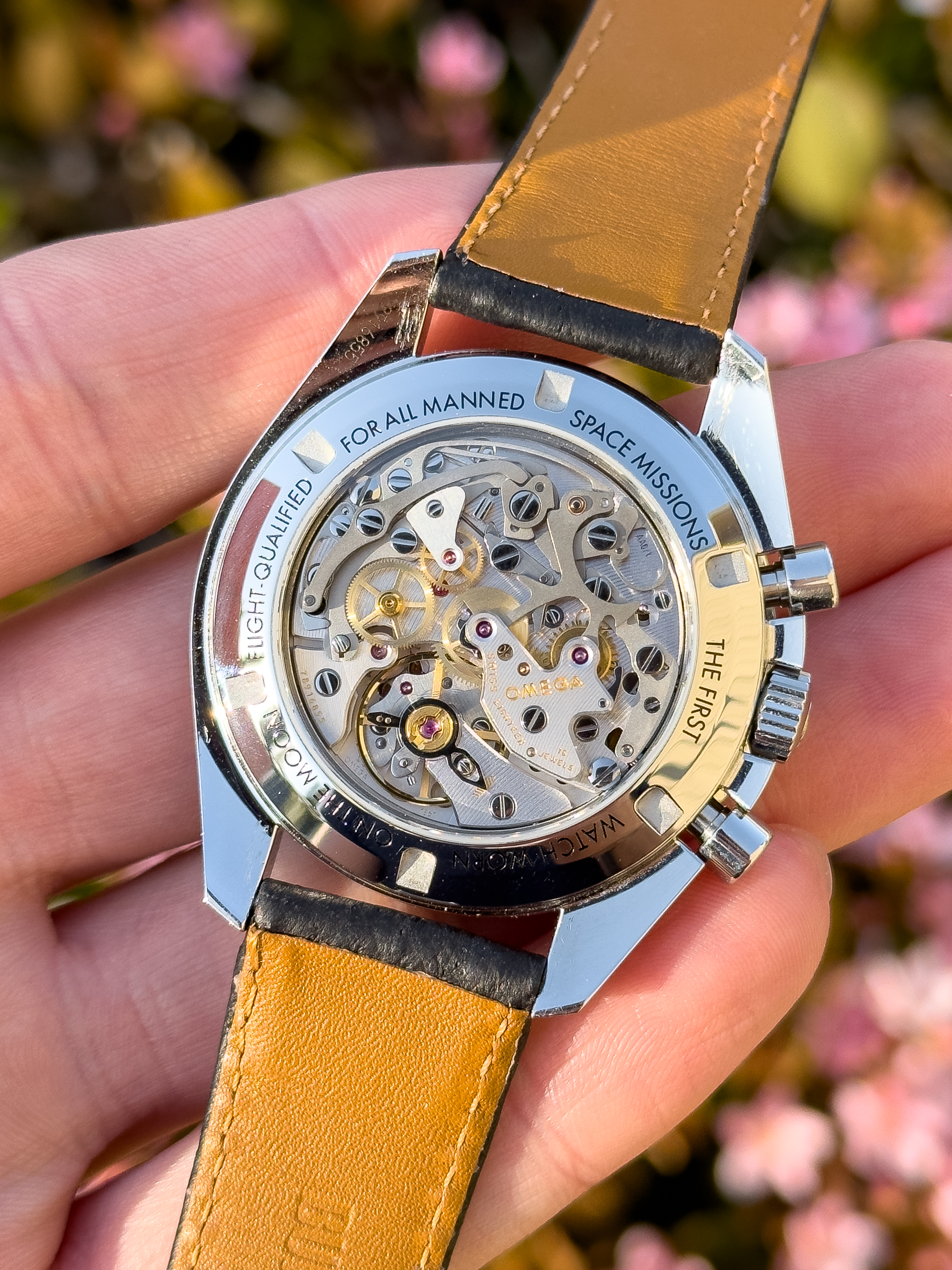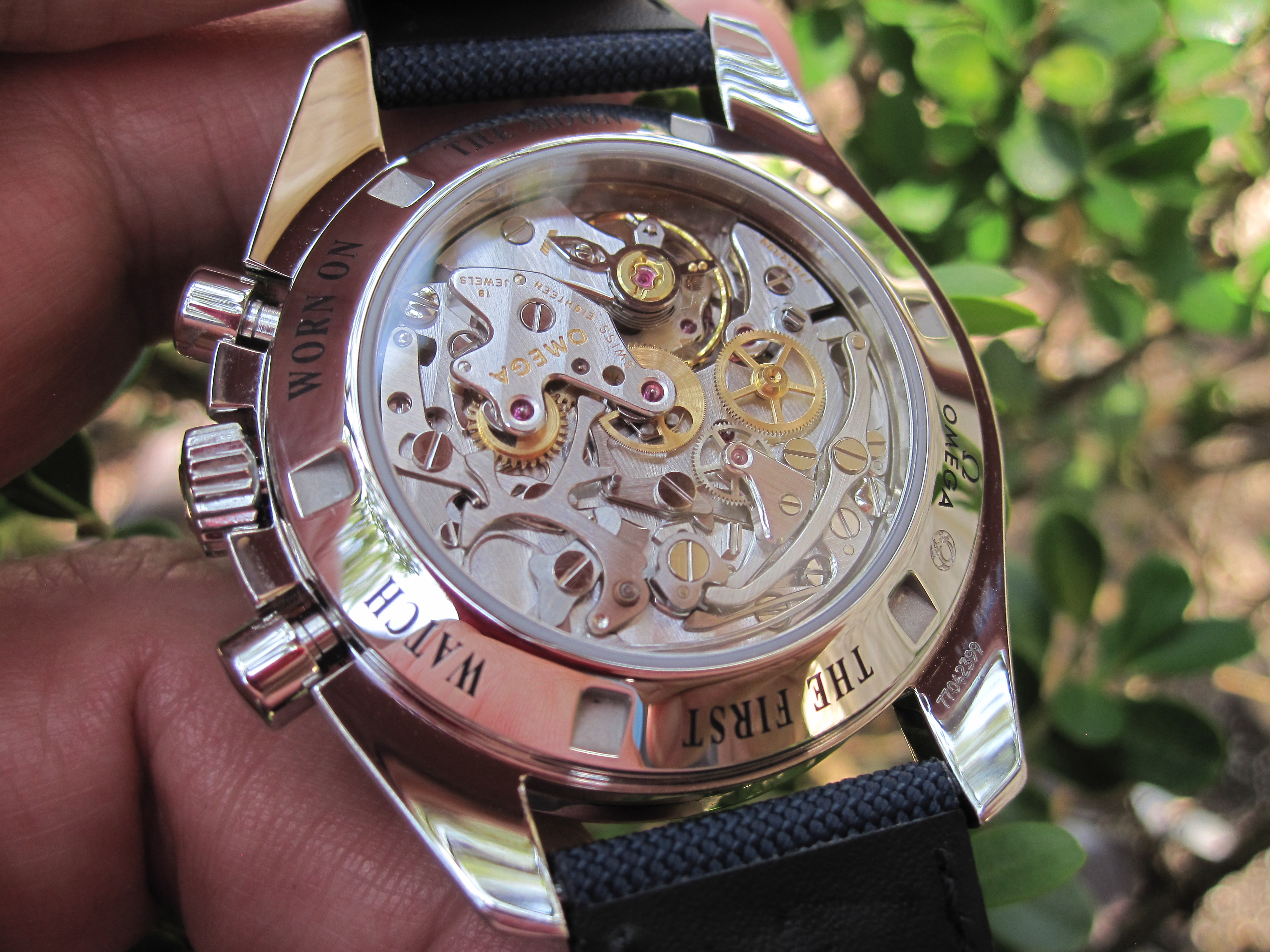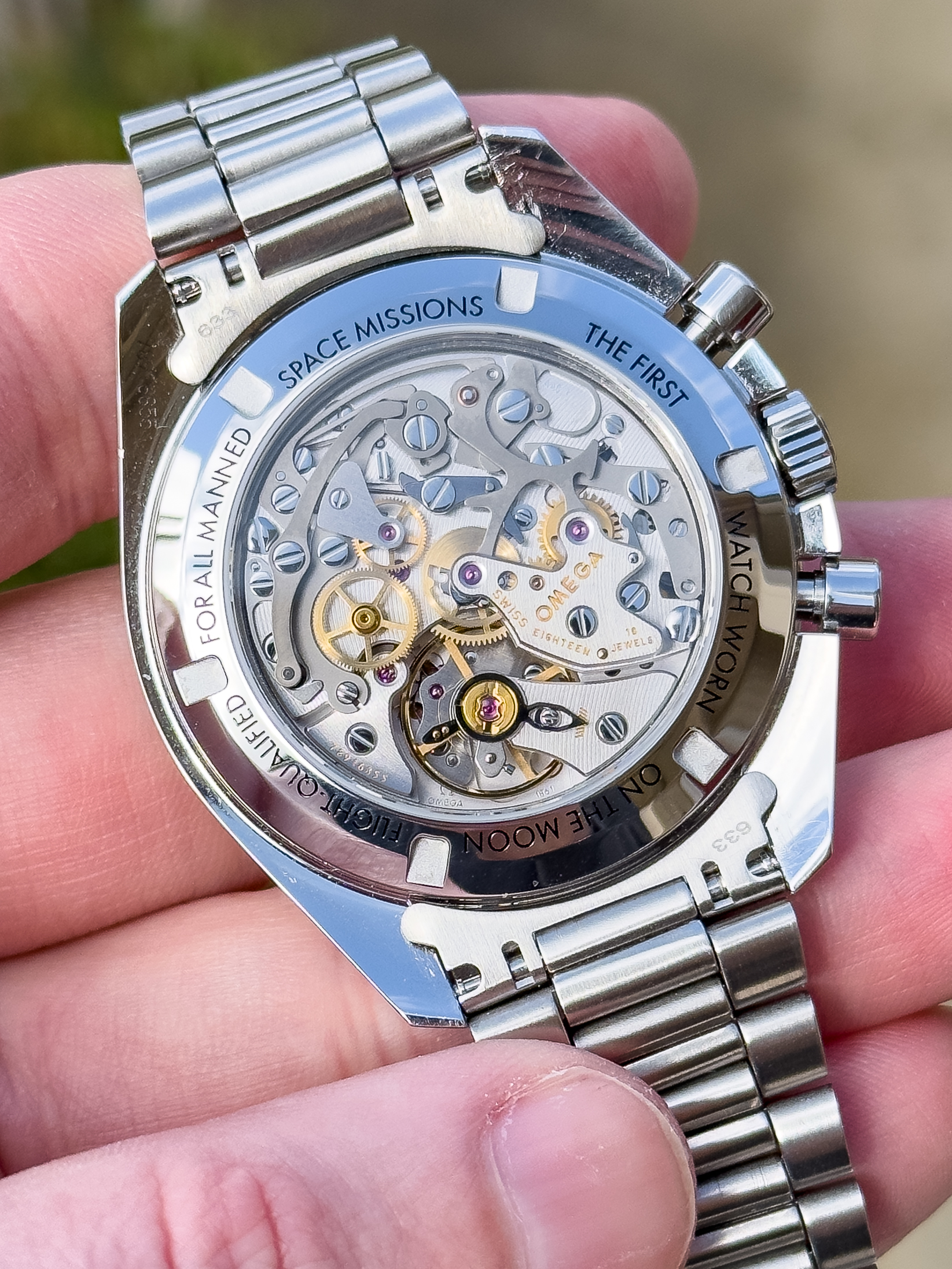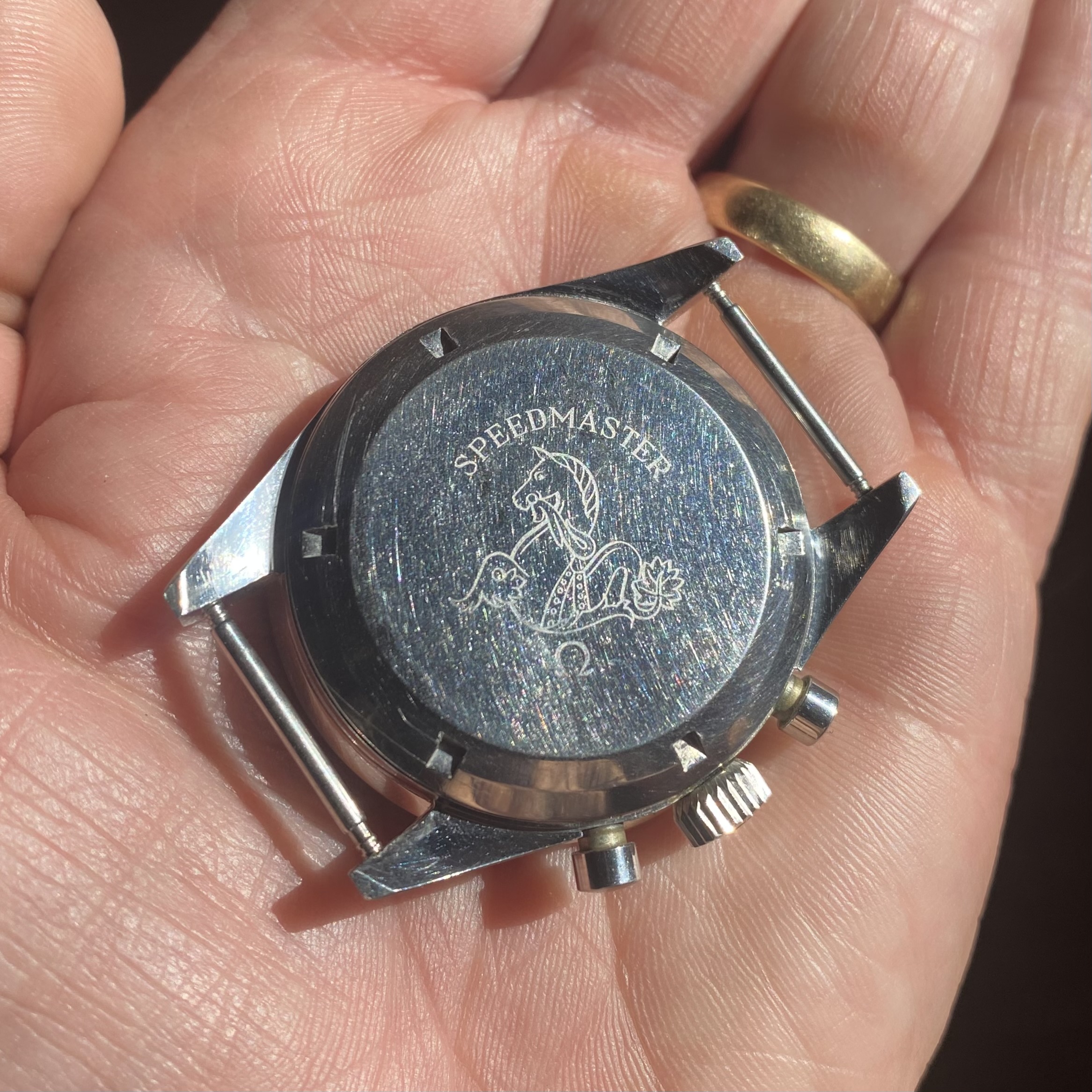 Posts 7,518 Likes 13,894 Evitzee ·May 4, 2023 Omega sapphire back on a 3575.20 date/moon Speedmaster from ca. 2002, reconditioned cal. 1866 by Adam Lewis.