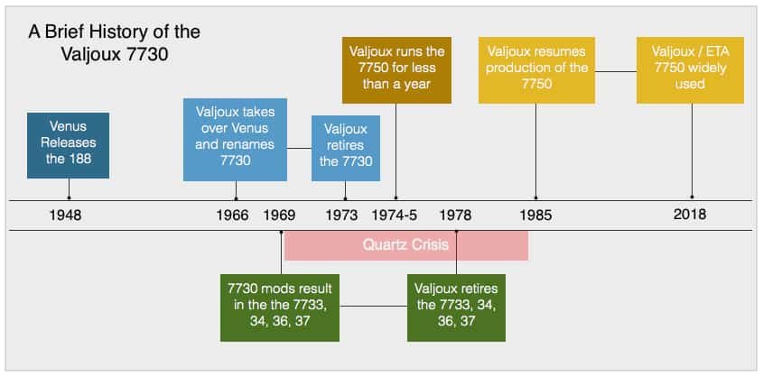 Image source and copyright: Farmelo A. (Worn & Wound): Chronography 13: The Important History of the Valjoux 7730, a Classic Mid-Century Movement, April 26, 2018