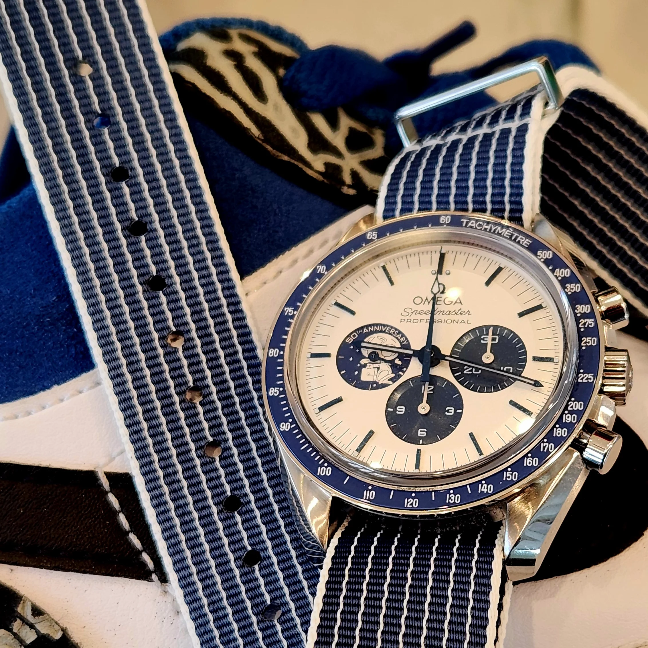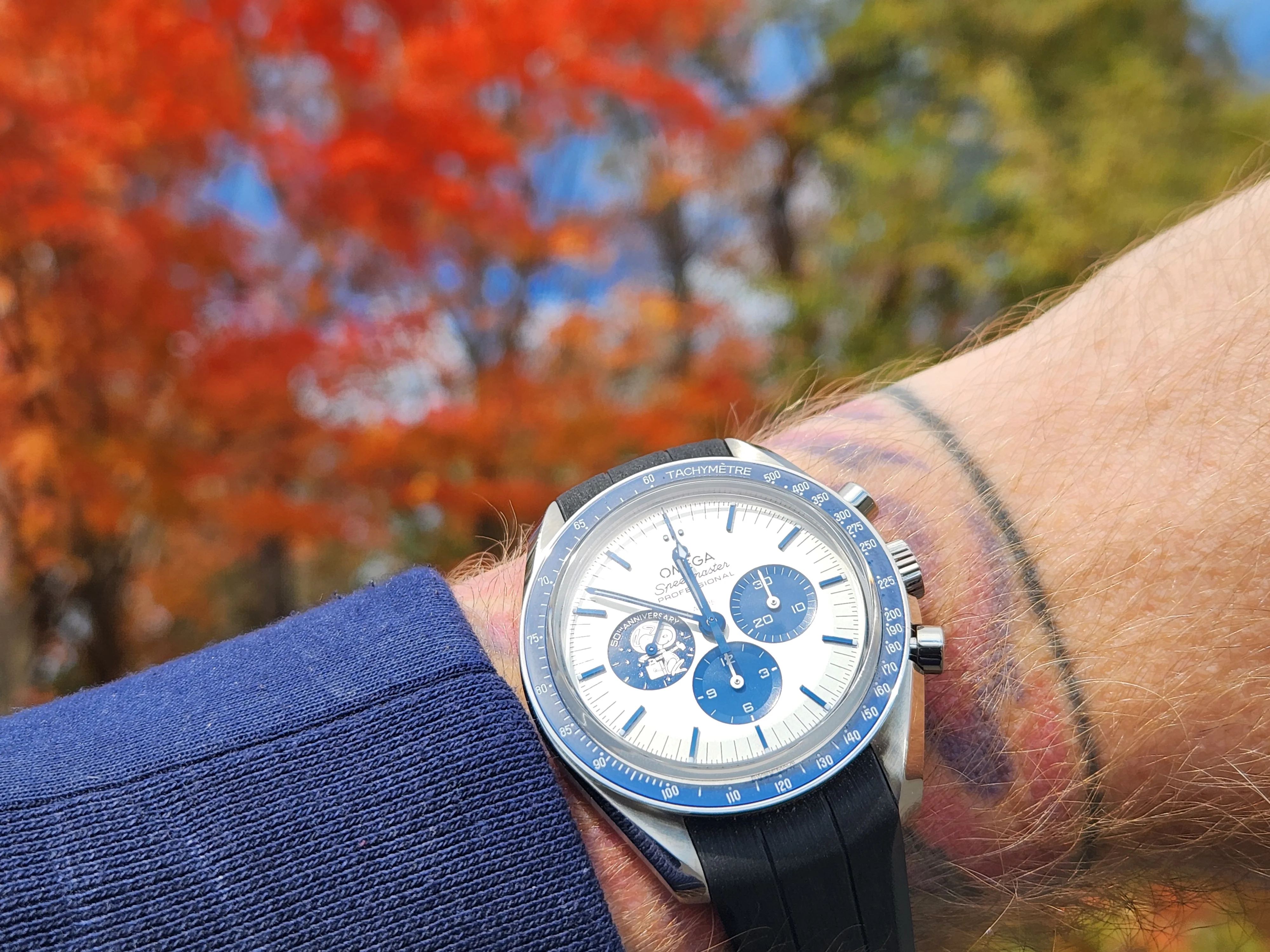 Posts 451 Likes 1,026 JetLinks ·Mar 15, 2025 PandaSPUR A macro shot I took of the back: Great shot!! But it makes me wonder why Omega added 2 variations of blue but no green? (or is it not meant to be Earth? Lol) And why cover this all up with a nato strap?