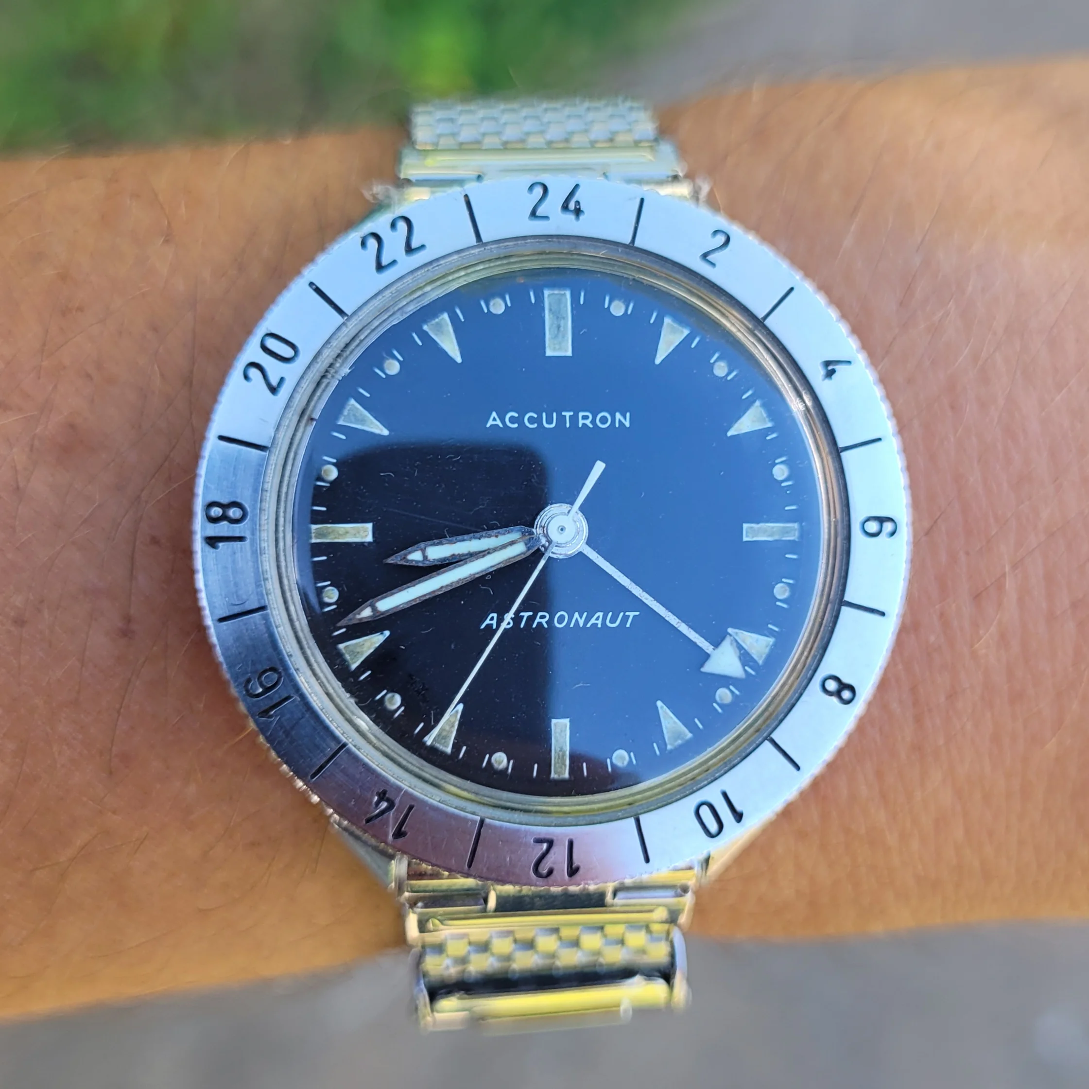 Railroad Monday on the Vintage Accutron thread? I’m for it! Considering the tuning fork Accutron hasn’t been made for close to 50 years, is there such a thing as an Accutron that isn’t vintage? You’ve likely seen this one before. My Accutron 214 model from 1967 (58 years old) with a Canadian 24-hour dial, and double hour hand. I have often wondered if the dual hour hand had ever created confusion, with the wearer reading the wrong hand!