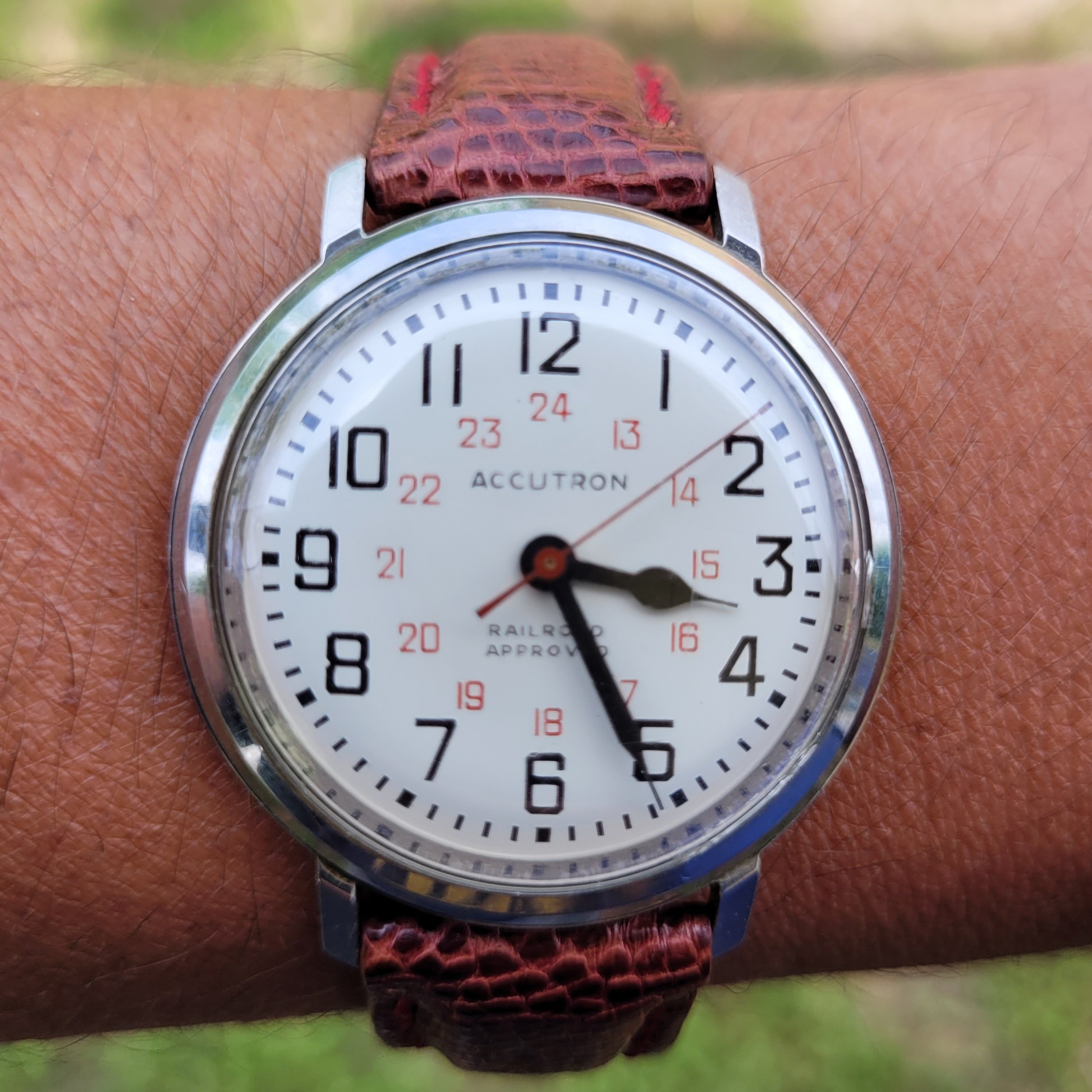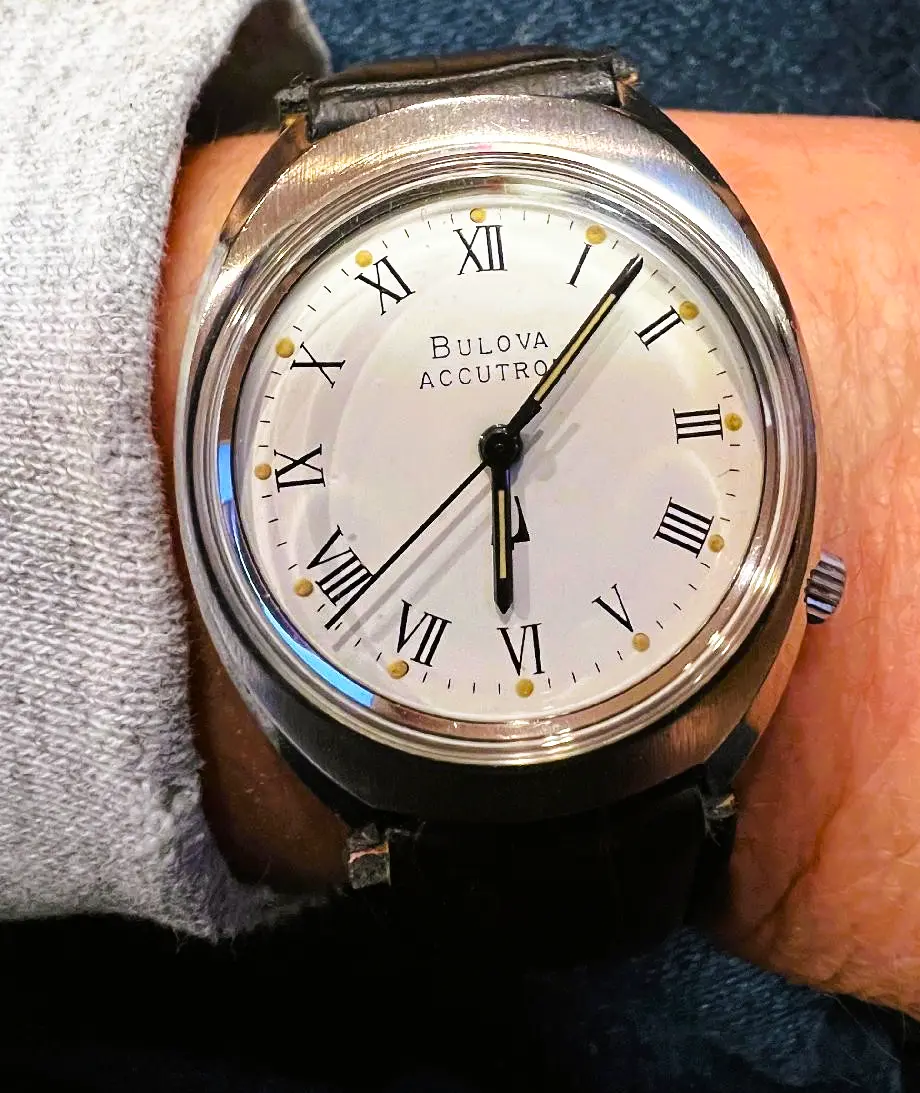 No pictures at this time, but a friend (in his 30s) has happened upon a treasure trove of Accutrons, and Accutron parts, residue from the estate of a deceased watchmaker. Without exaggeration, this trove consists of in excess of 100 complete Accutrons. Also , his bounty includes Accutron donor movements (50 or so), and tin boxes containing dismantled Accutrons. I haven’t had the chance to go through a box contains a huge assortment of miscellaneous NOS parts envelopes to see what is there. There are 214 and 218 watches and movements, Omega F300 watches and movements, and assorted other makes that use the F300 movement, AND Hamilton Electrics! Plus, numerous antique tools as might have been used by a watchmaker, staking tool, two timing machines (not complete), the total number of boxes too numerous to fit into the box of his Hyundai truck. He has his sights set on an Accutron Astonaut (214) which will be his first project. This one will be his first endeavour in servicing an Accutron. Stay tuned!