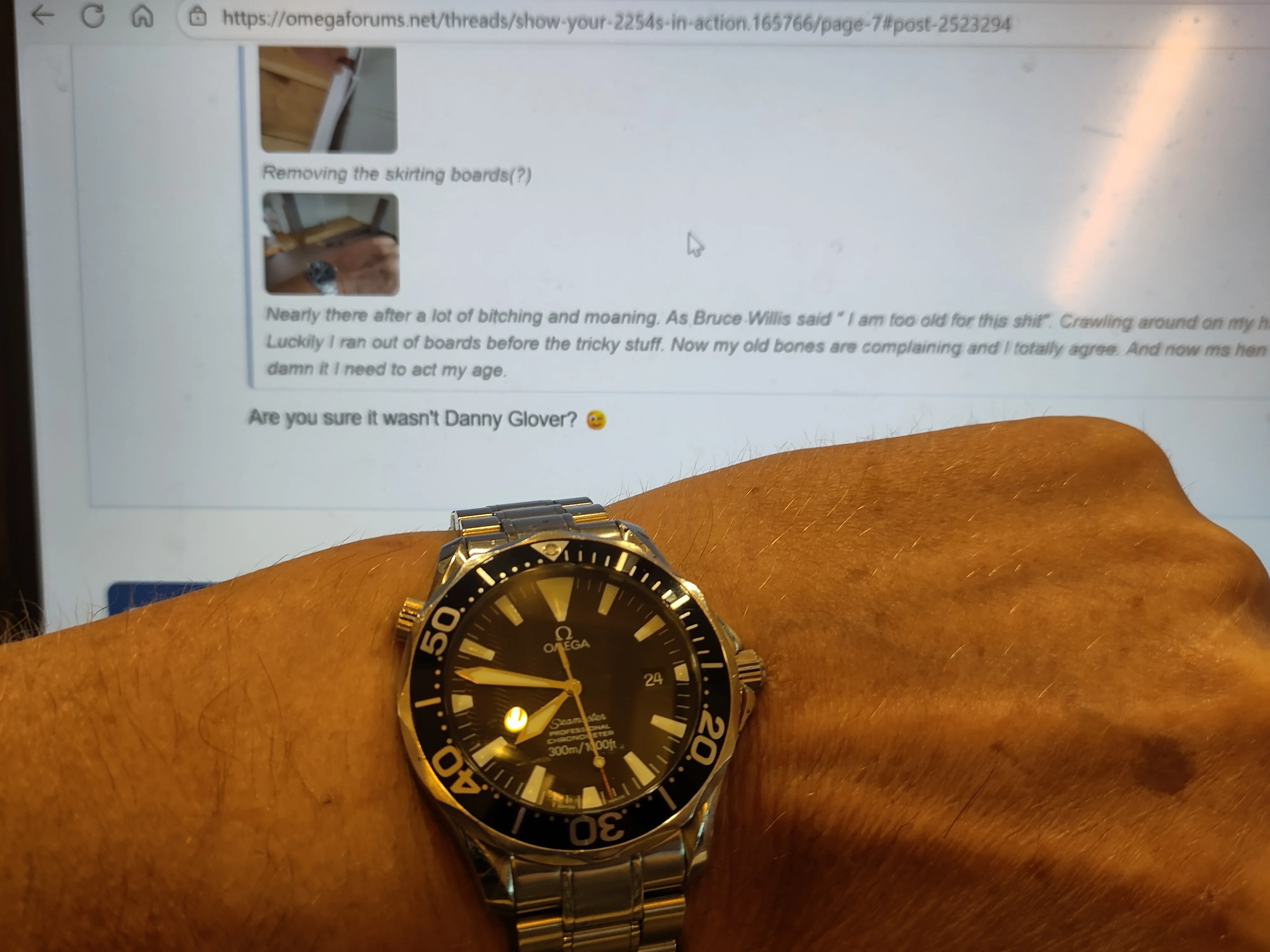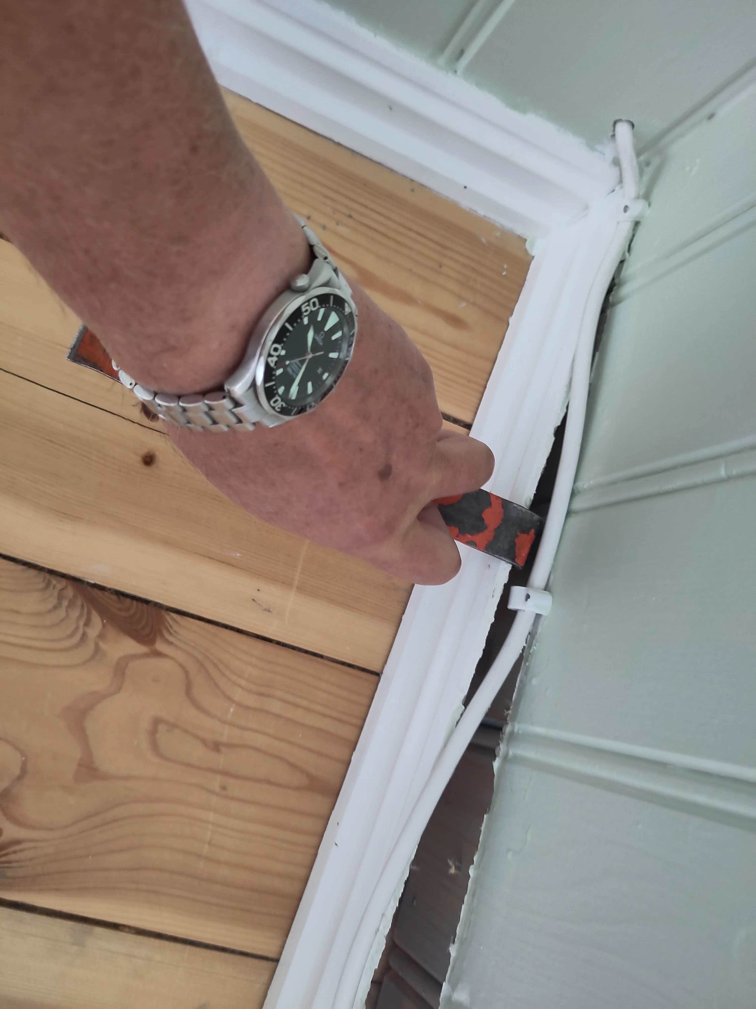 Removing the skirting boards(?) Nearly there after a lot of bitching and moaning. As Bruce Willis said " I am too old for this shit". Crawling around on my hands and knees in not my thing any moore. Luckily I ran out of boards before the tricky stuff. Now my old bones are complaining and I totally agree. And now ms hen wants me to take her to a punk consert, damn it I need to act my age.