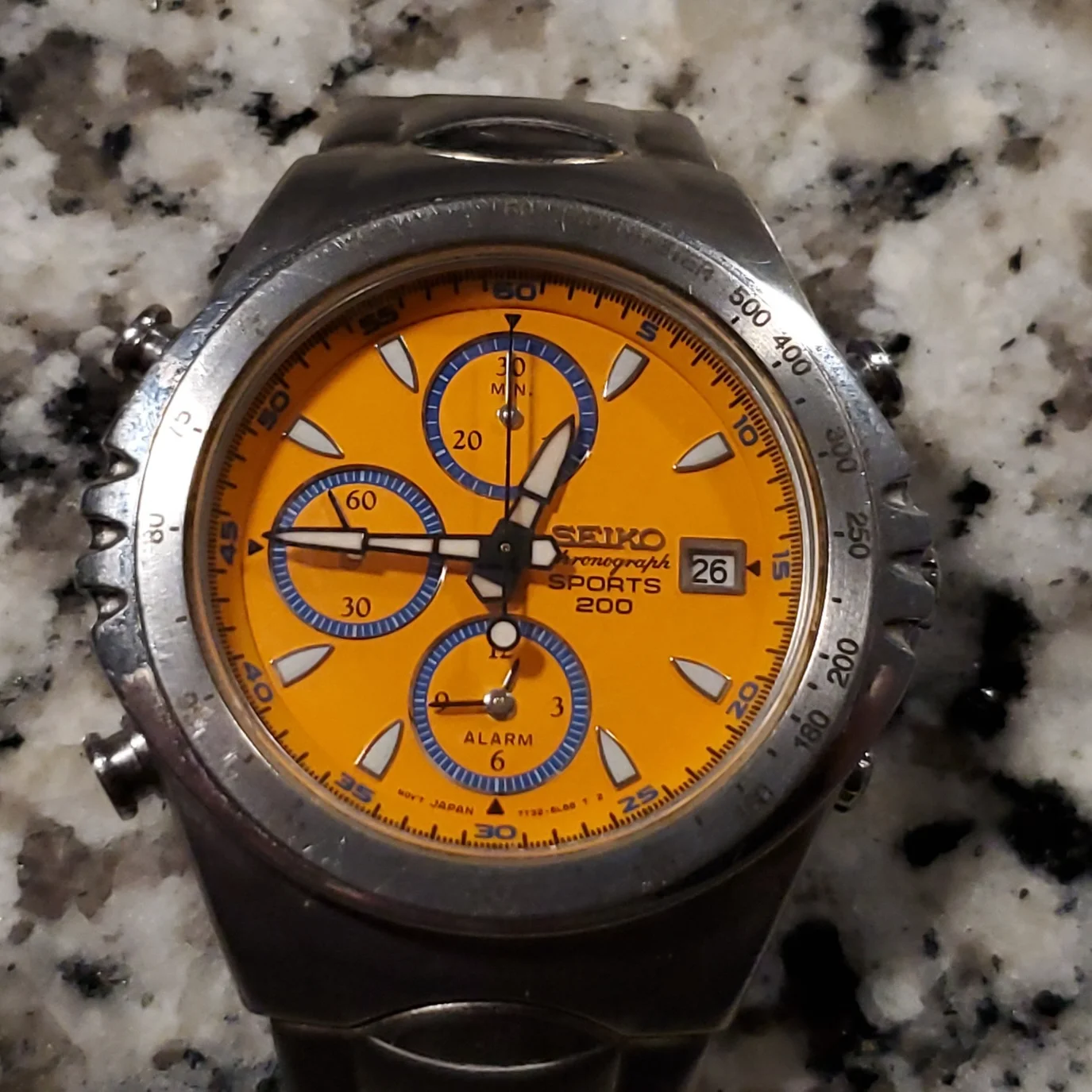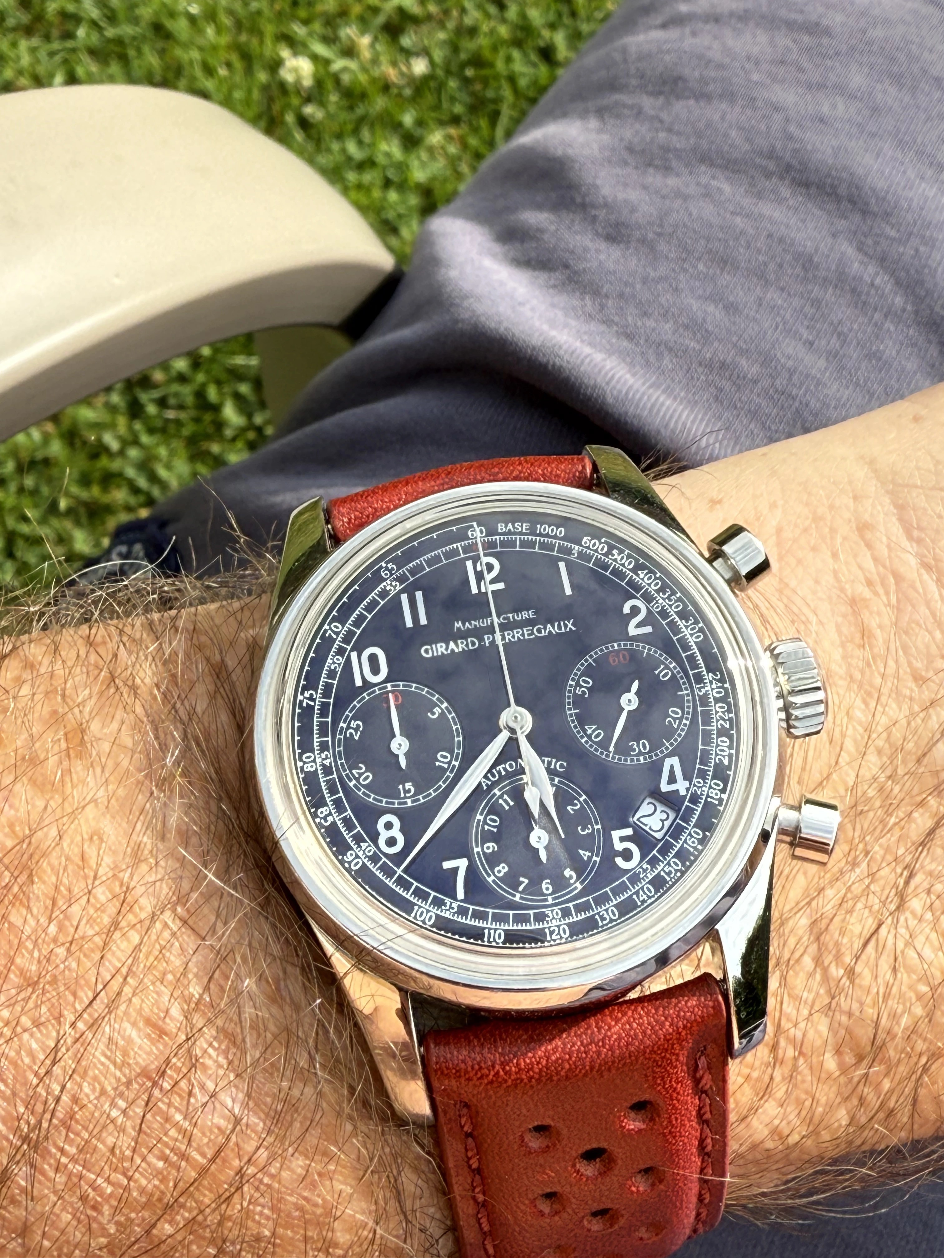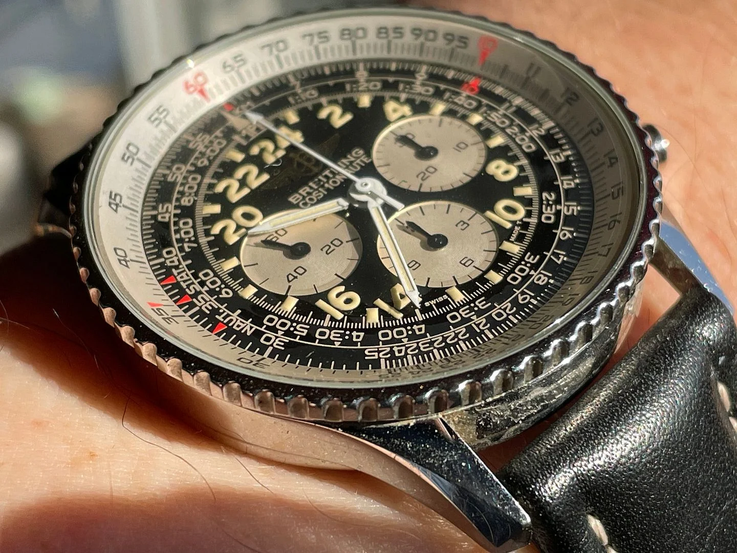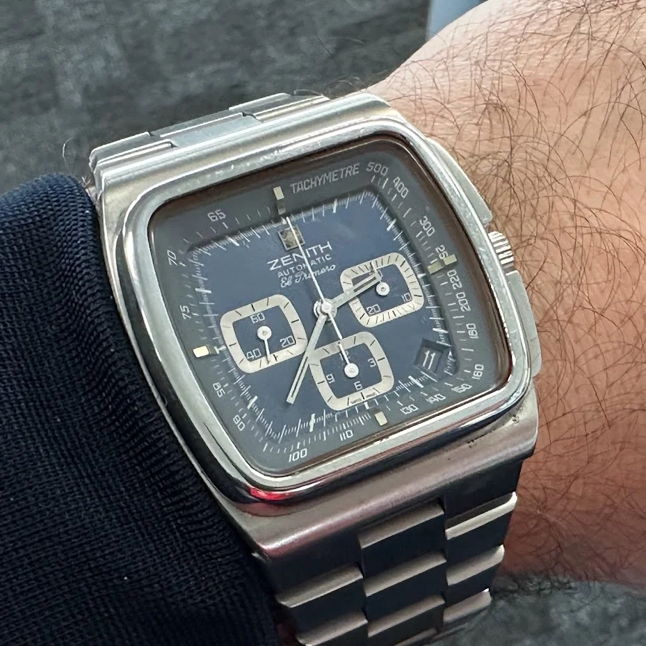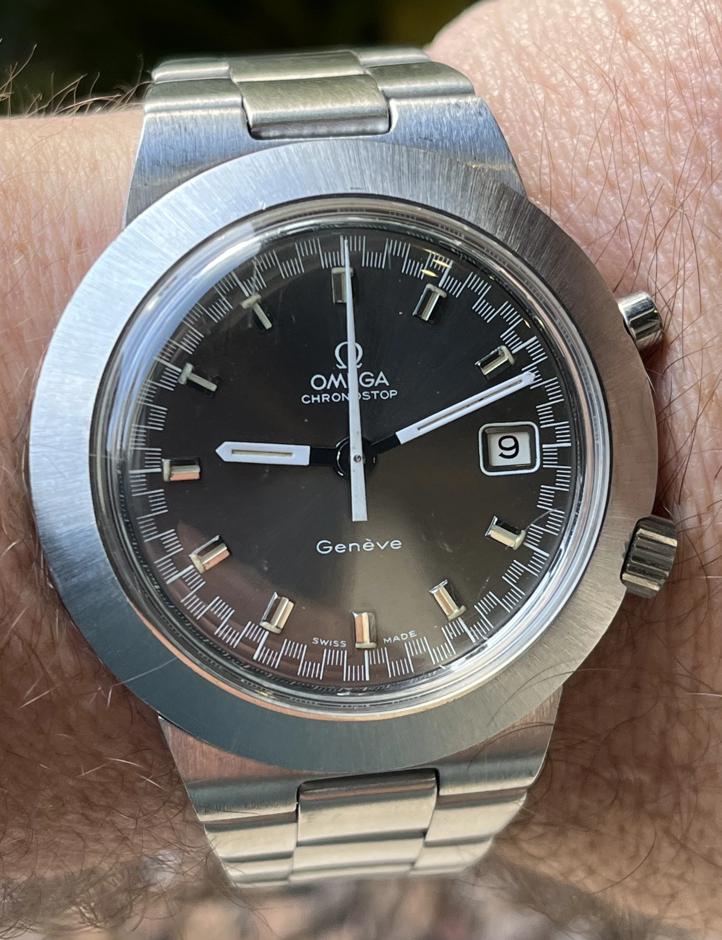 Elvstrom’s Yacht watch was an ingenious adaptation of the Regate watch originally produced by aquastar whereby it not only counted off the time with the minute discs and a central second chrono hand , which by the way reverted to a normal second hand , from the ten minute gun so as to arrive on the start line as gun gun went off but also to pre plot your course to steer by compass from mark to mark whether the wind is aft or forward of the beam. This is a titanium case which I understand was the last model before Paul Elvstrom jumped ship from Omega to Rolex and Omega recalled all .