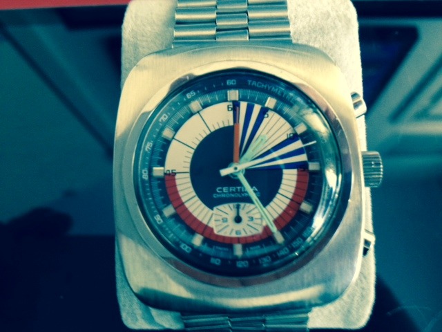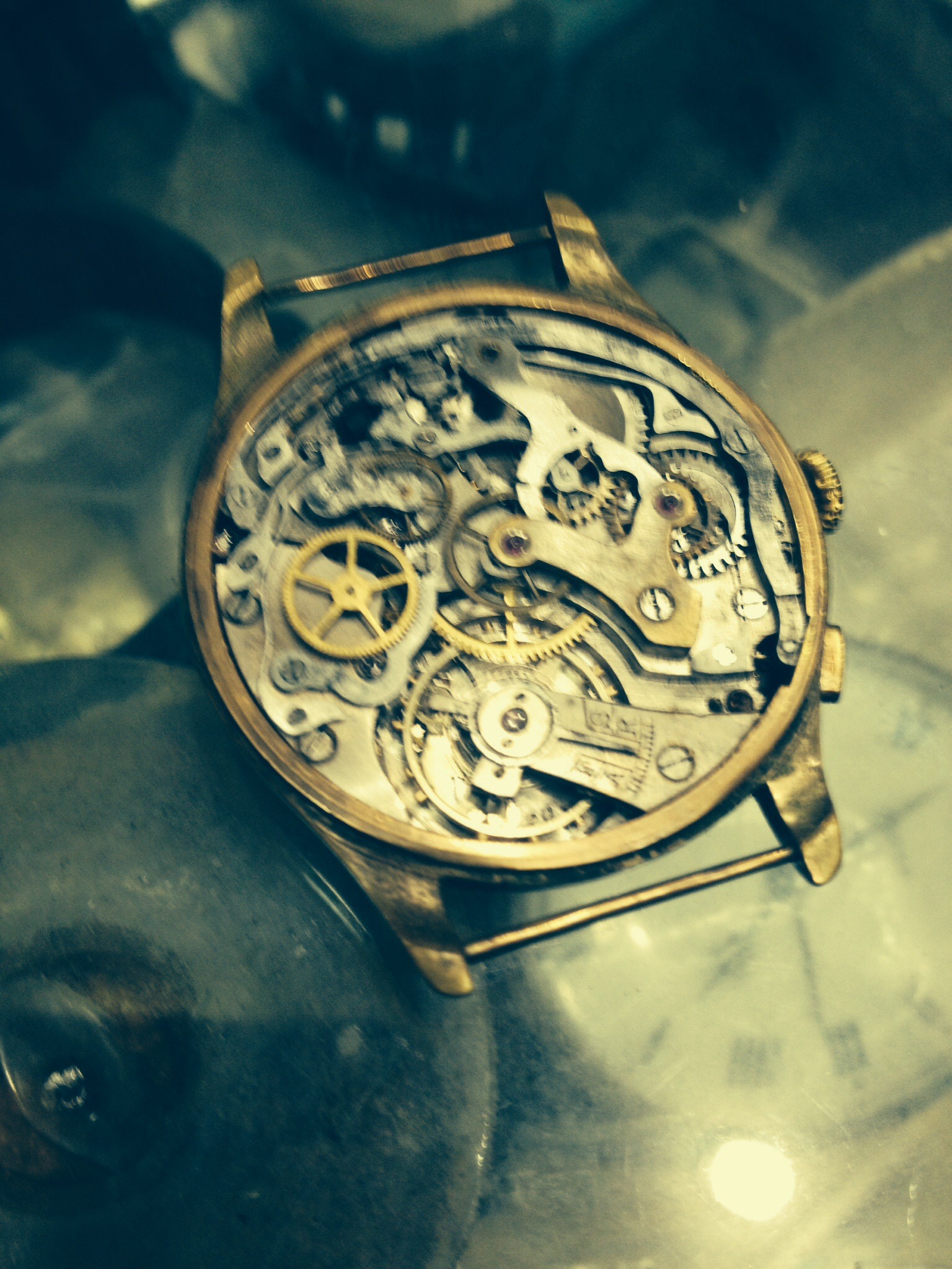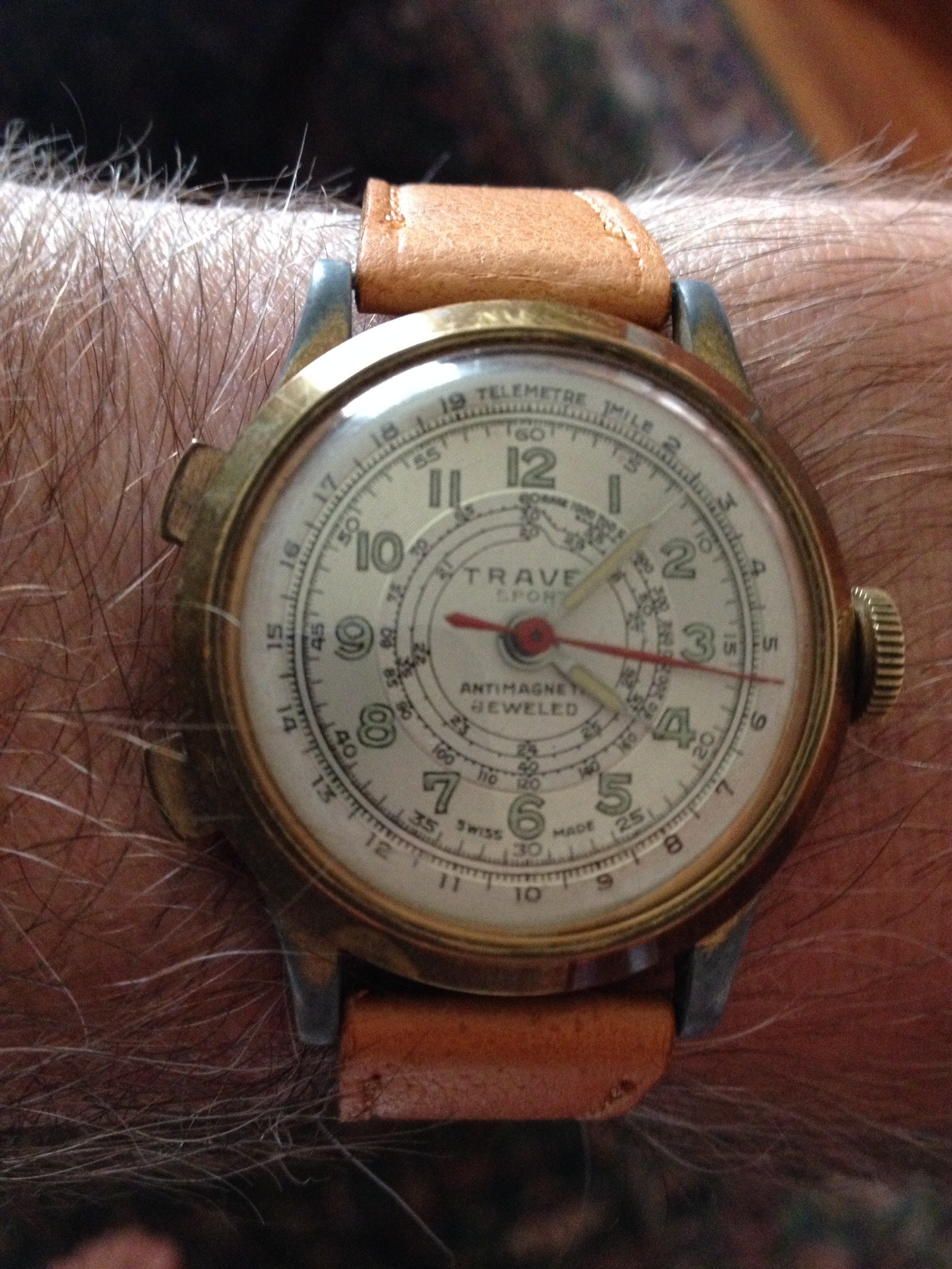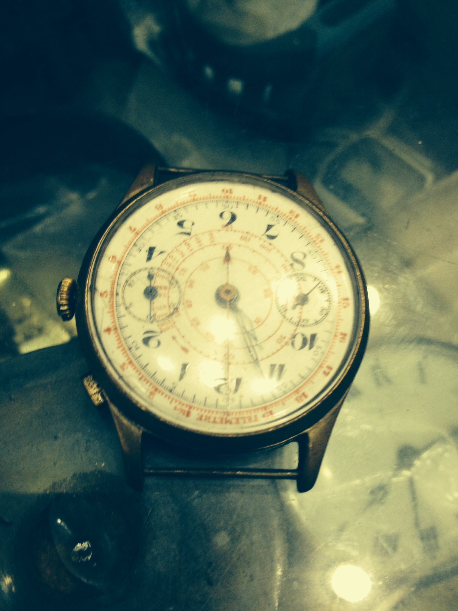 I very much like the dial - it is in wonderful condition. Inside beats the famous Baumgartner 67x movement, a chrono known for its rudimentary design and crude execution. Quirky -no doubt about it!