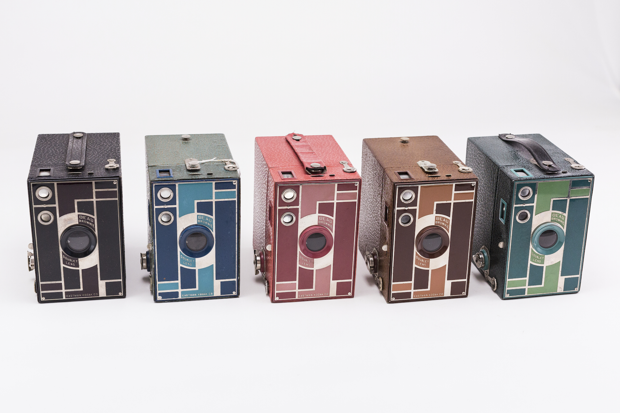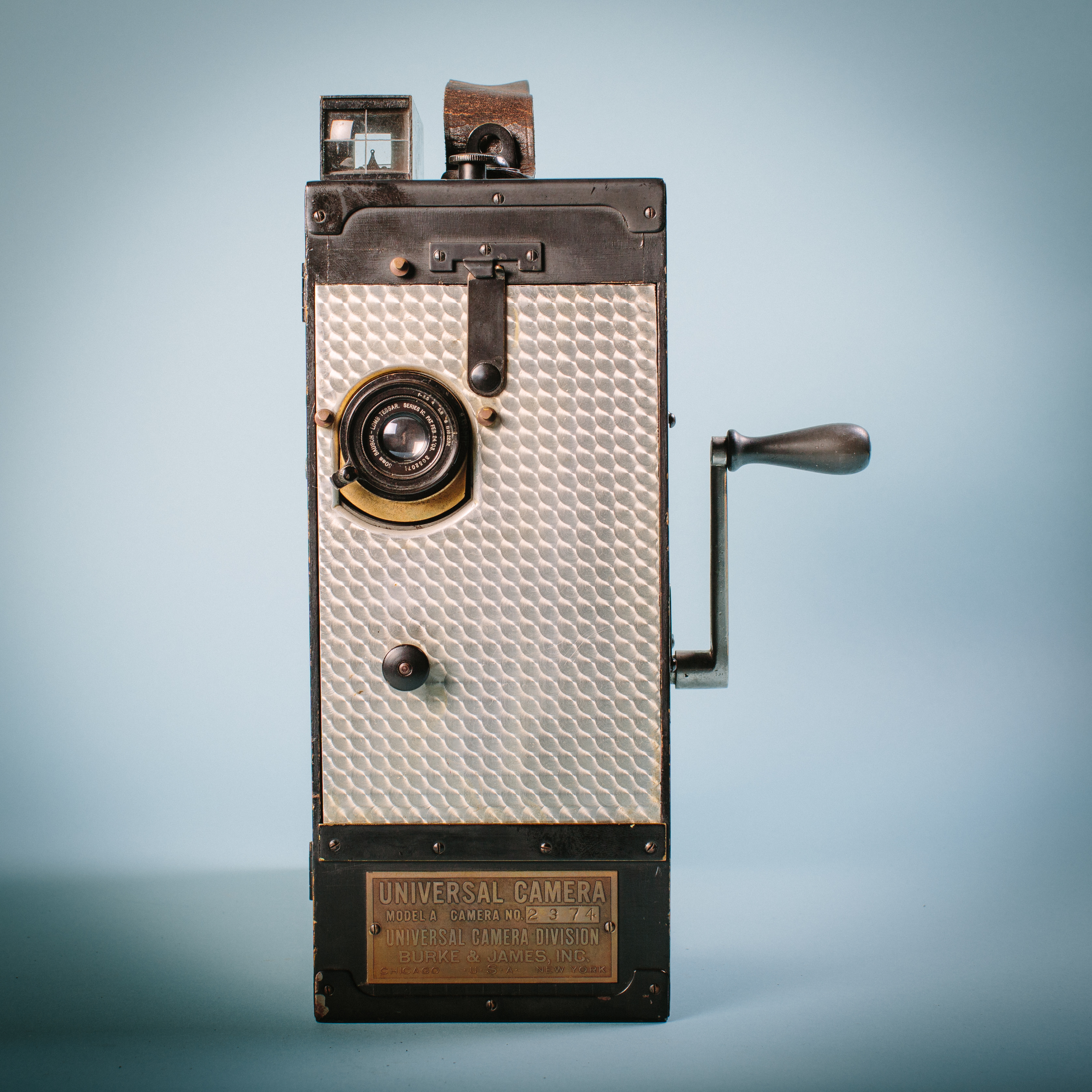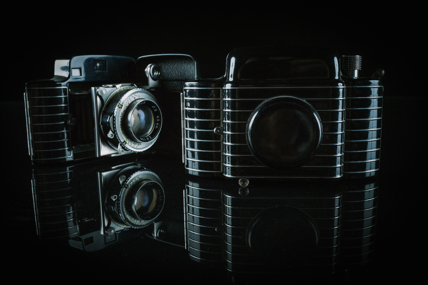 On the left: A Rolleiflex Automatic 35mm camera from about 1940.