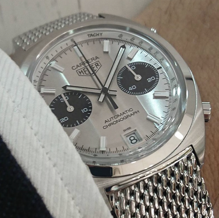 You'd think, but the side bevel of the lugs angles down sharply and with that wide bezel it wears more like a 38mm, and it works really really well. I first tried one on at the GS boutique near Harrod's on a business trip, and I was truly surprised.