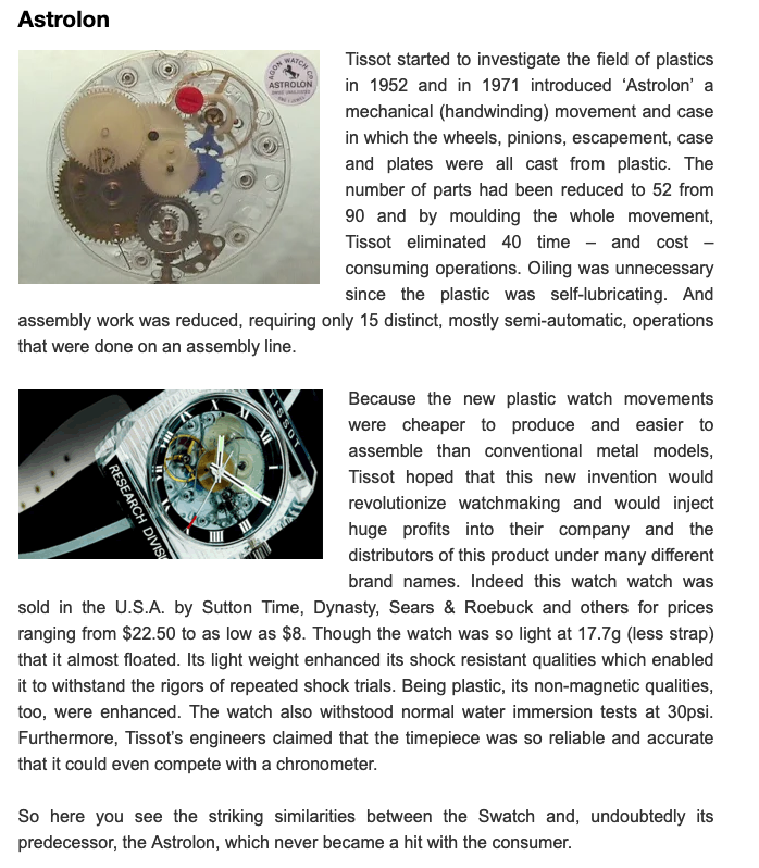 ยทThe Astrolon, an early attempt at a Tissot plastic watch. Hard to see that the System 51 has higher prospects for success!