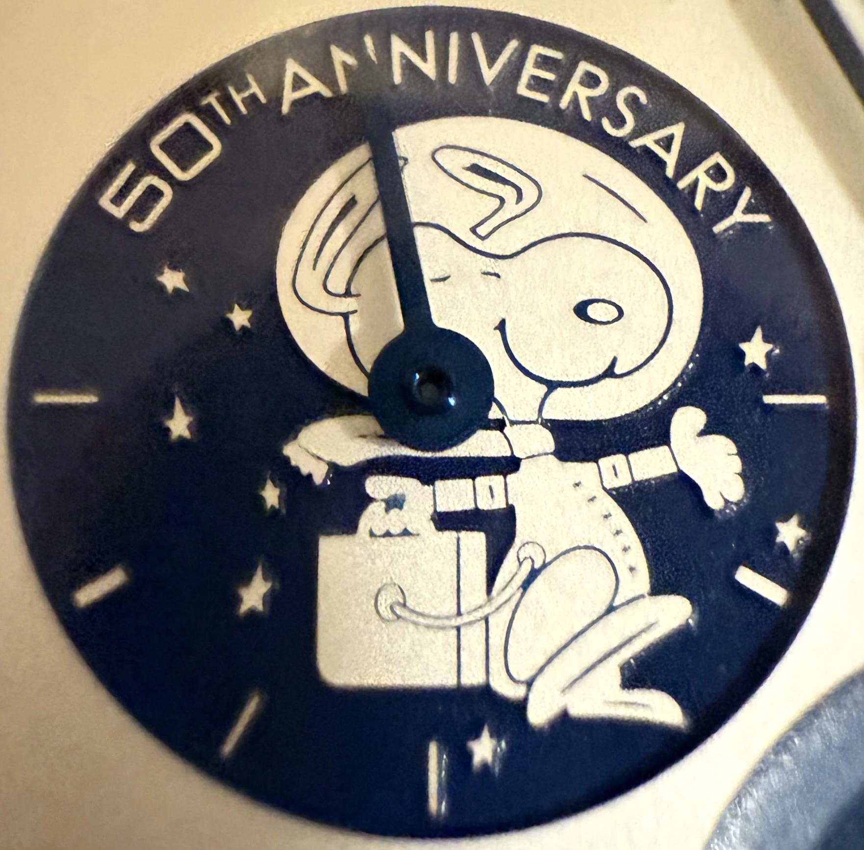 - Overall, Snoopy’s lines seem thinner, as does the “50th Anniversary” text