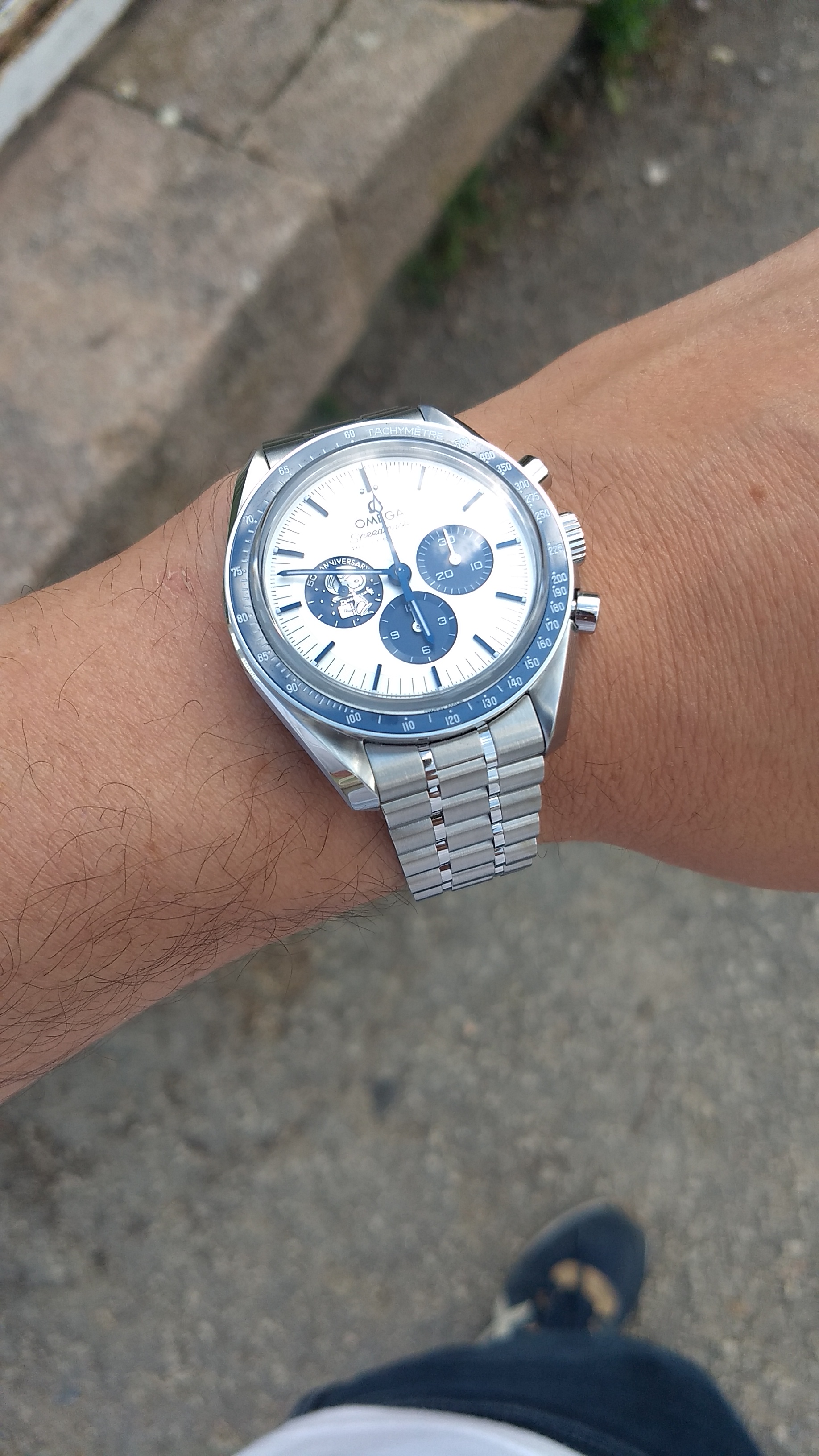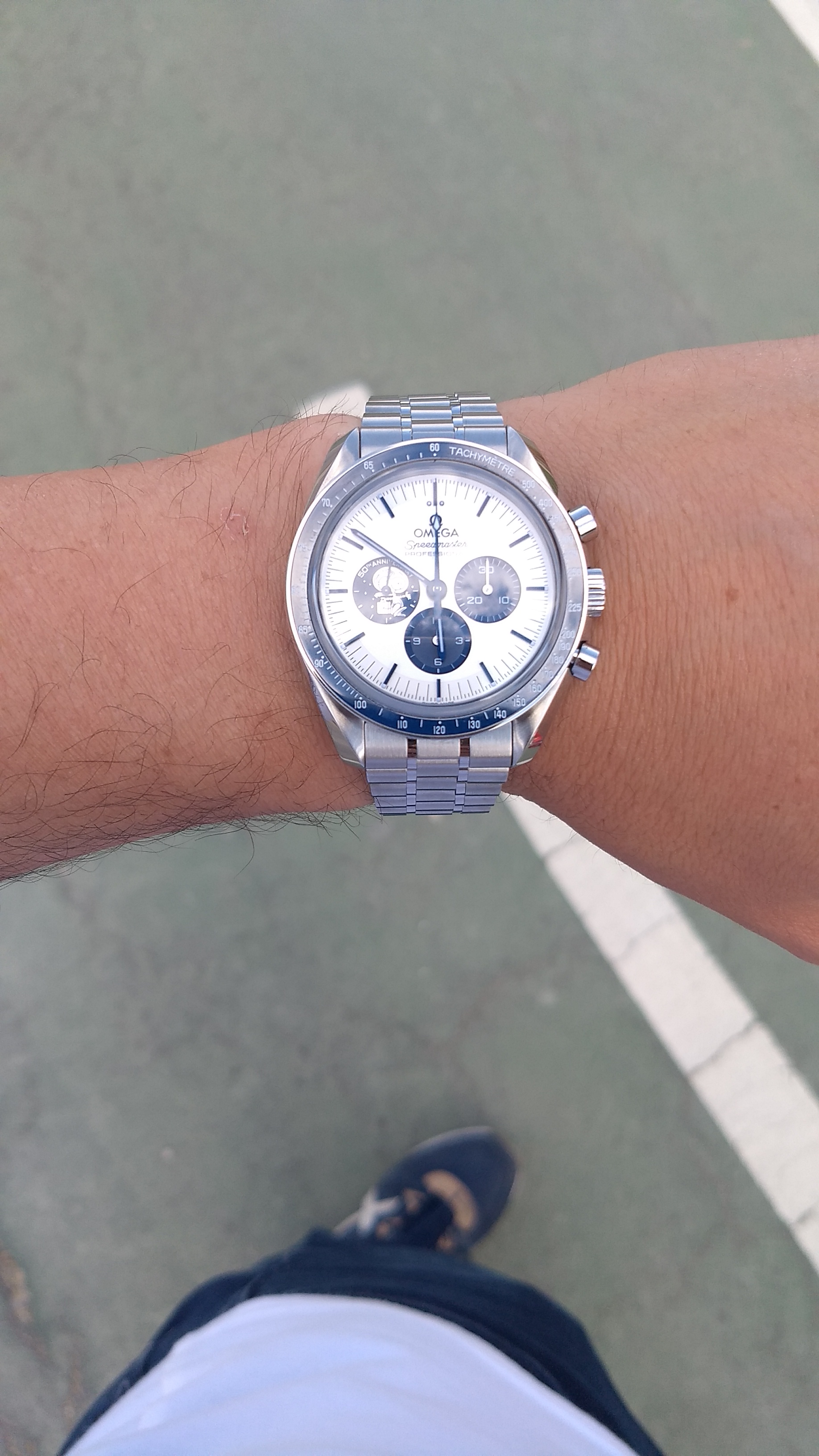The 3861 bracelet will the snoopy perfectly without any modification. The Apollo 11 flat link will need some modification to the end links or use of a thinner spring bar. The thinner spring bar option may not give you the perfect fit though. The difference is in the depth/thickness of that "lip" on the inside of the end links.
