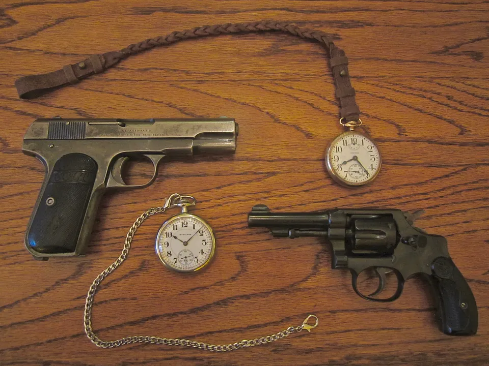 A 1903 Hamilton 940 (coin silver case), a 1904 Illinois Bunn Special (25 year GF Case), and a 1905 Colt Bisley.