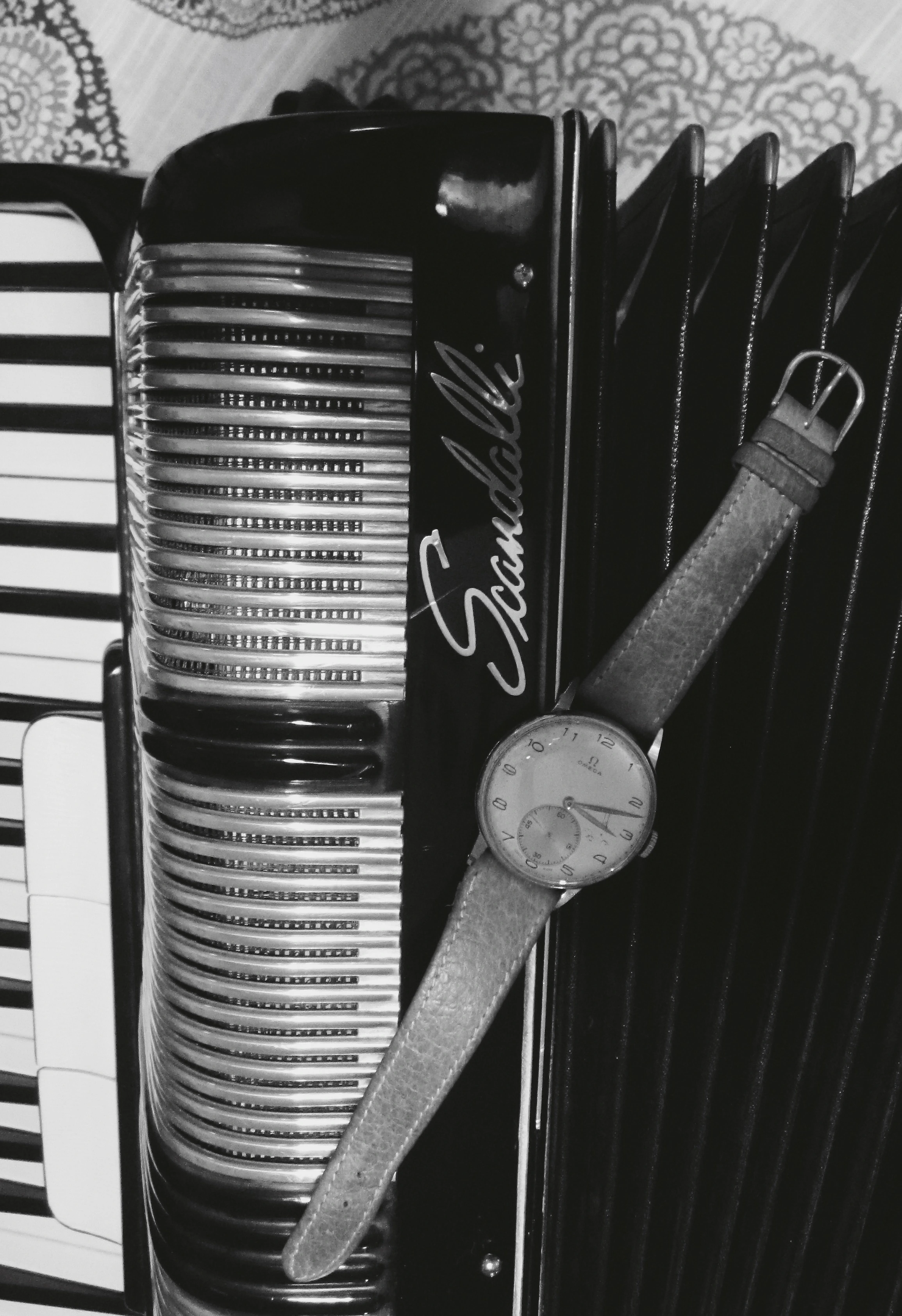 1952 Scandalli accordion with a 1944 Omega 30T2.