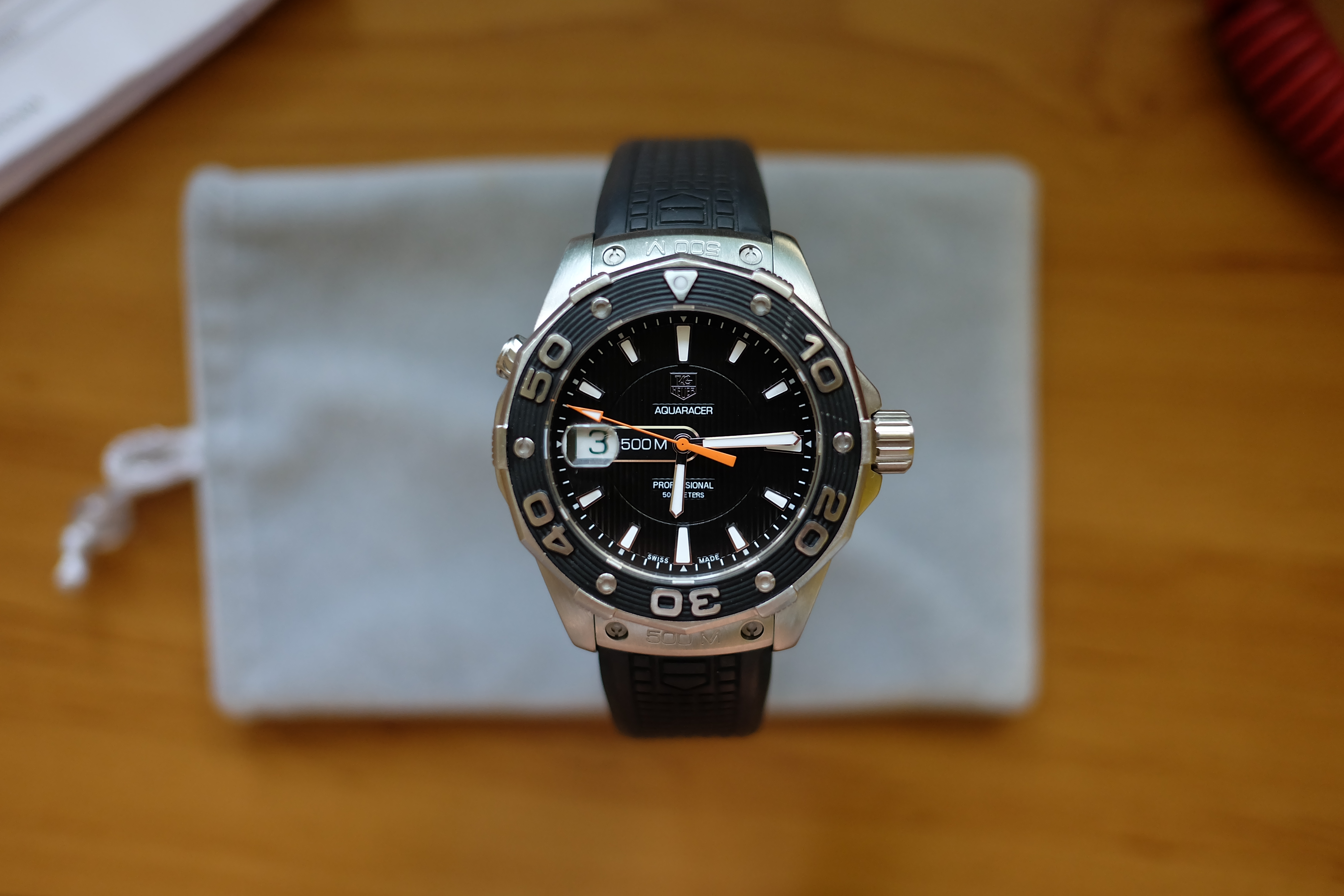 ·For sale is my TAG Aquaracer 500m Quartz black dial with rubber strap deployant. Model WAJ1110 , Serial RBE5XXX