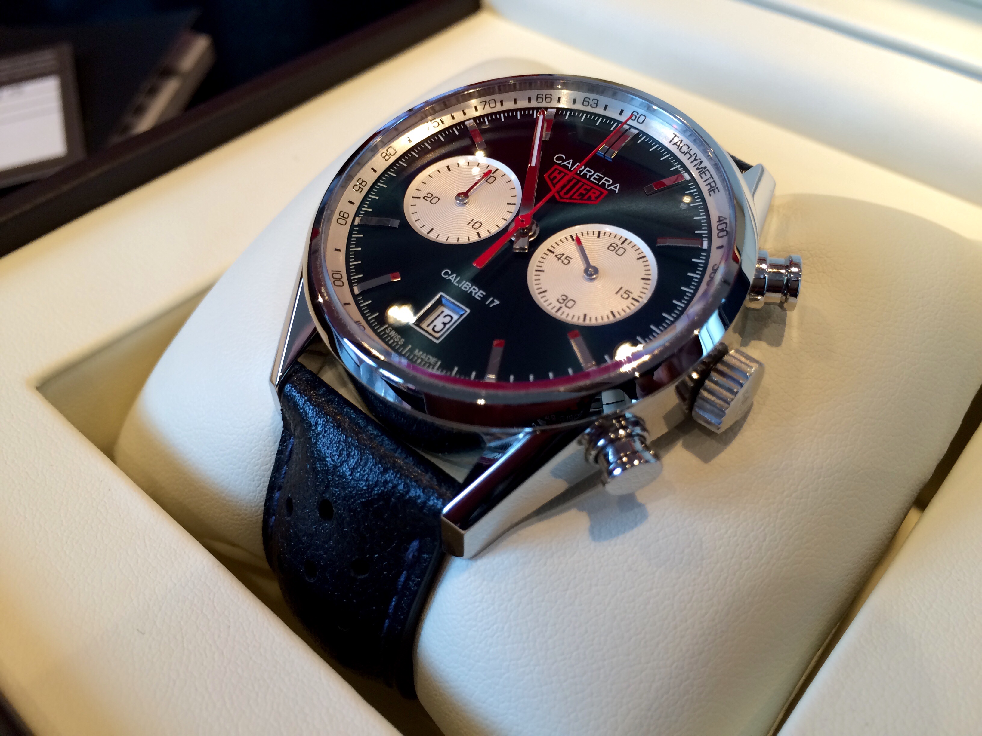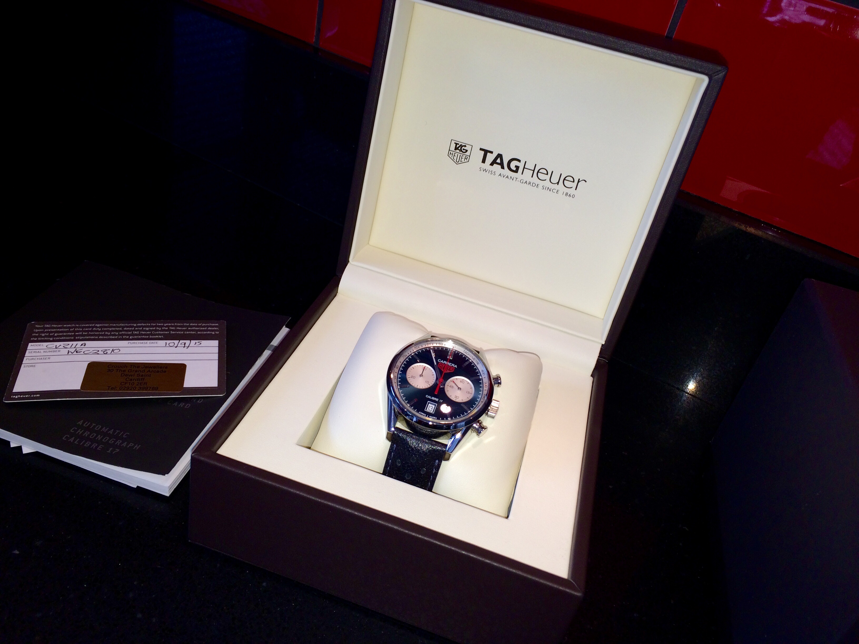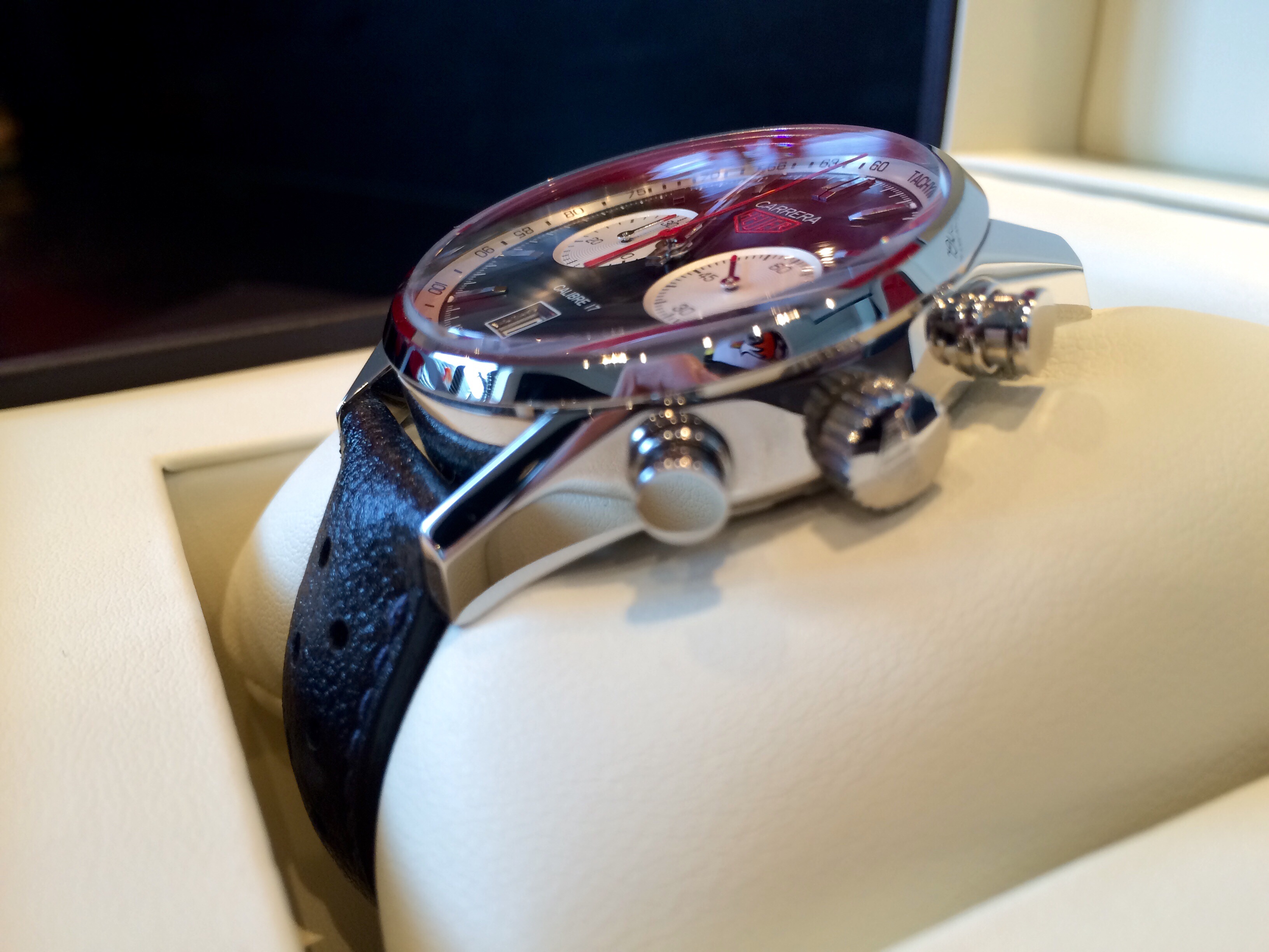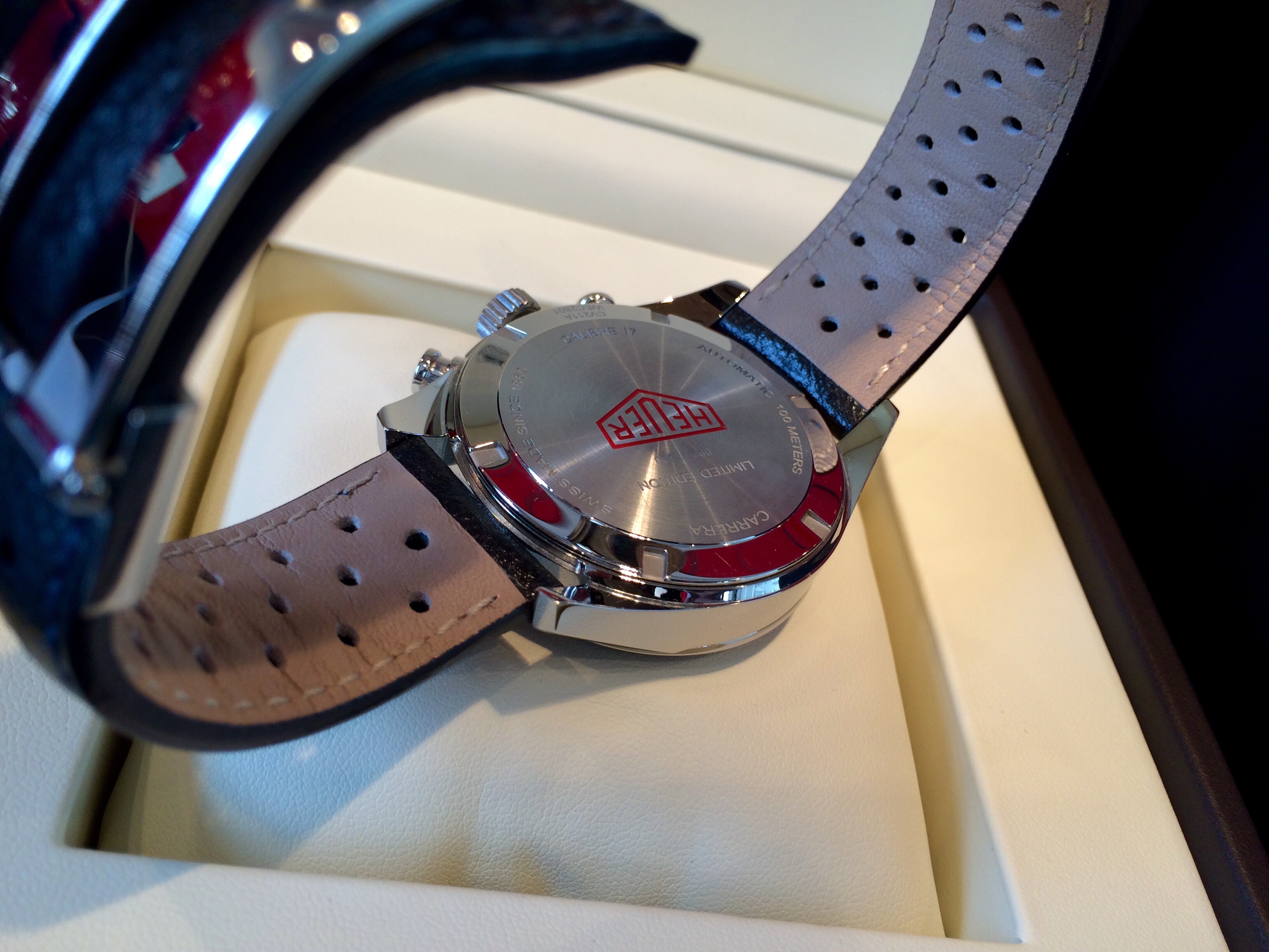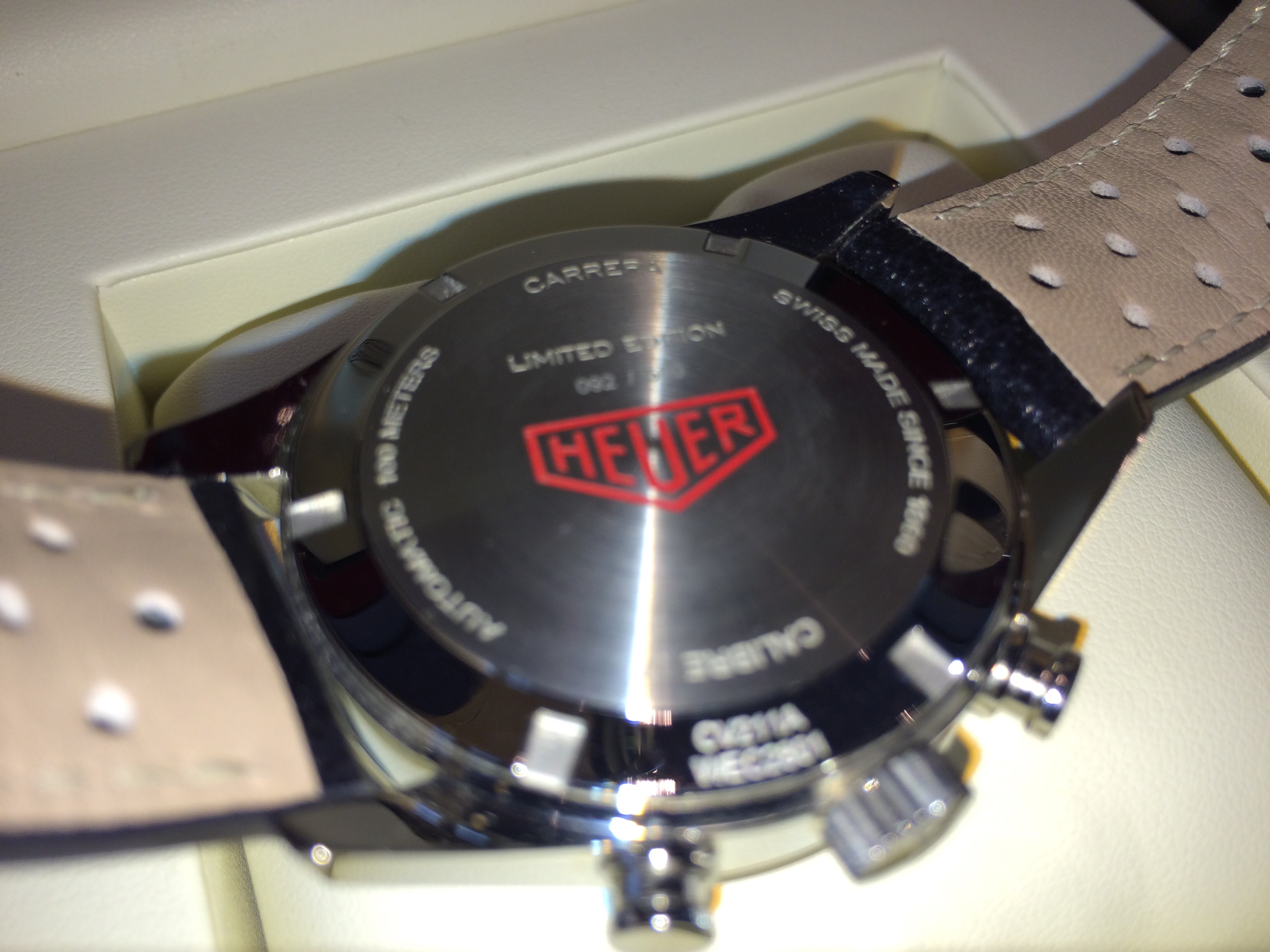 Up for grabs is my box fresh LIMITED EDITION Heuer branded Calibre Carrera 17 CV211A.FC6335 which is number 092 out of only 500 produced and sold via certain boutiques worldwide. It's only been on my wrist on two occasions simply because my Monaco is my daily watch. The sales guy did a real number on me! I purchased this last September.