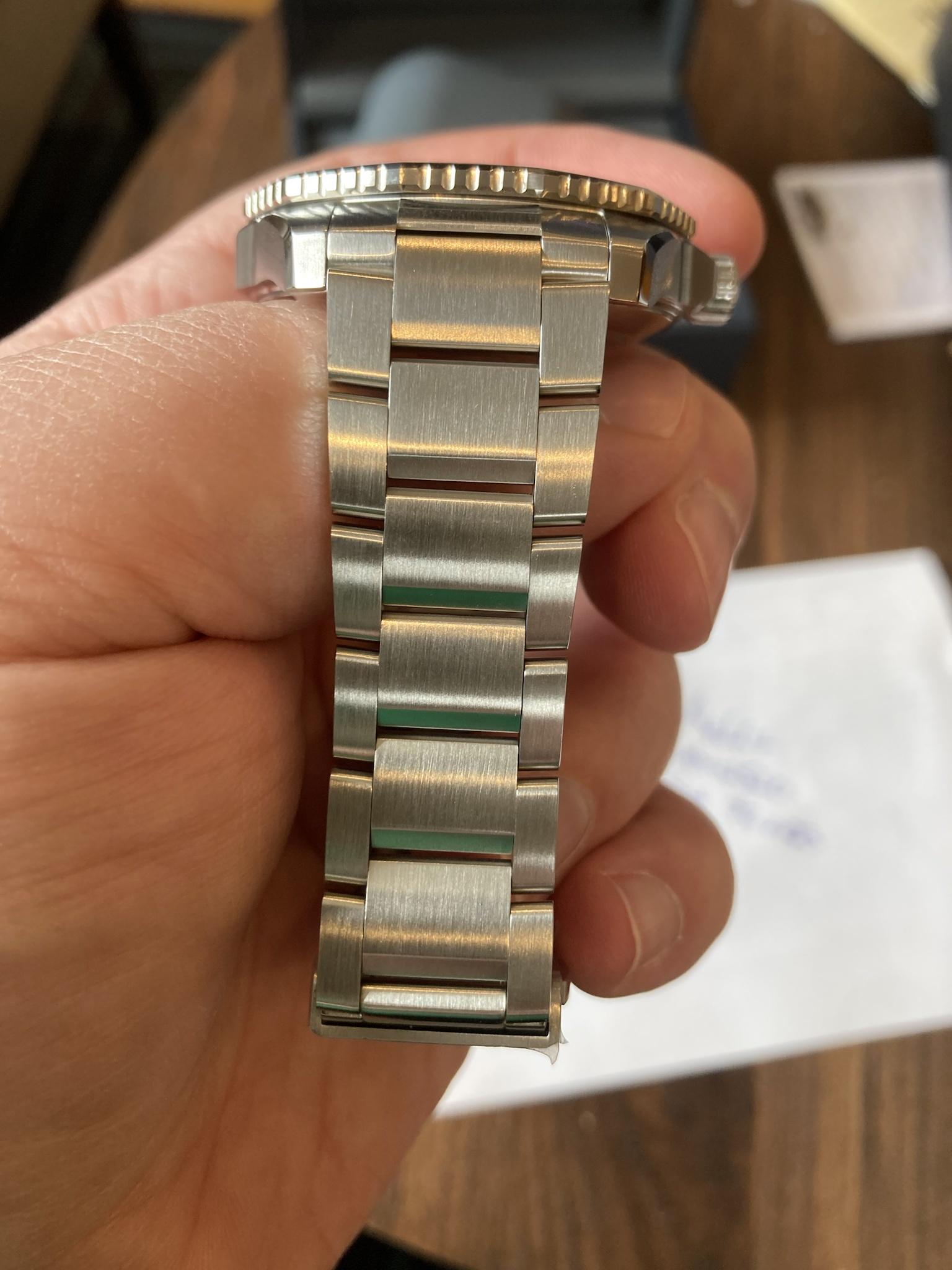 Excellent condition, almost like new. Bracelet is unworn and has never been sized, clasp still has the plastic film on it.