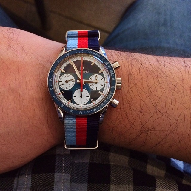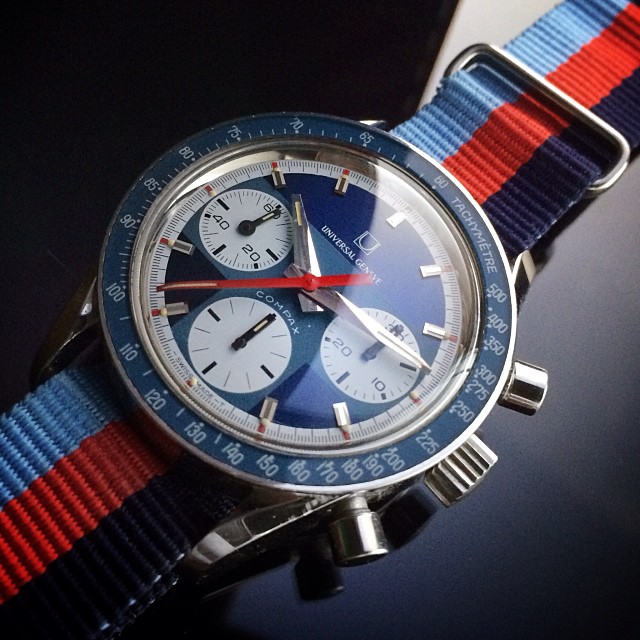 ·So, for those of you know me on Instagram, you'll know I lucked out and picked up a blue Compax through an auction a few months back. But I've seen this beauty on JB Champion and Gay Freres bracelets as well, and I'd love to source one for this guy. Don't get me wrong, it looks SPECTACULAR on the NATO I have for it, but I'd love to have a little variety.