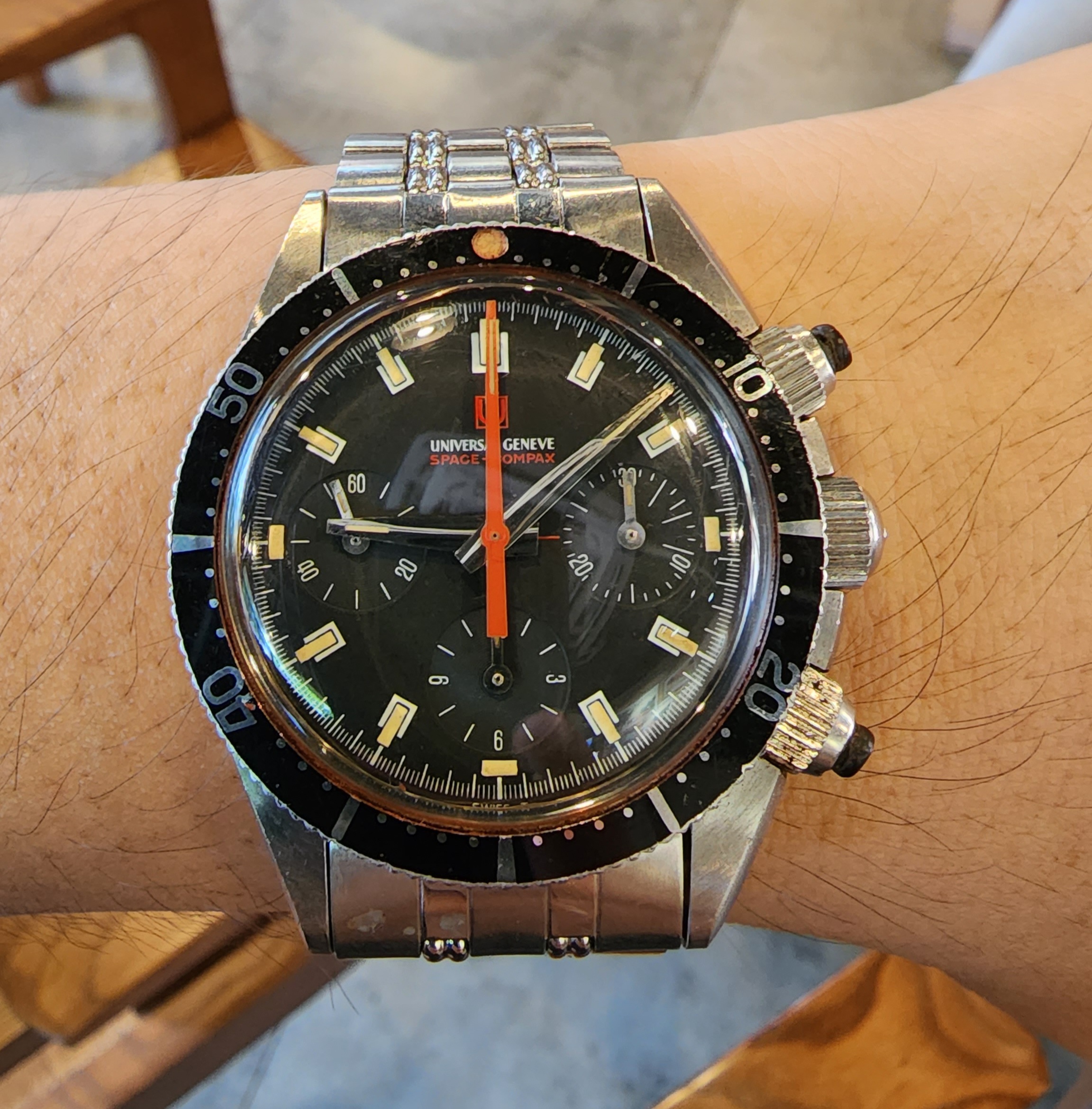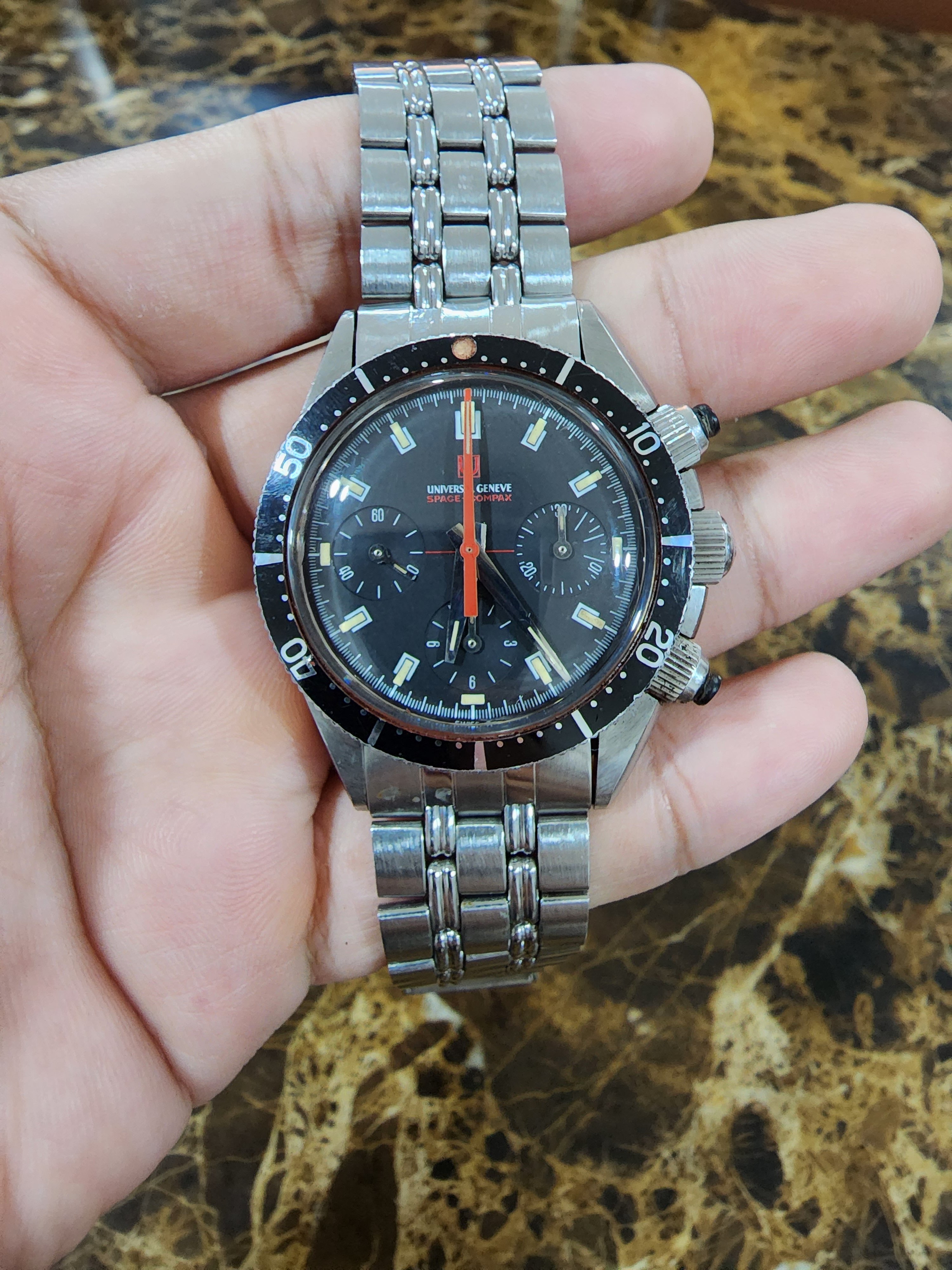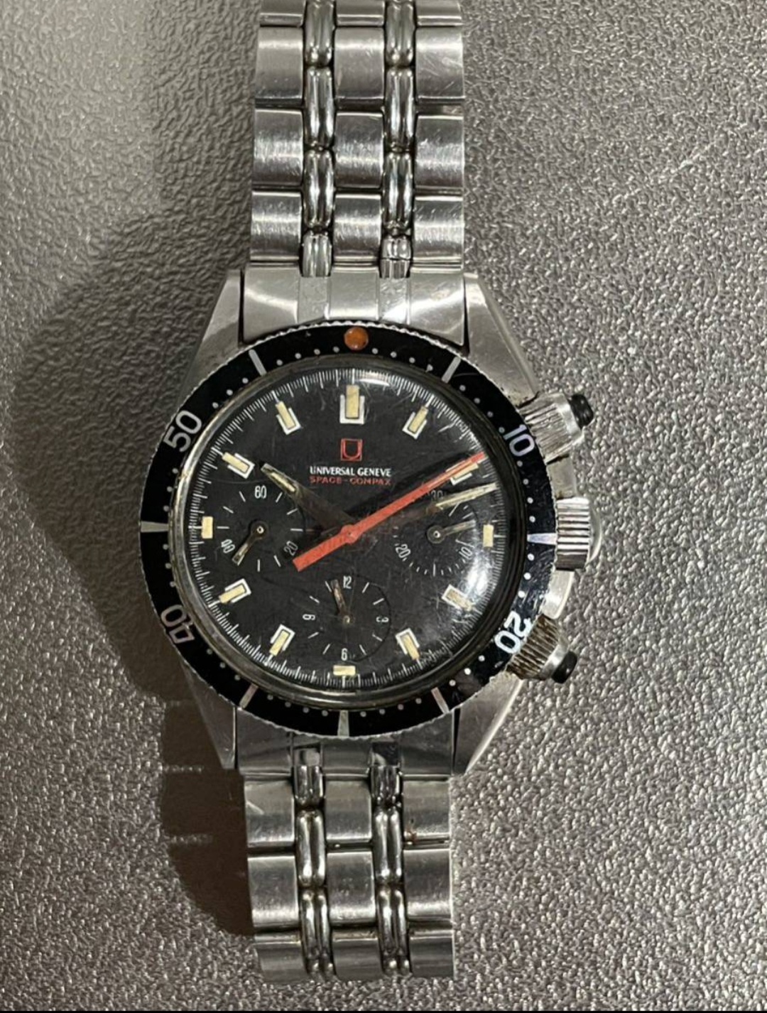 Looks like a good examples of Mk2 Space Compax with original bracelet and rubber pusher in a barn find condition with rough crystal and lots of human DNA all over the case. I was unsure if it was a scam but seller shipped and my friend received it. Would be great to know everyone opinions of anything that I should pay attention to this model when havving it on my hand? Thanks alot