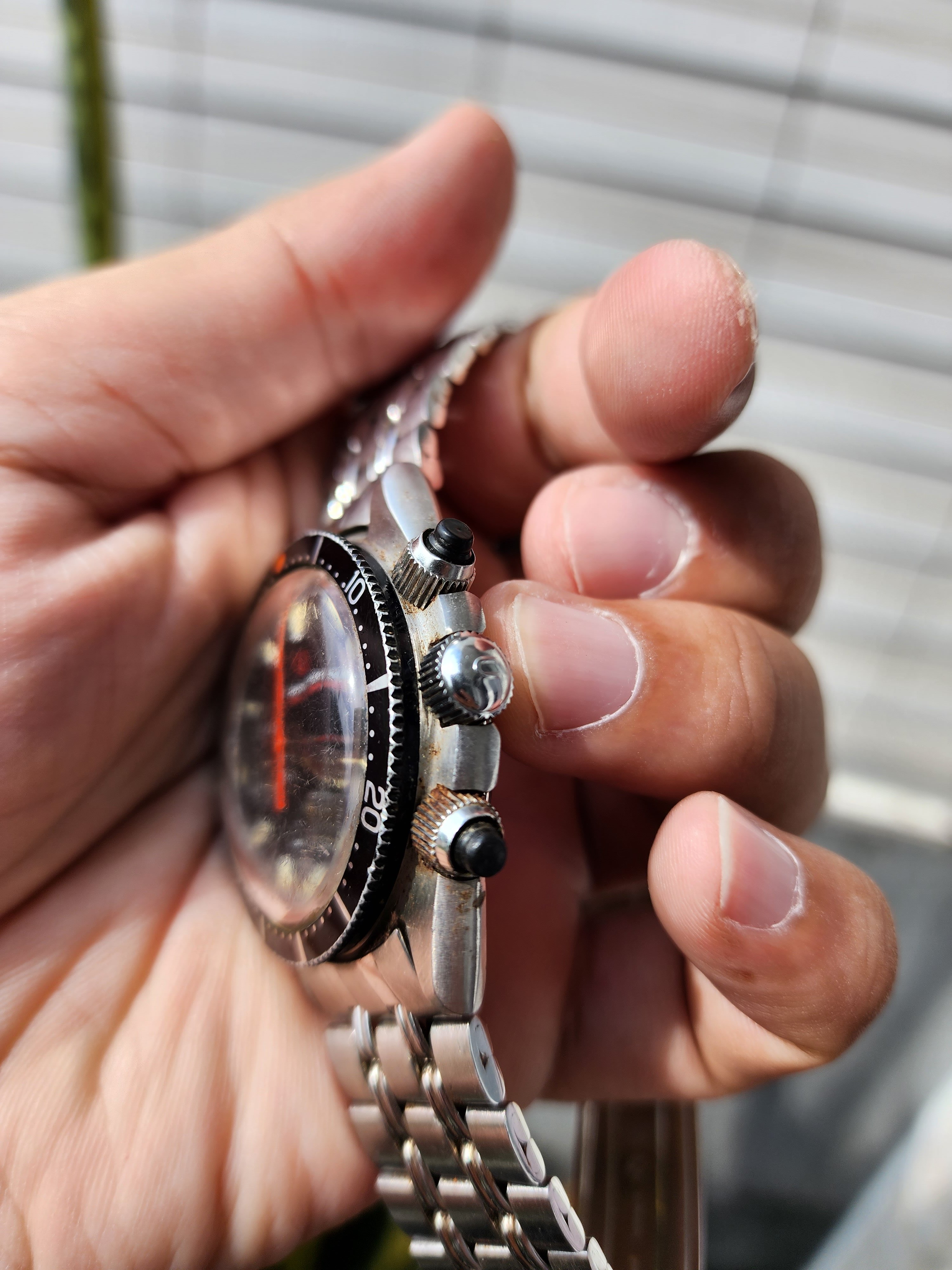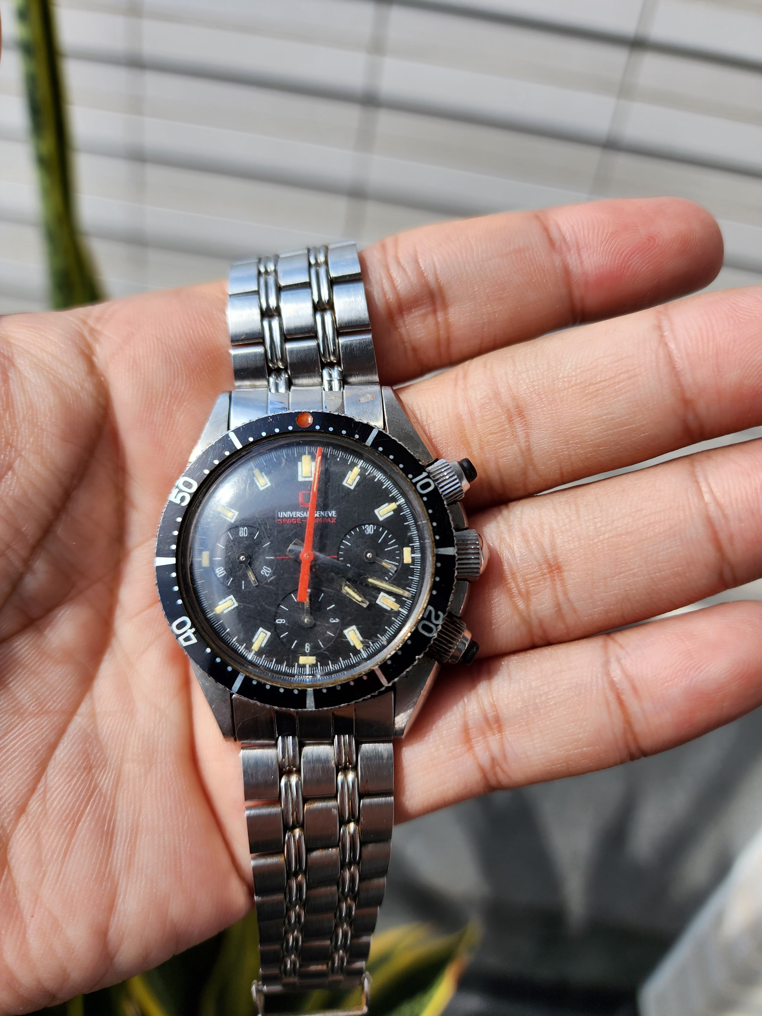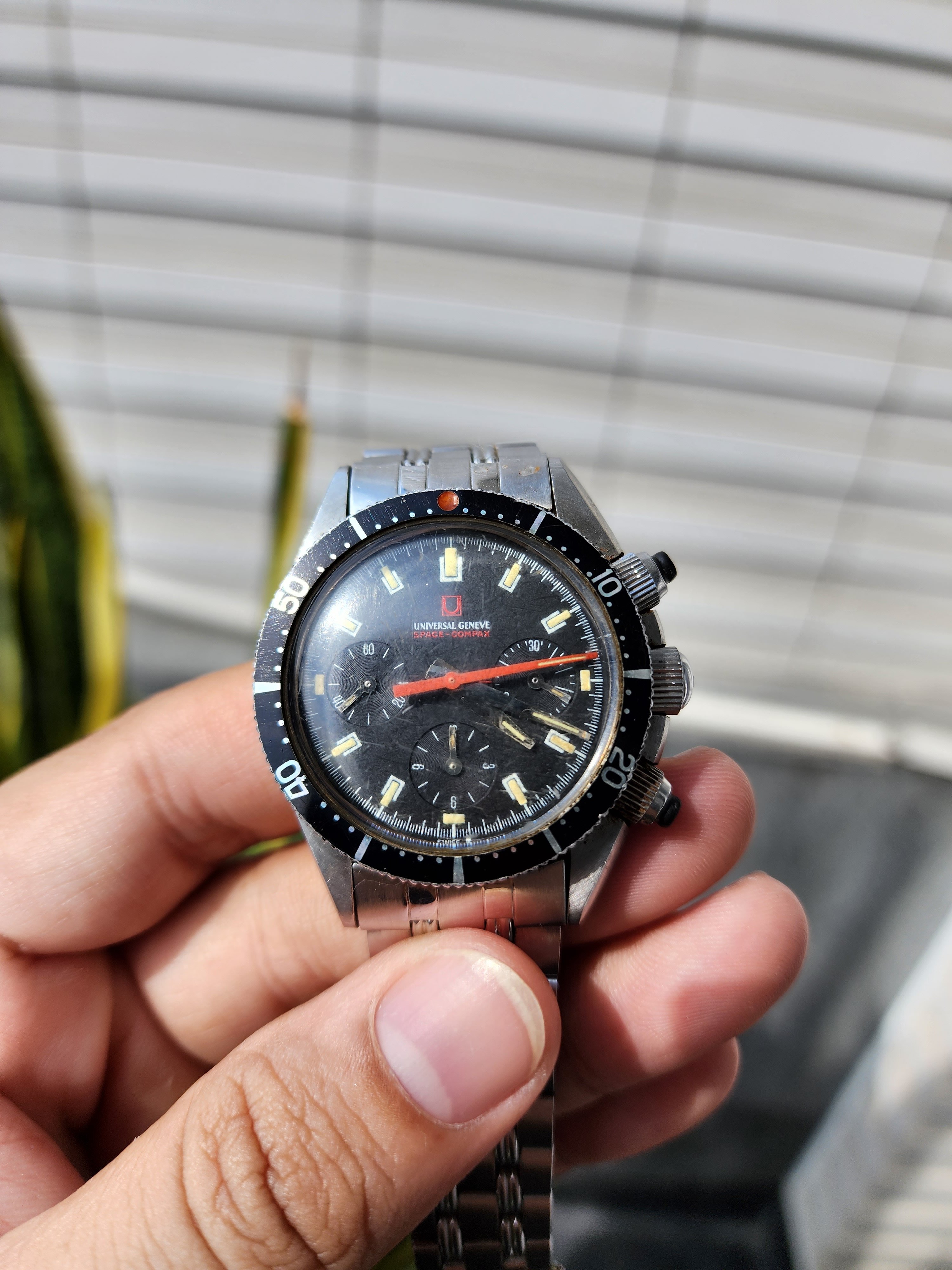Looks like a good examples of Mk2 Space Compax with original bracelet and rubber pusher in a barn find condition with rough crystal and lots of human DNA all over the case. I was unsure if it was a scam but seller shipped and my friend received it. Would be great to know everyone opinions of anything that I should pay attention to this model when havving it on my hand? Thanks alot