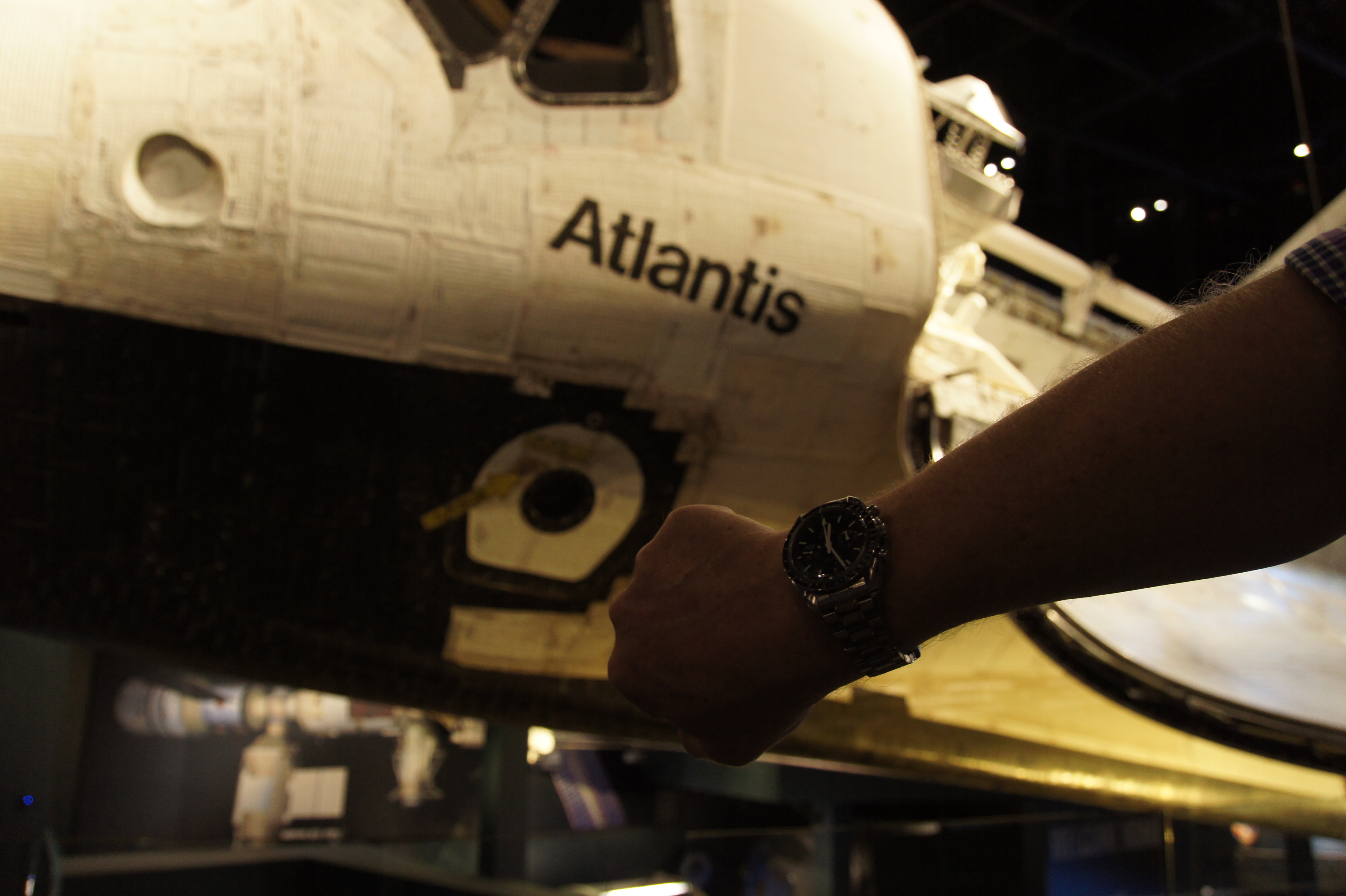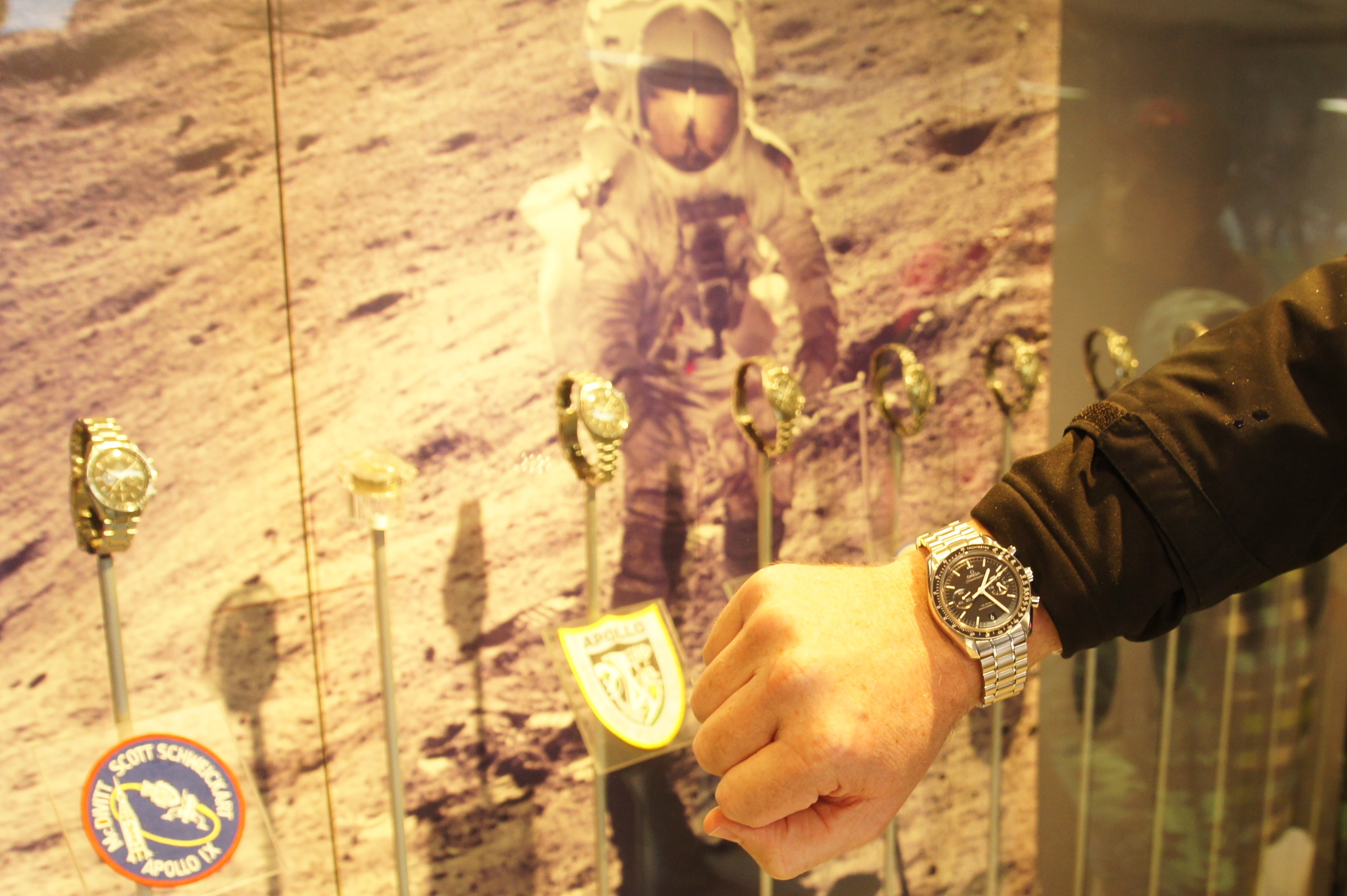 Below are some photos I've posted before of me traveling with my Speedy at the Johnson (touching a moon rock and with the mission patch display) and Kennedy (seeing Atlantis) Space Centers. I wrote about the visit to see Atlantis at the Kennedy Space Center here: https://omegaforums.net/threads/speedy-9300-meets-atlantis.50040/. If you look closely at the moon rock photo, you'll see the watch is tracking local and home time (Australian Eastern). I have run the chronograph like this for several weeks at a time without incident. I believe it isn't a problem with a vertical clutch mechanism such as the one in the 9300 to run the chrono for long periods of time, but I'd be interested to hear the experts chime in. It certainly has not shown any signs of causing trouble thus far.
