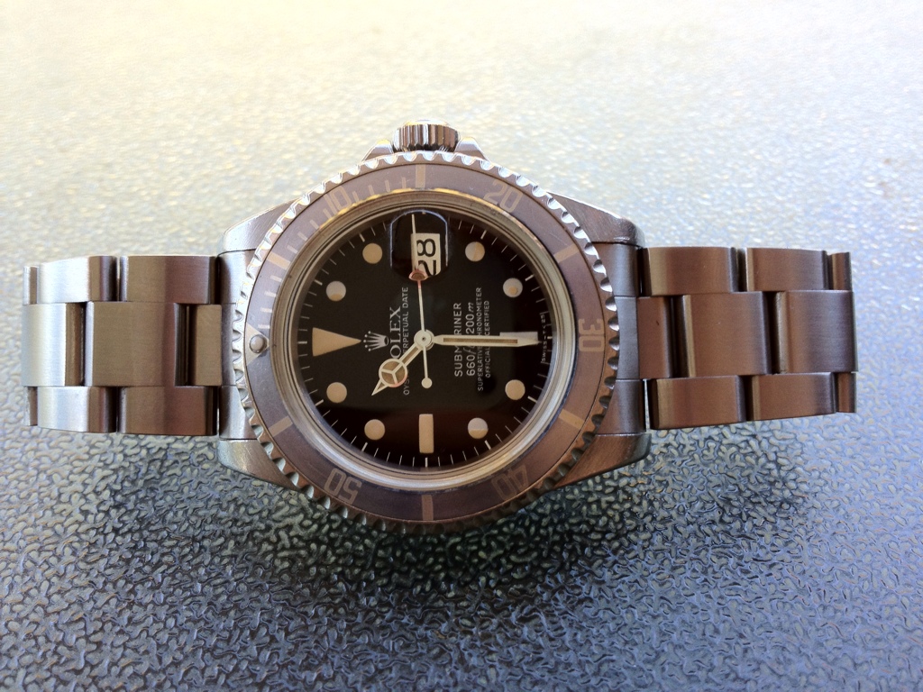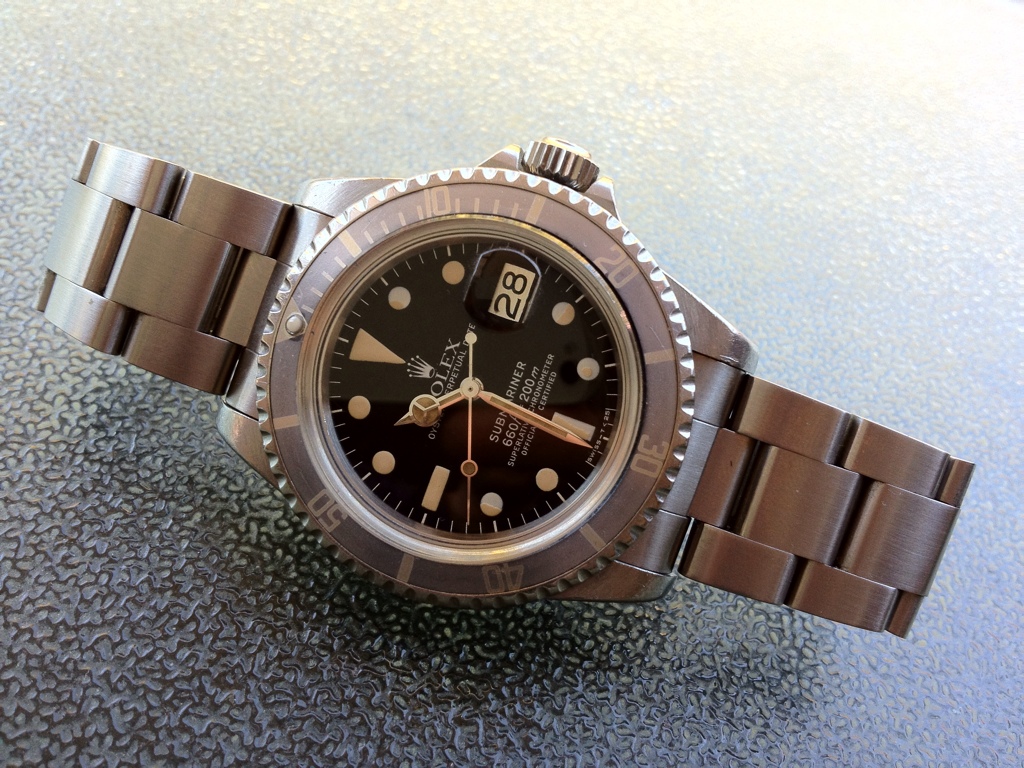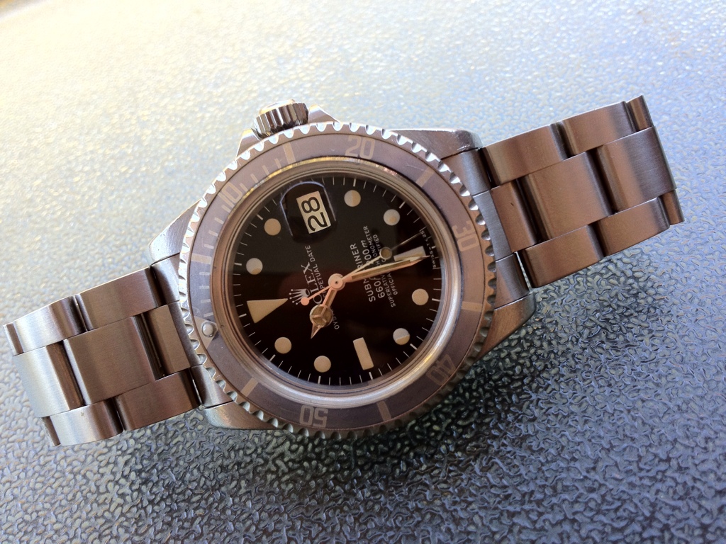 It isn't just "a" 1680 Submariner either, its "my" 1680 Submariner. I could look the world over and never find another just like this one. Being a very late production watch, around 1979-1980 chronologically and in the 6.1 million range of serials, this "white" Sub is considered one of the less valuable of the 1680s, but with its original fat-font faded or "ghost" bezel as people call them, people recognised it as my watch when they saw it, and it really showed its genuine age as a watch that had seen a lot of the world the hard way on the wrists of its previous owners.