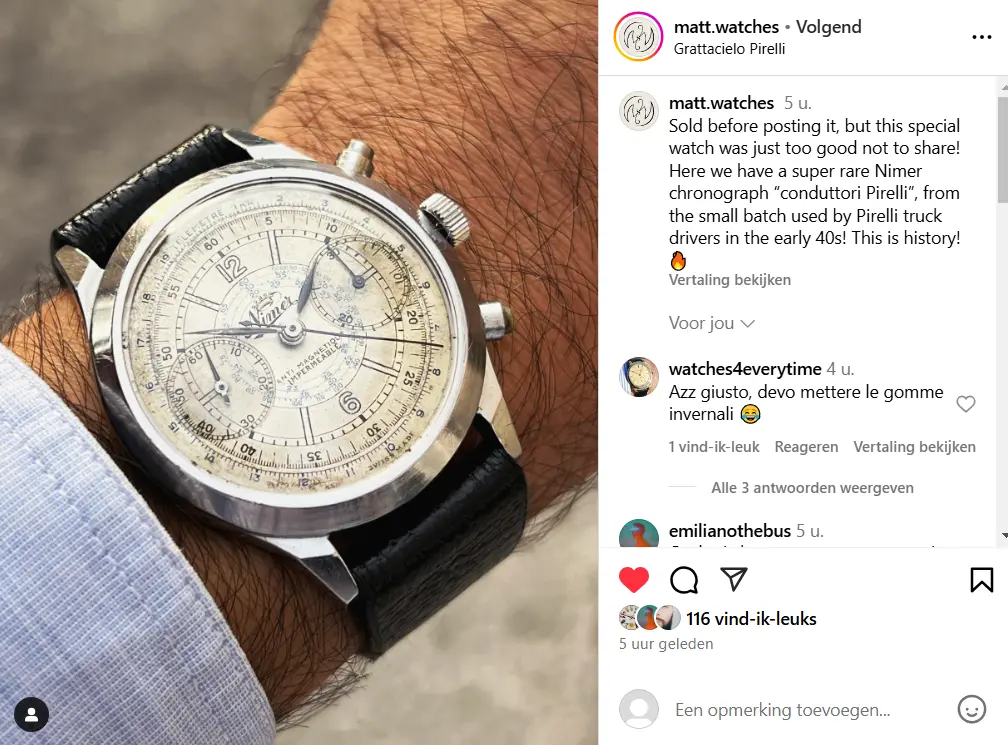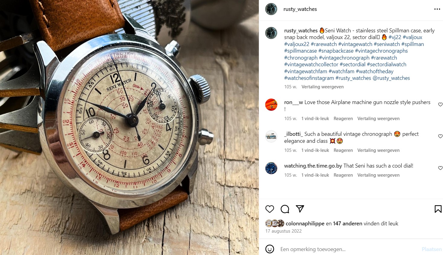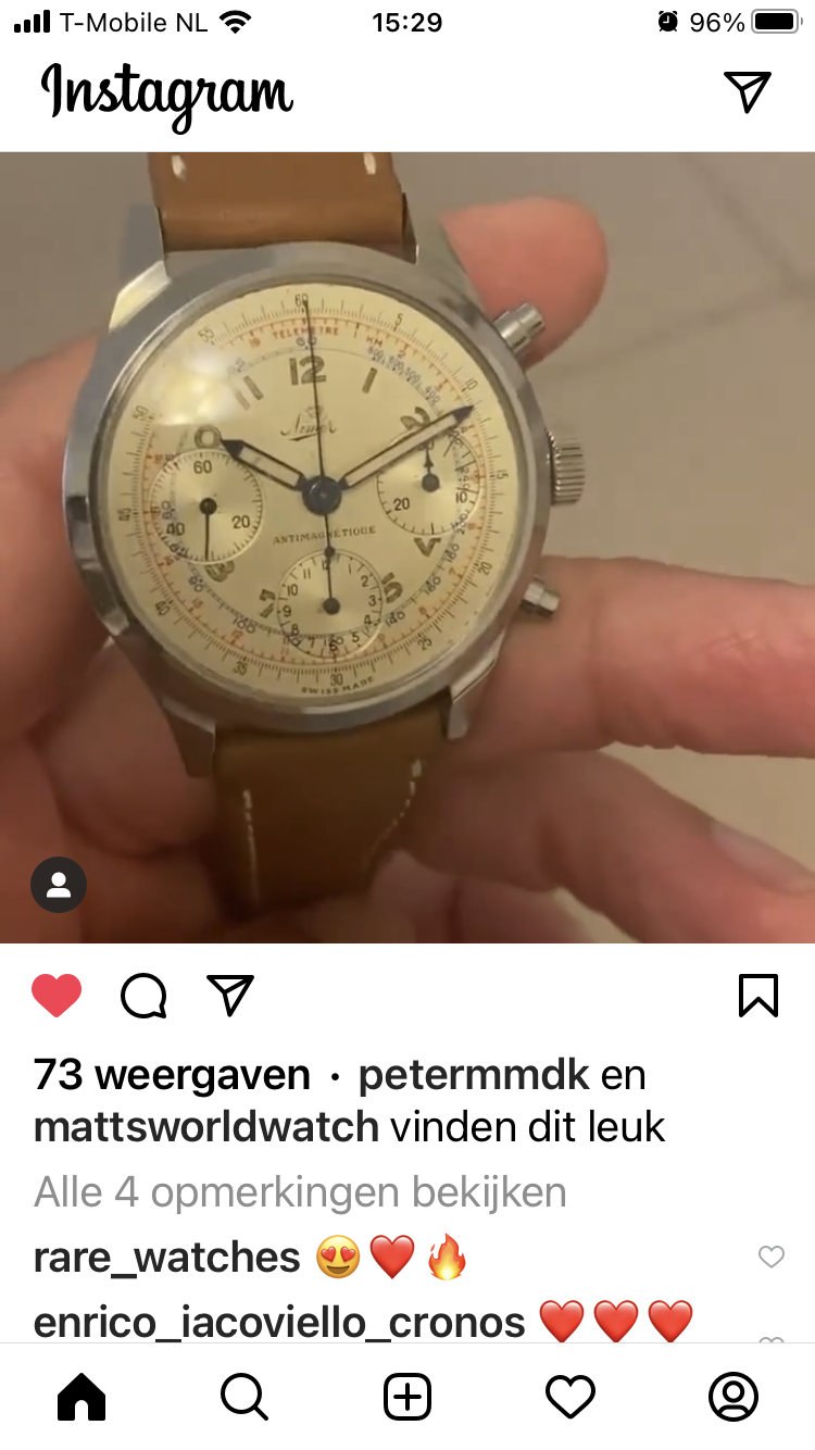 Posts 1,615 Likes 3,854 S.H. ·Apr 30, 2024 There is an interesting bias here. They may be rare compared to the mass of plated Landeron chronos for example, but if they are hyped, every single one of them (even thrashed) will find its way to Instagram, so it will seem common. Here is mine on top of your archive :