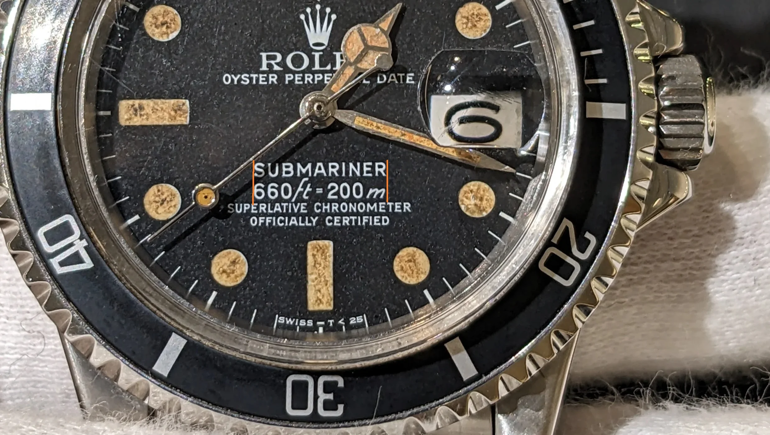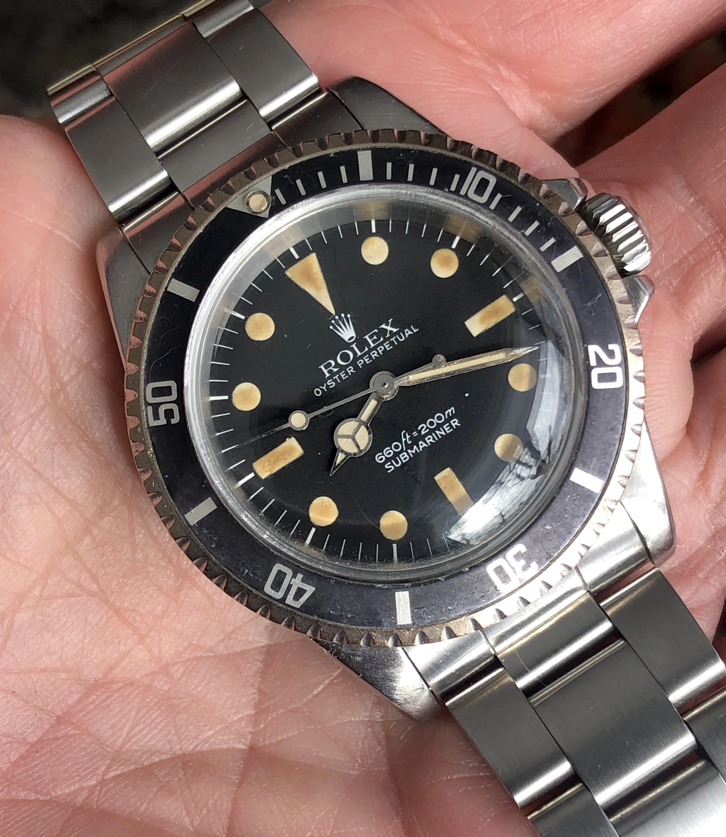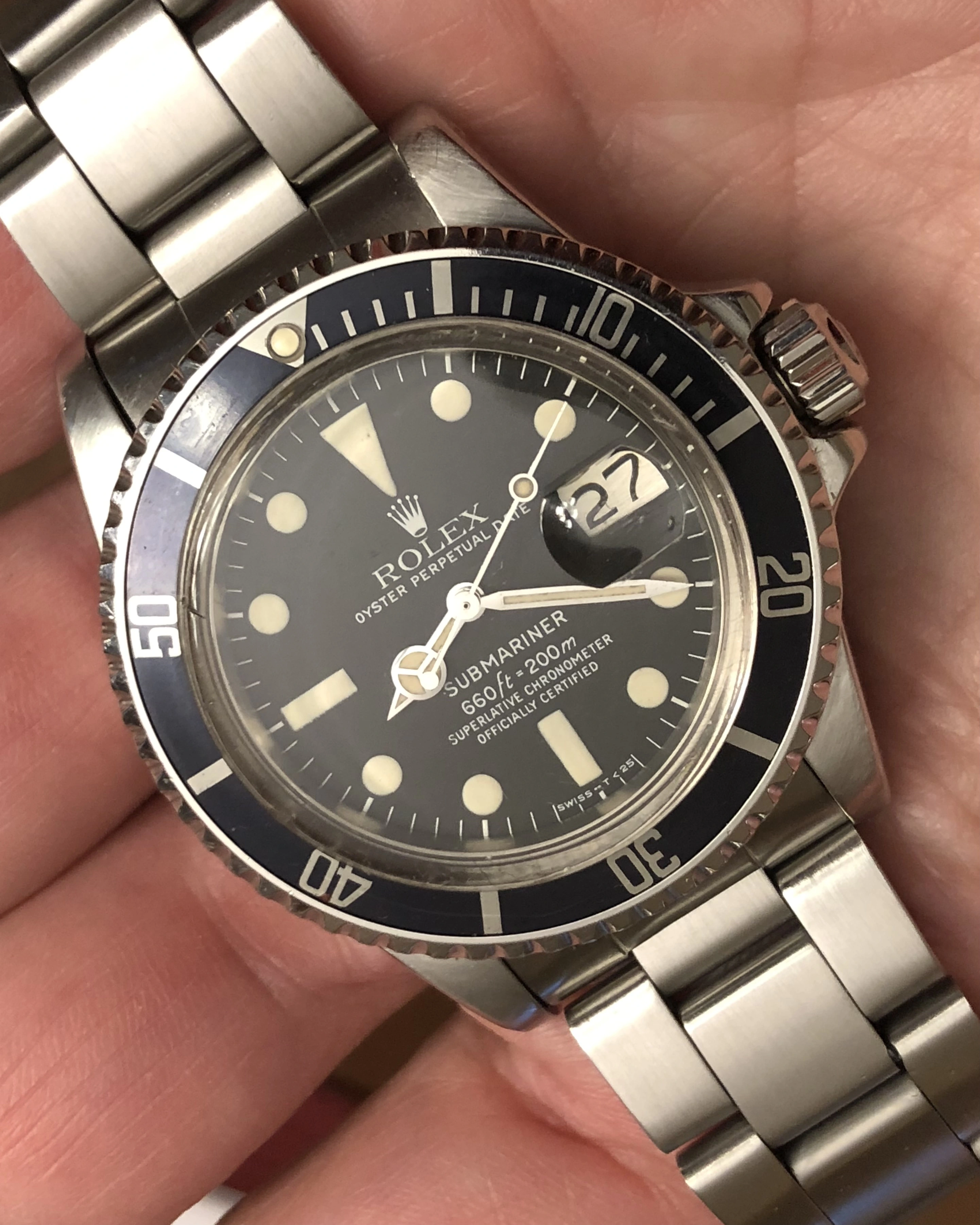 Hello Dan and others - thanks very much for your very helpful comments. No , I want mine to be in old , original condition, do not mond the lume coming off, etc, do not care about the vracelet much either. I will find a way to get rid of that watch and will see on platform such as chrono24, etc. Unless you guys have suggestions of good vendors in Europe. Ideal is 1976 - the year of my birth , it can also be just a submariner without the choronometer designatiol. The price , here in Europe , is 10 K . Of course , if you know how to het it for less, I will be very glad indeed.