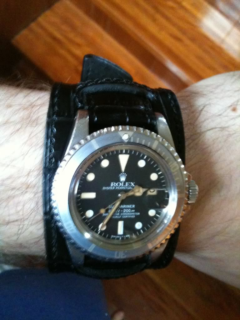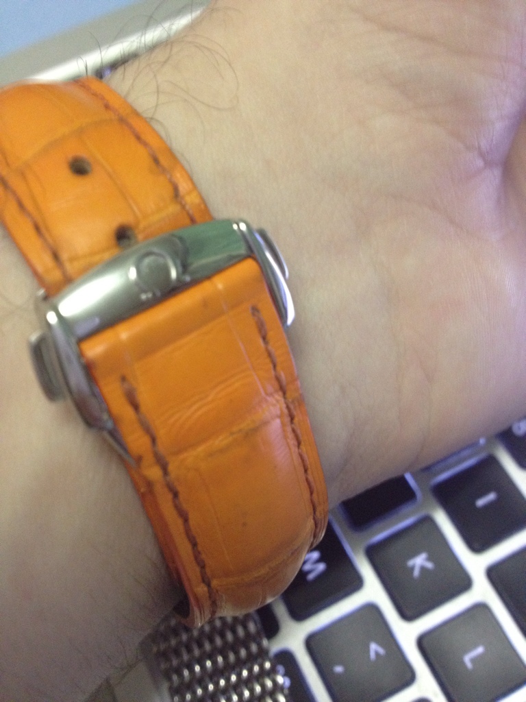 Now, of these fine straps, none of them are wearable, the french one has sharp edges and is too stiff, the strap-on is like cardboard and has no lining, the chinese rubbish strap makes me look like a down-on-my-luck Californian porn star and the Omega croc is just too old and worn out, not to mention someone has soaked it in scotch guard so much that its shrinking inwards.
