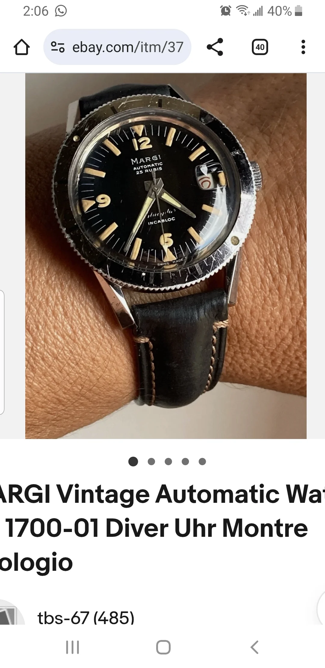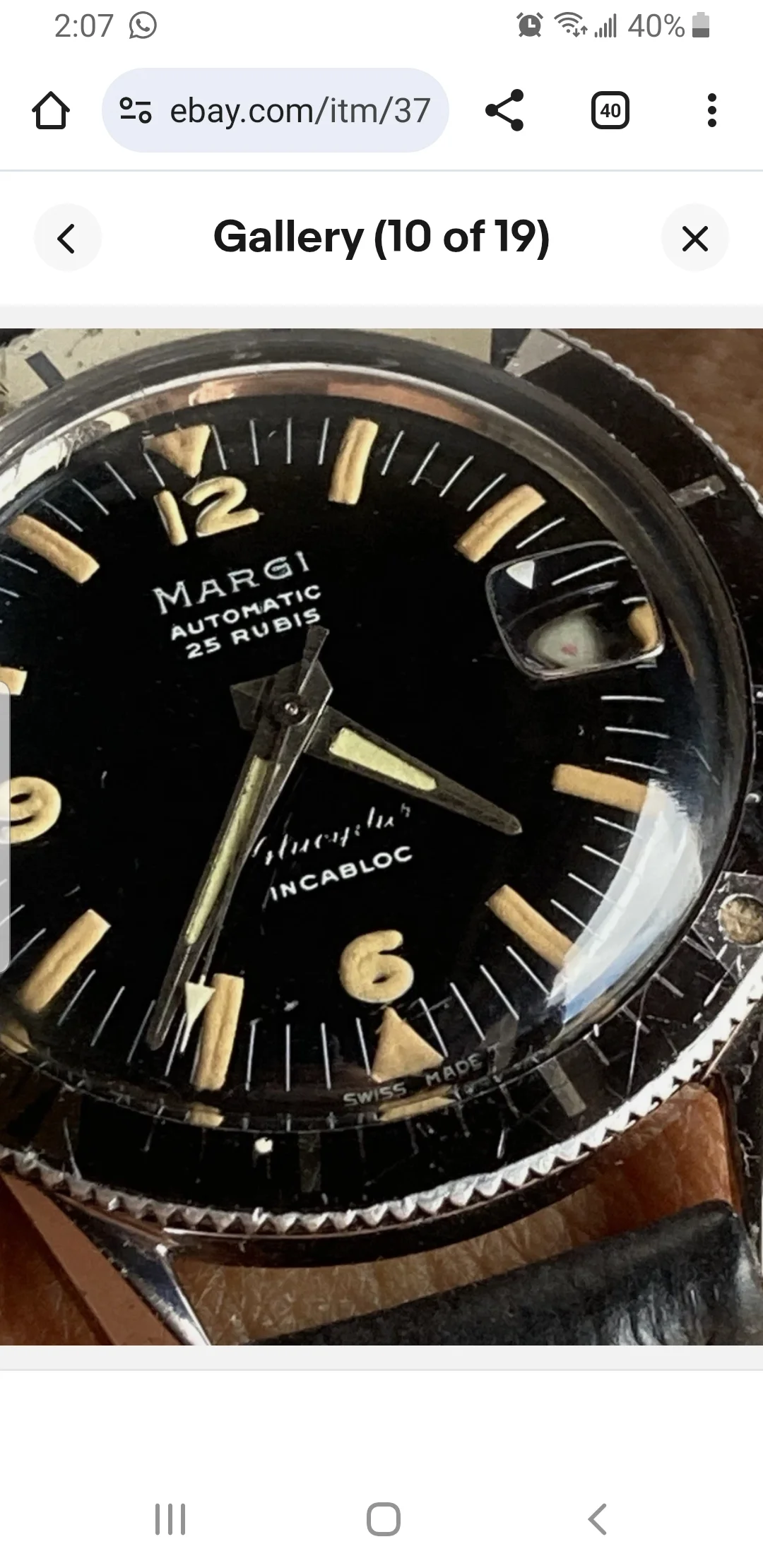 The seller claims that it dates to the 60s. If true, then it has aged remarkably well, but I have my doubts. I have asked for shots of the movement, but have not yet gotten a response.
