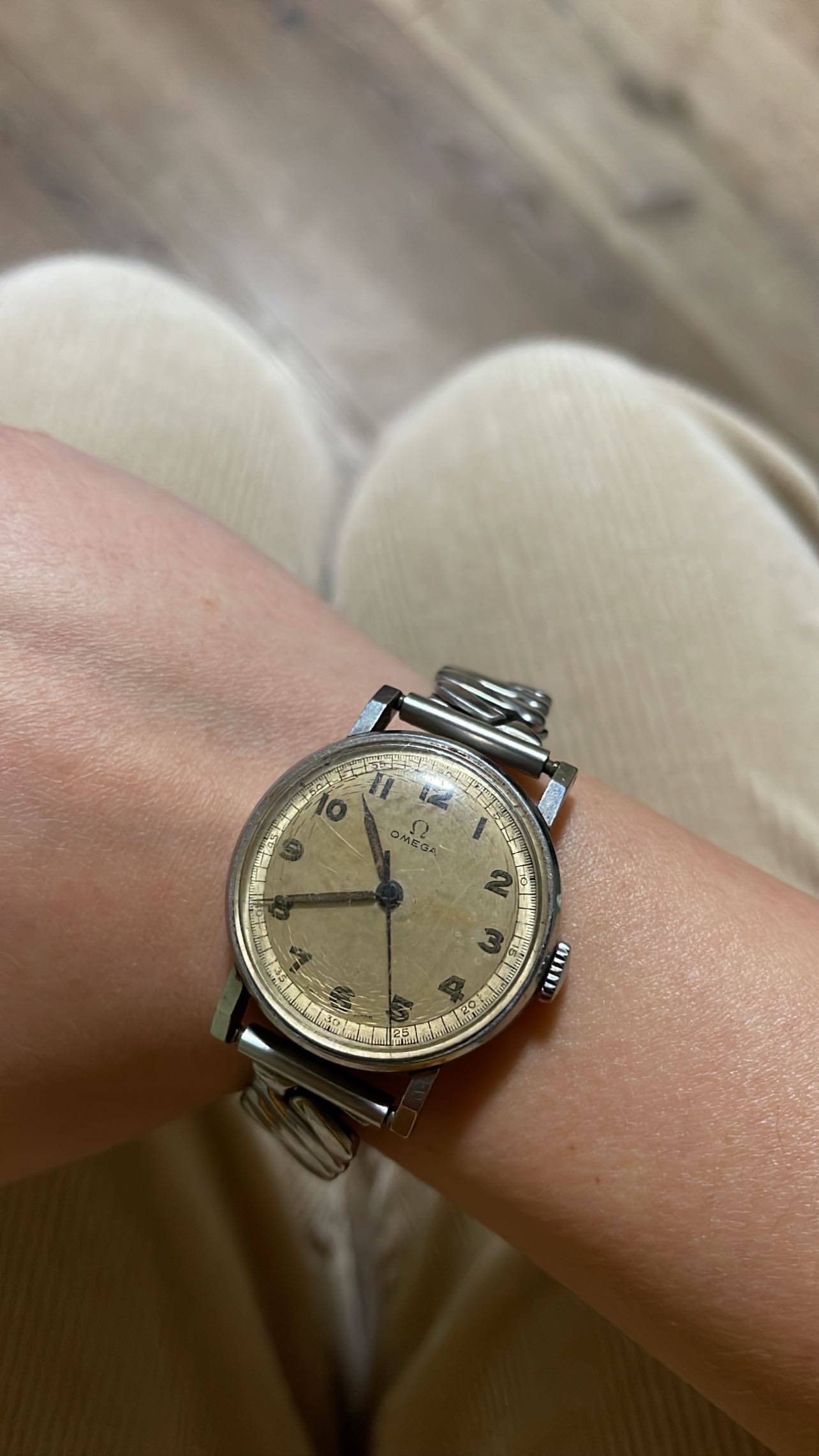 It came to me non-running and with a bad crystal. But I saw the potential of what this could be. This oldie has a lot of character. I love the minute track and the lugs. I'm going to move towards older Omega now.