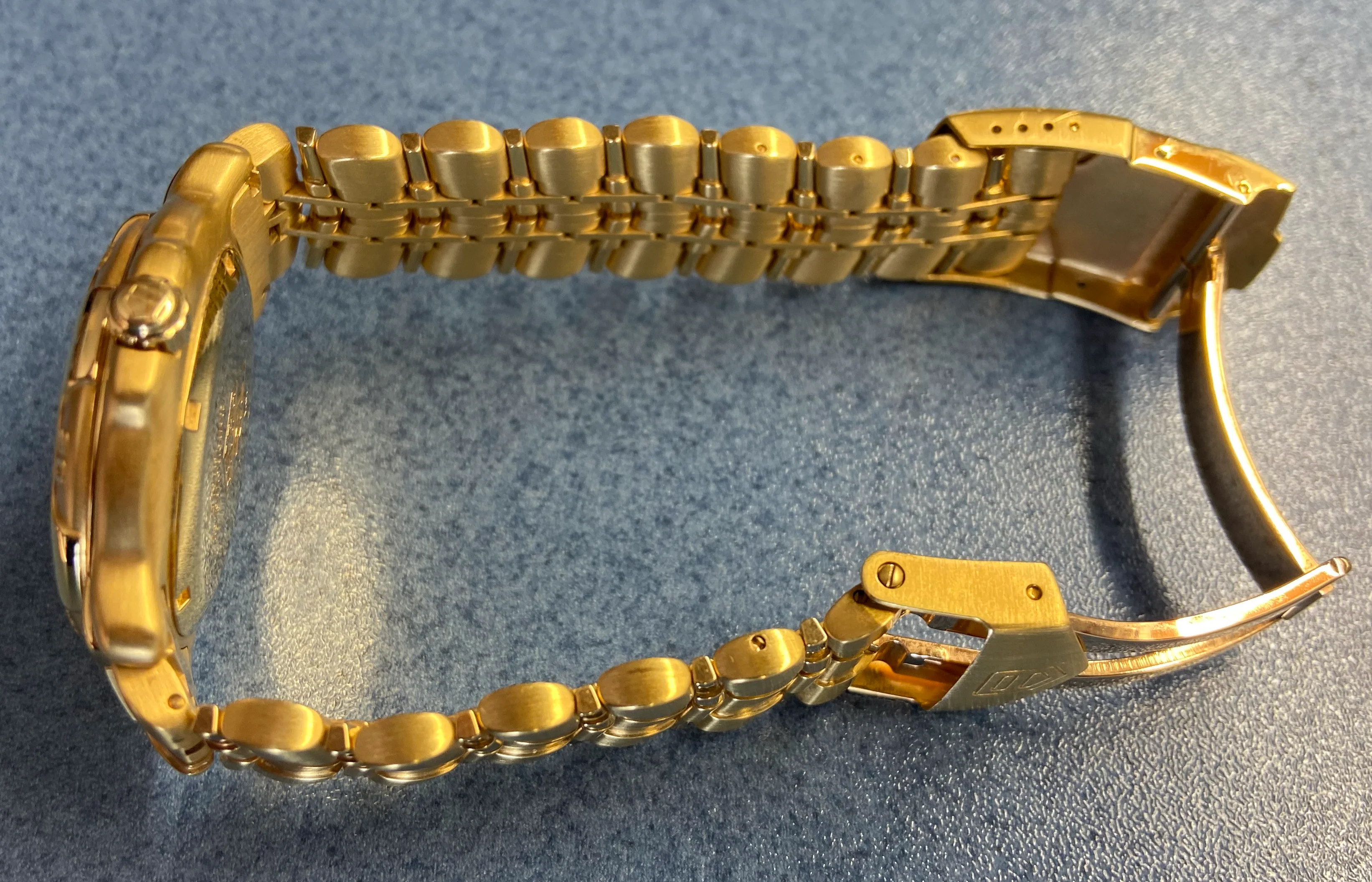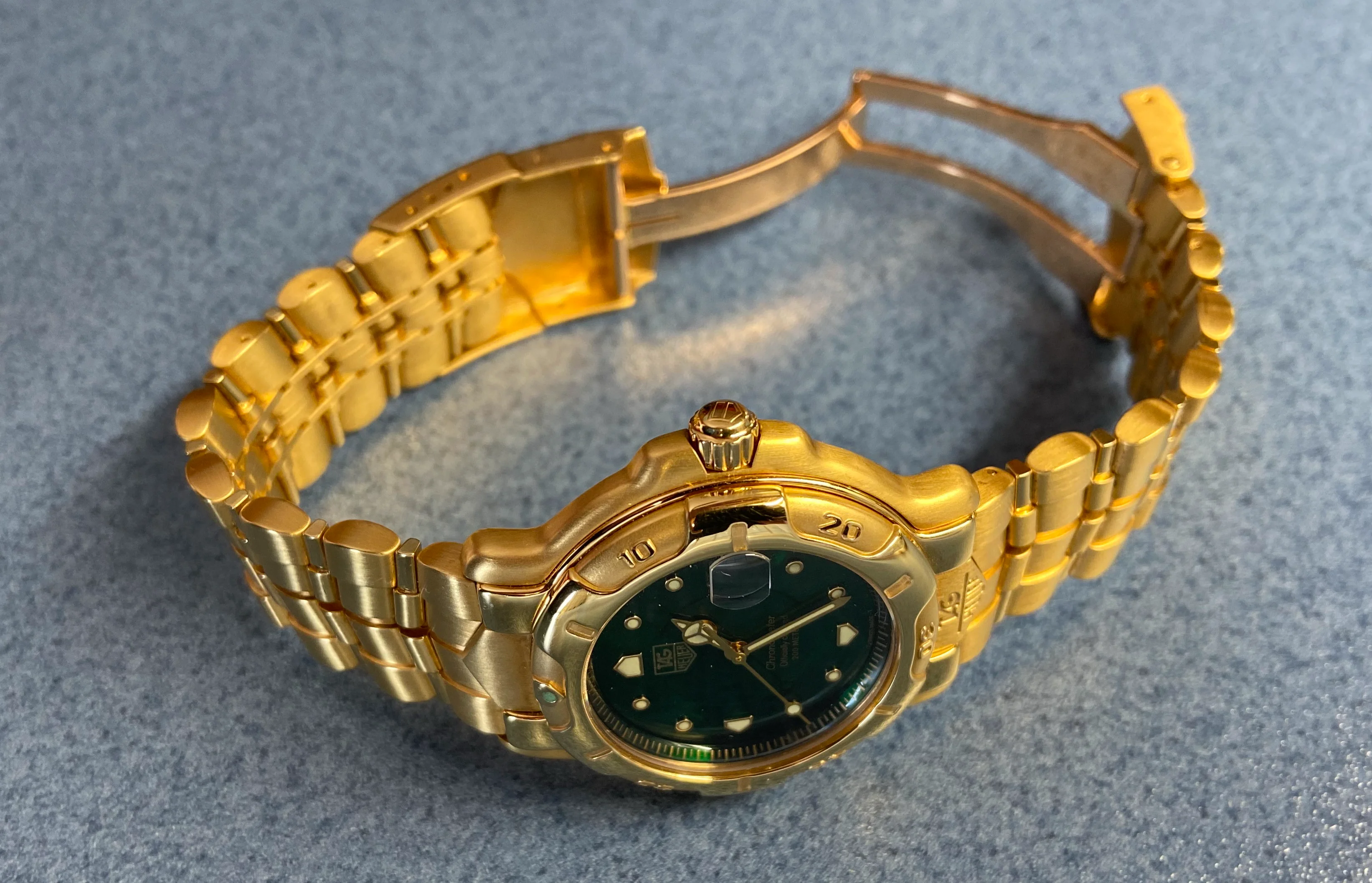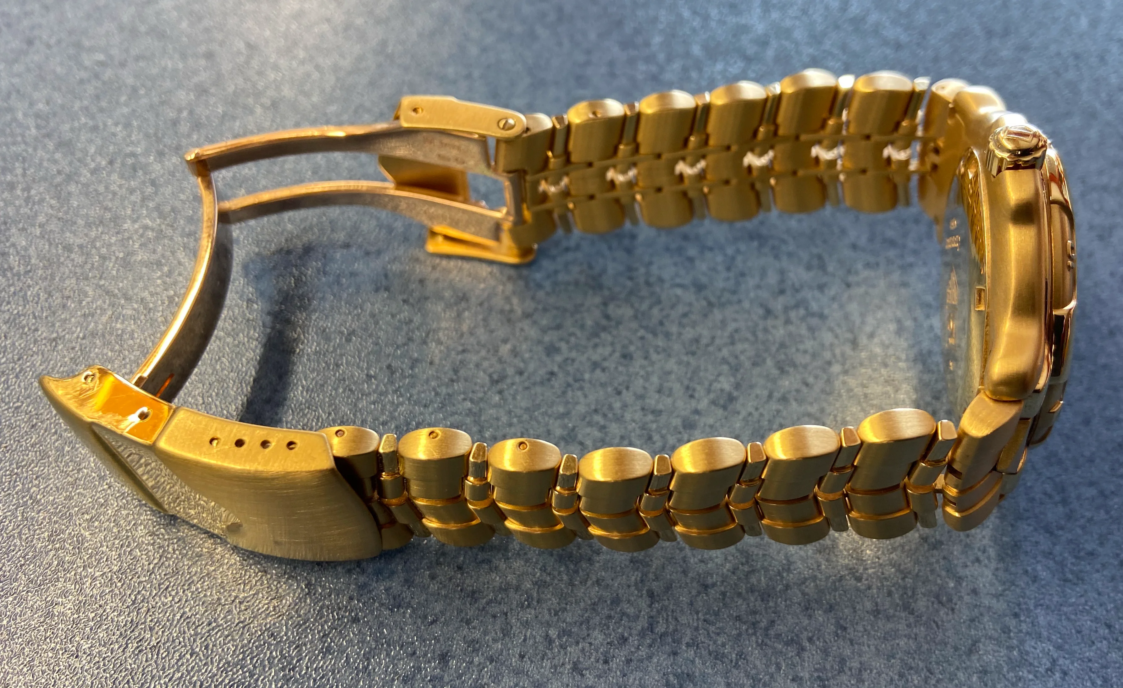 The OP's watch doesn't look polished, but I'm still puzzled by the color of the metal. Maybe it's the lighting, maybe it's the camera, but it's not what I'd expect. All the other pictures I've seen of solid 18kt yellow gold watches, including gold 6000s, look "gold".