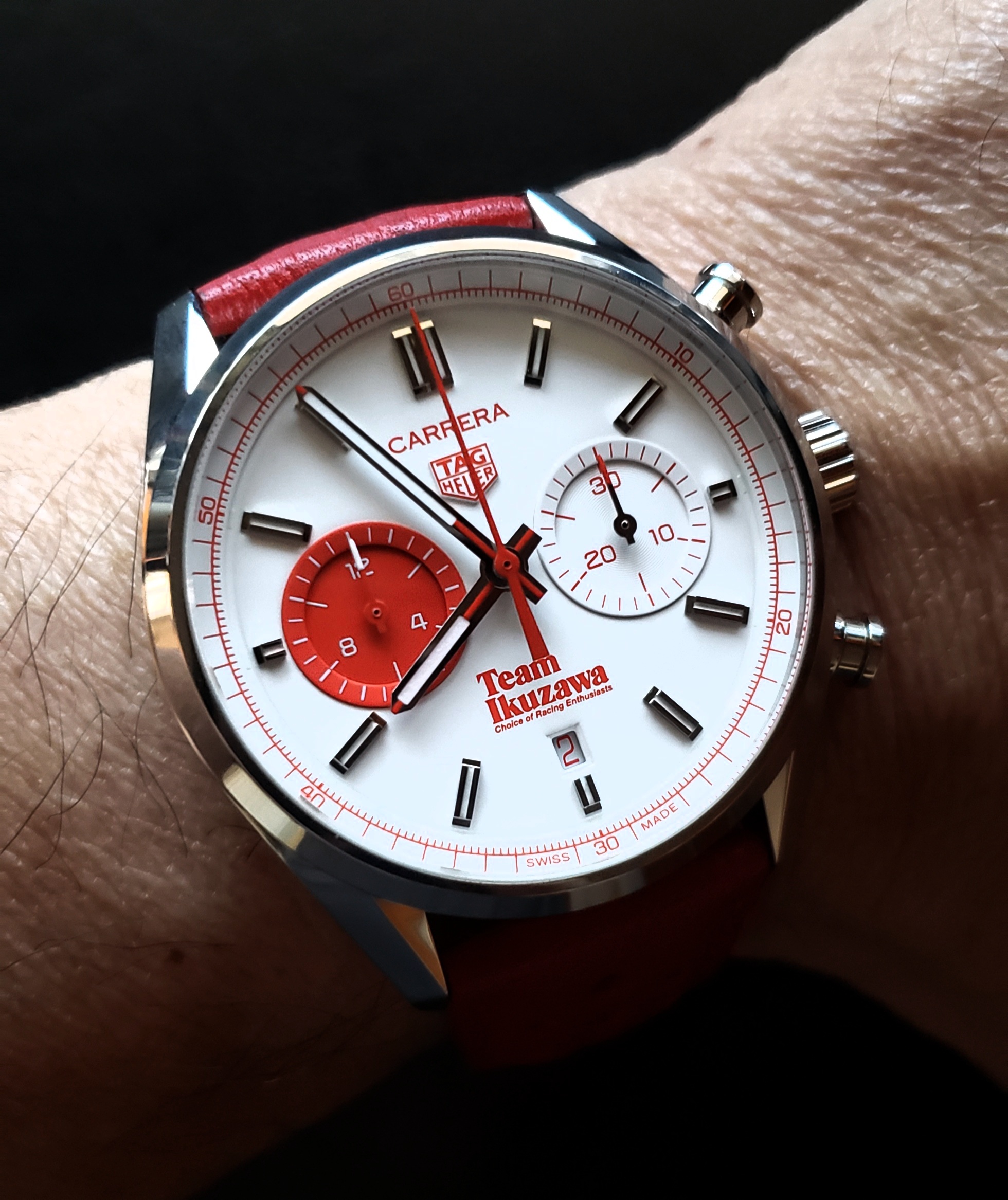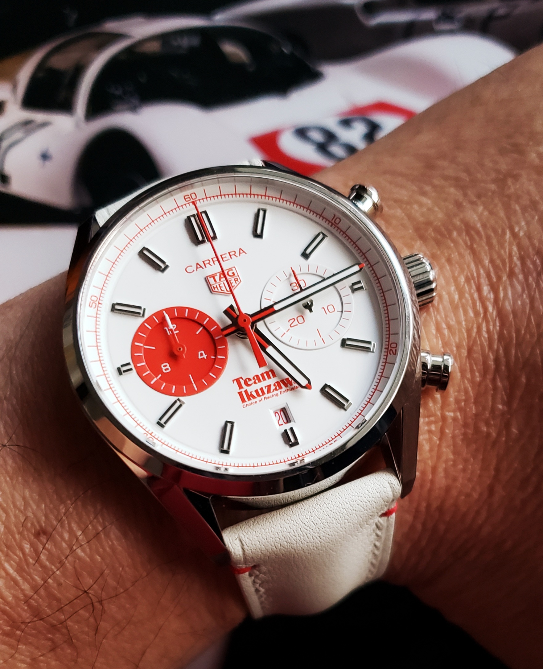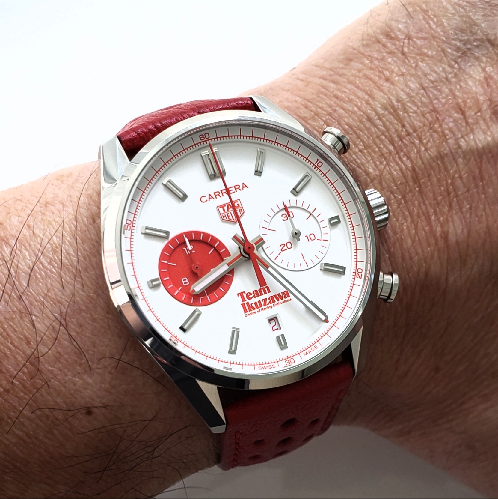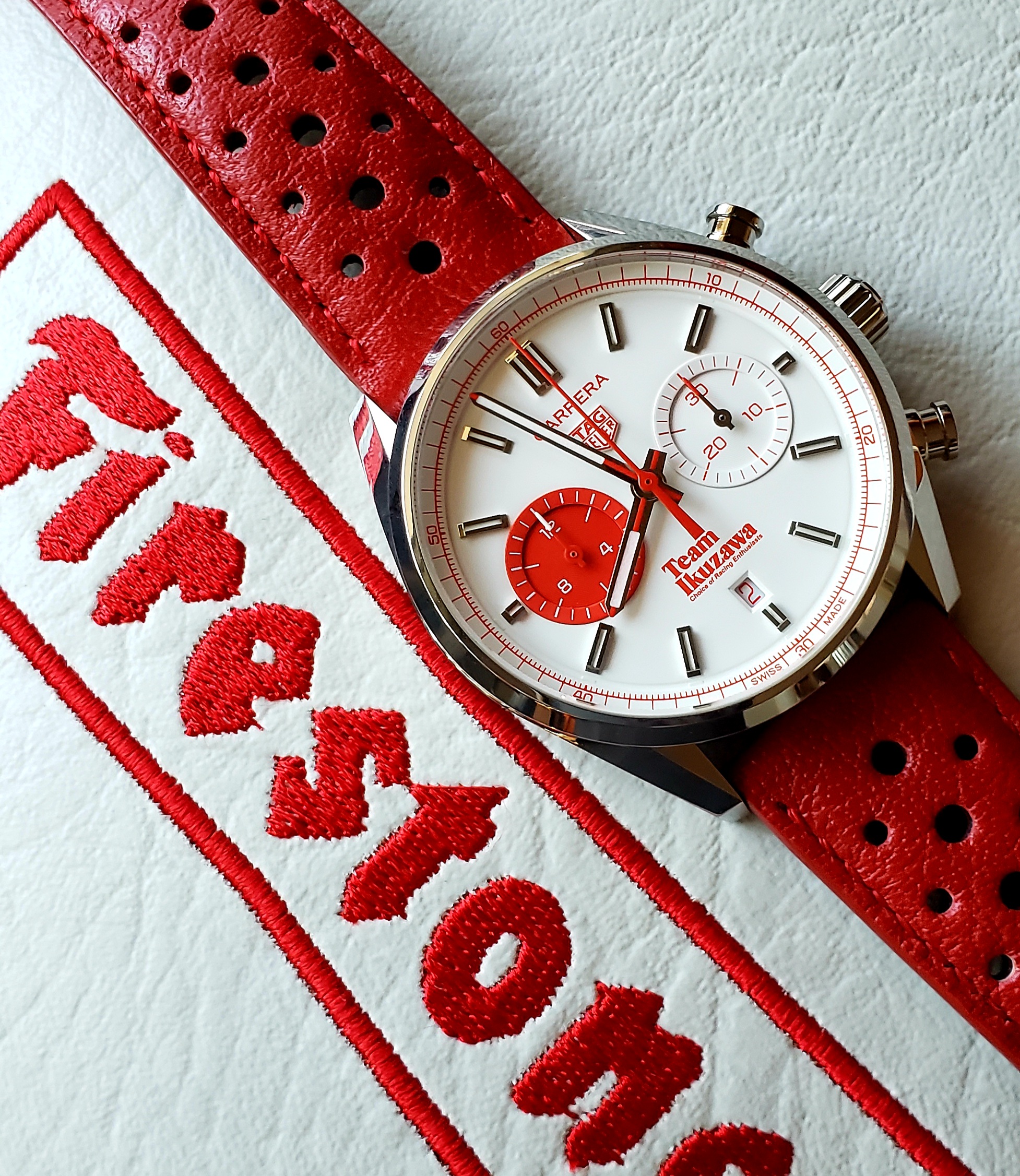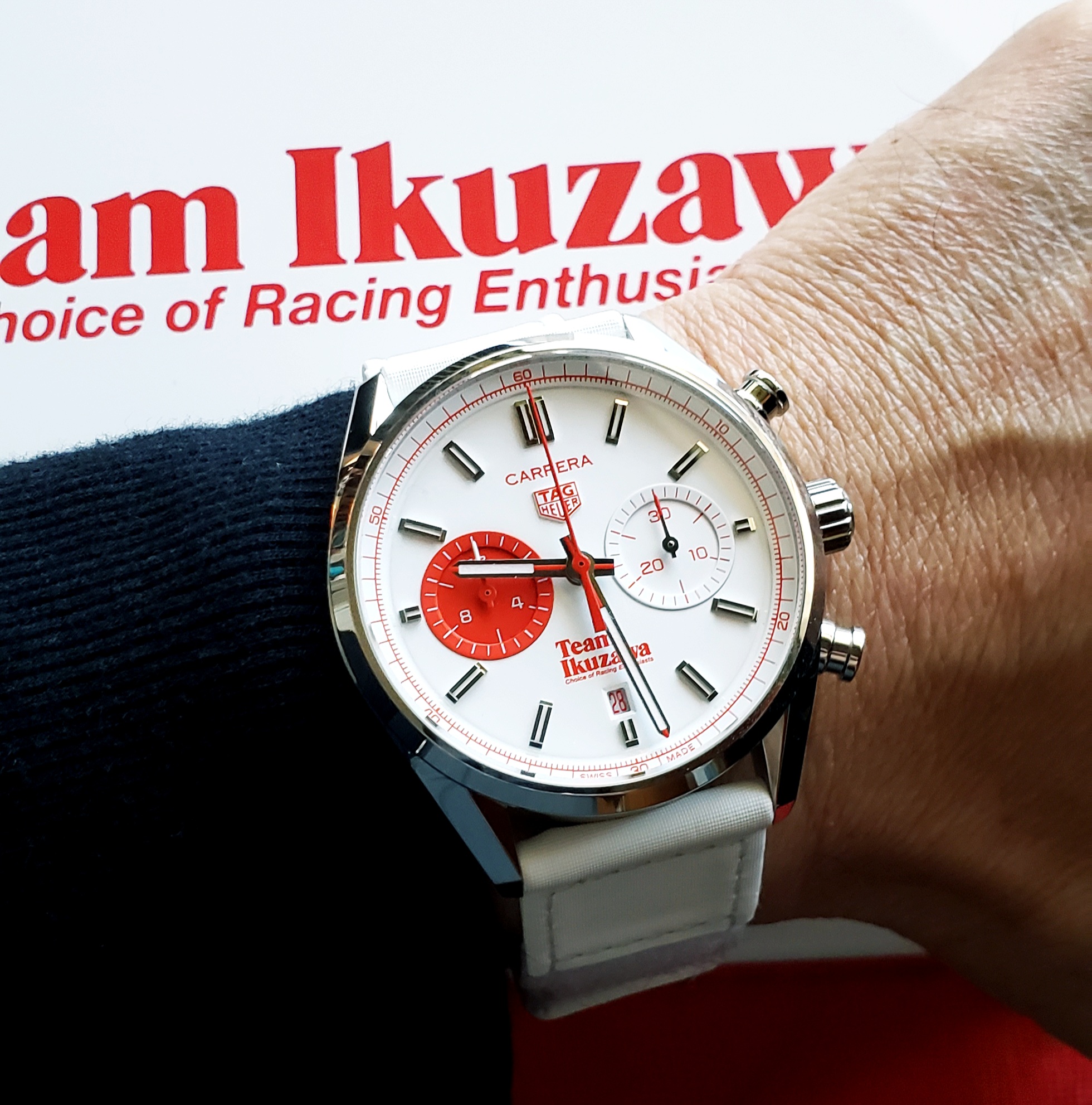 Since spares of the Team strap can't be ordered, I had this custom white leather strap made. It just arrived and I'm happy with this look. 😀