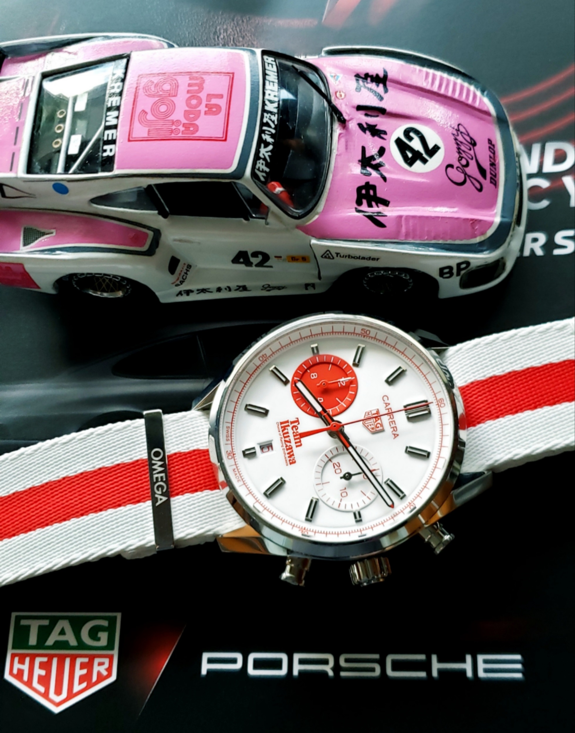 His rival at that time was Shikiba, who drove a Porsche 904. He started a company called Racing Mate and sold car supplies. At that time, Shikiba custom-ordered Heuer Monza with Racing Mate logo.