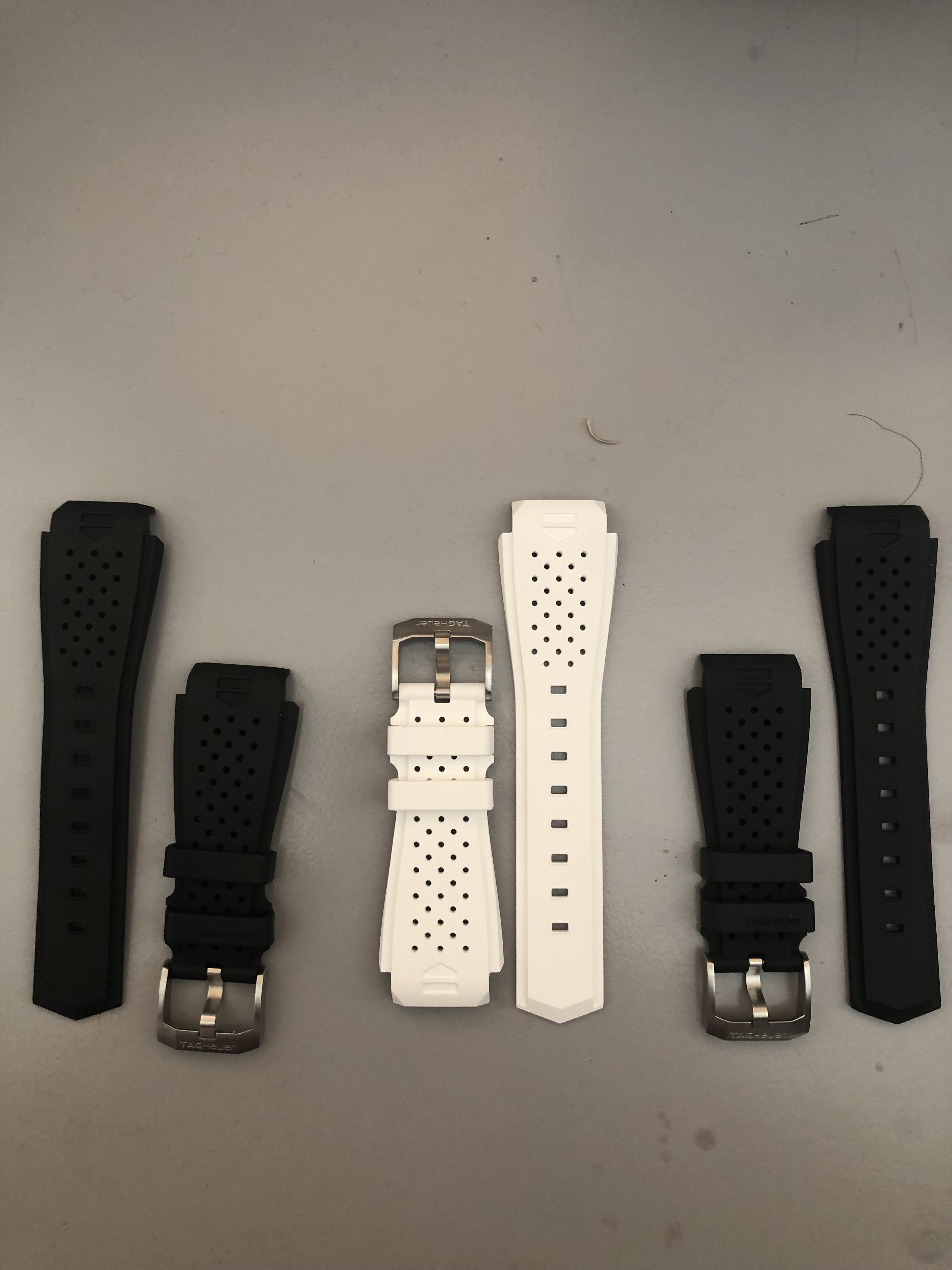 ·Hi everyone, I have a few nearly new and brand new rubber straps for sale. Genuine straps which fit the modular 41mm watch, they are of the standard 8 hole adjustment variety in a few colours. Prices range from 95 to 125 British pounds depending on the strap plus postage on top. I can of course include more straps in the same package to save on costs.