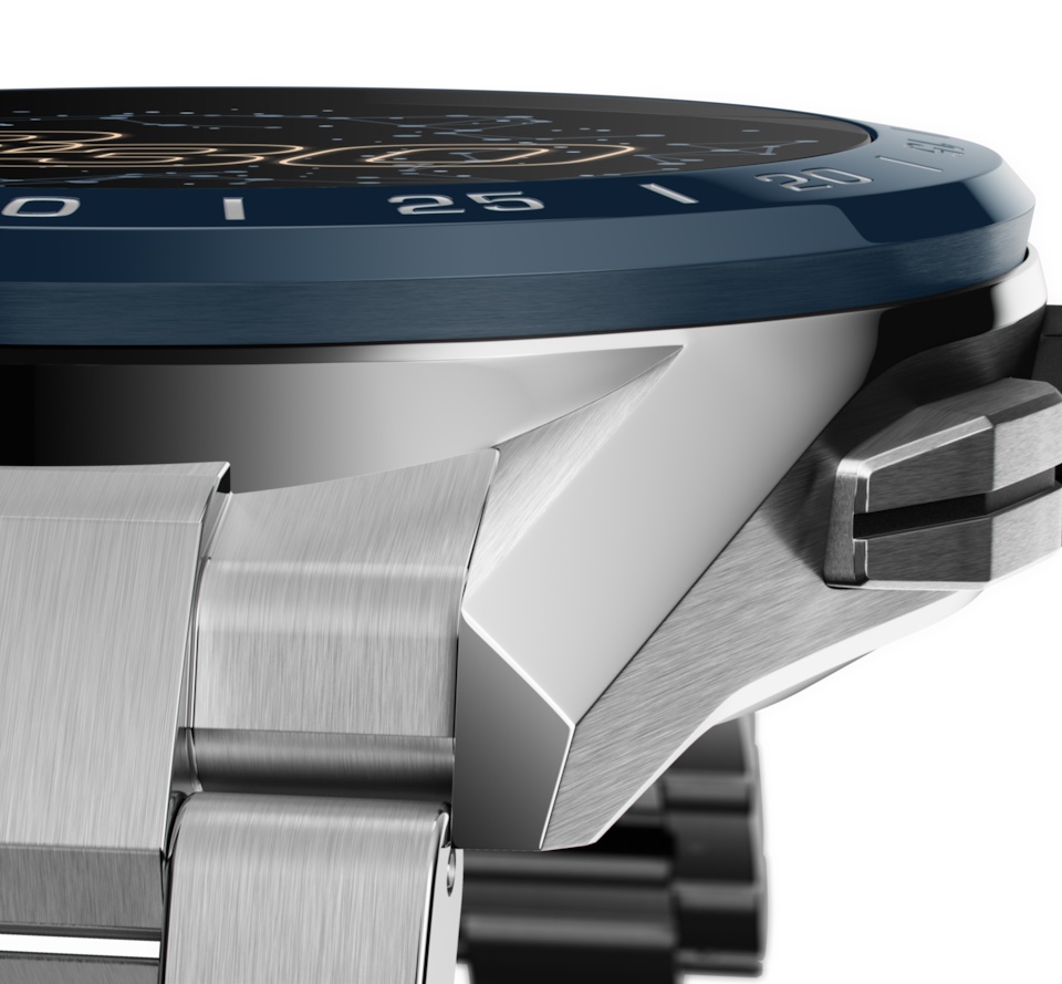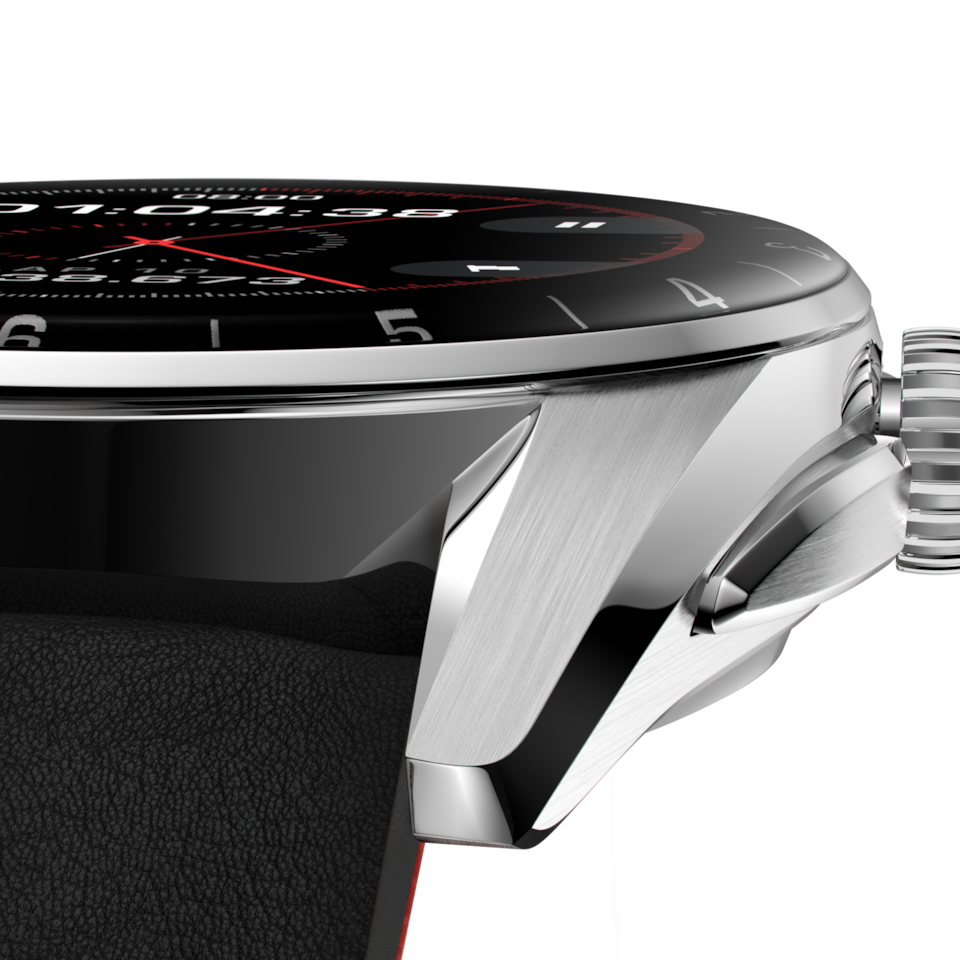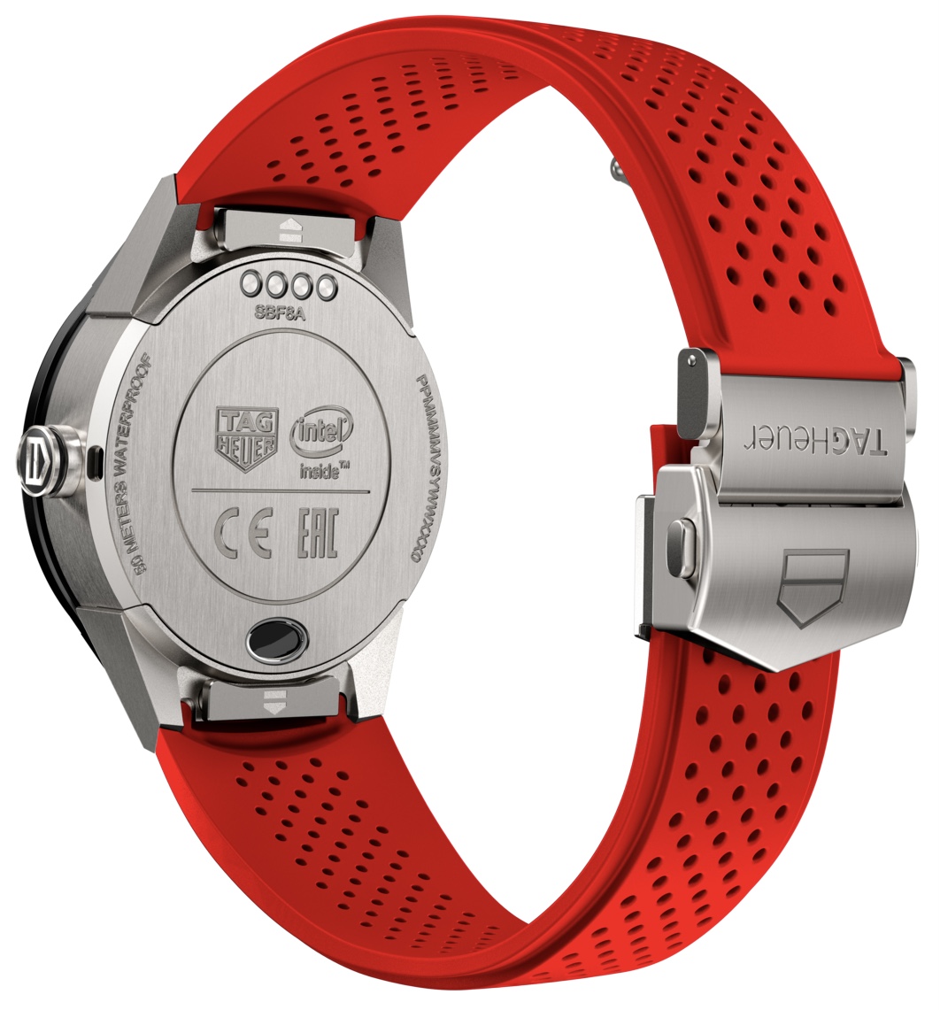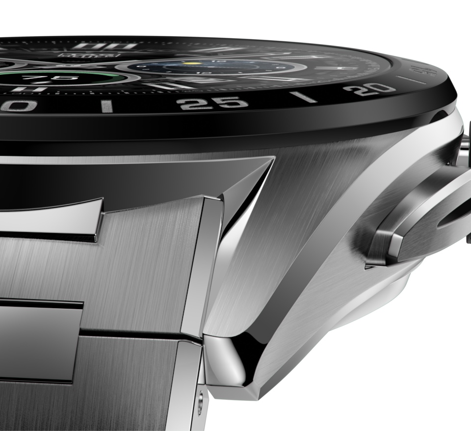 'SWISS MADE' text on lower wing. This is the first Swiss Made smartwatch ever, and the only Swiss Made TAG Heuer Connected generation.