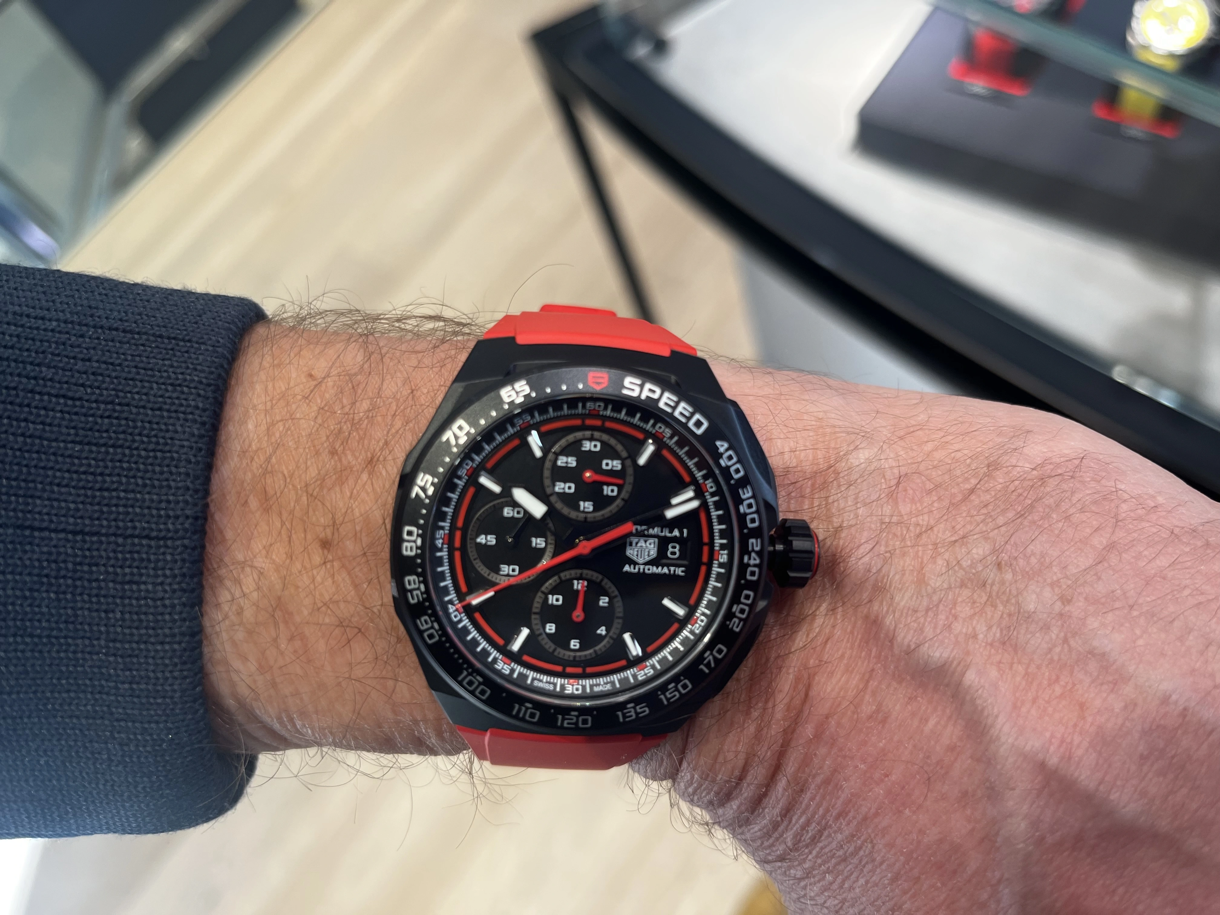 We visited Harrods this afternoon, spending way too long in their various watch boutiques, and finally had a chance to try on one of these. And, it feels every bit of its 44mm width. I was also a little surprised it felt as heavy as it did, I thought the titanium case would feel lighter. Is the Calibre 16 movement on the heavy side?