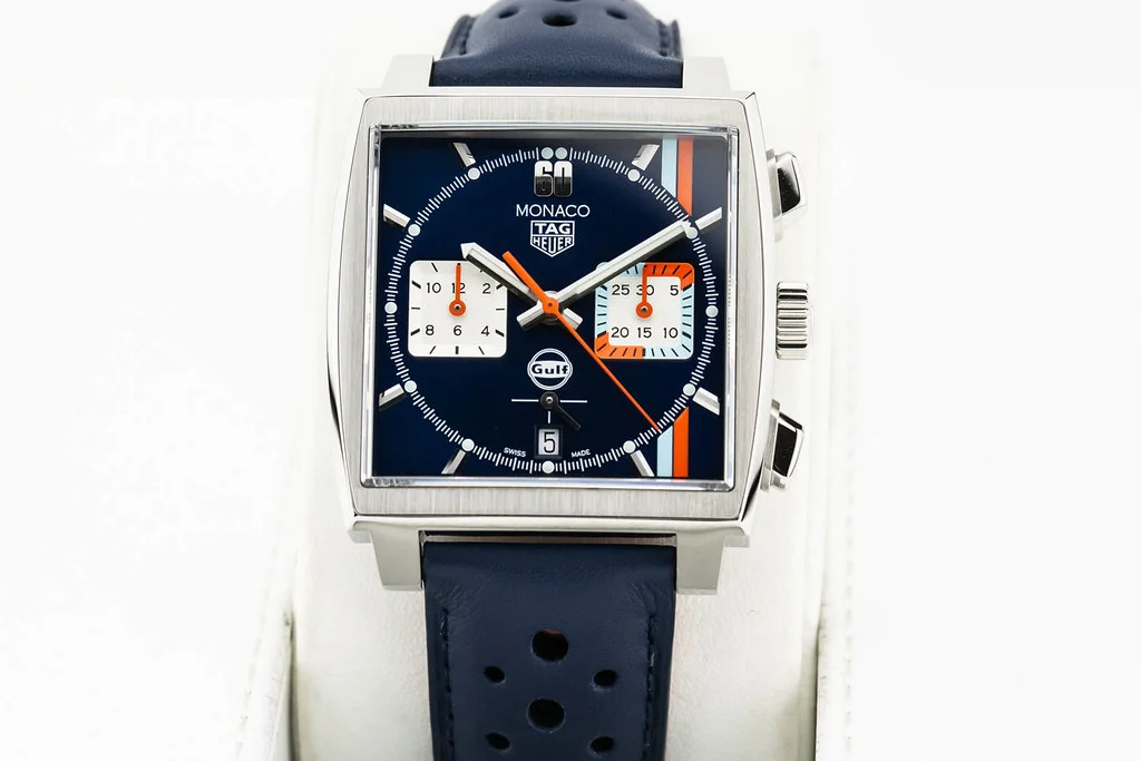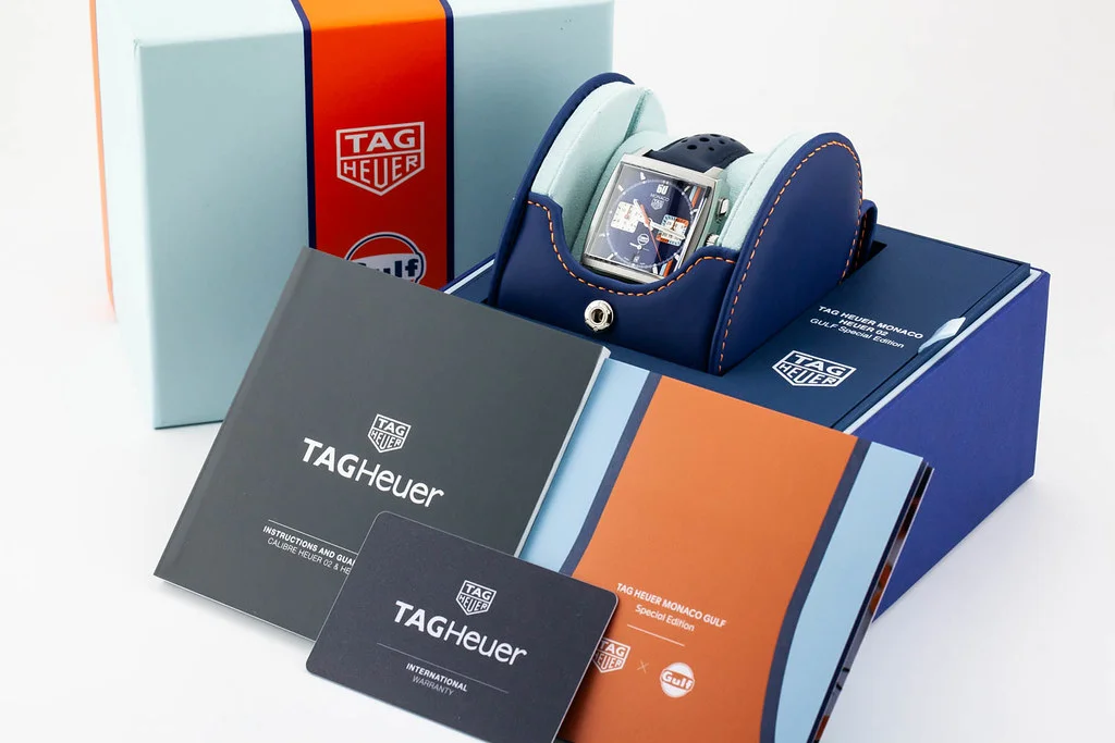 ·Up for sale is a brand new Tag Heuer Monaco Gulf Special Edition on Leather Strap, reference # CBL2115.FC6494. It comes complete with all boxes, papers, booklets and Tag Heuer Warranty Card dated October 2025.