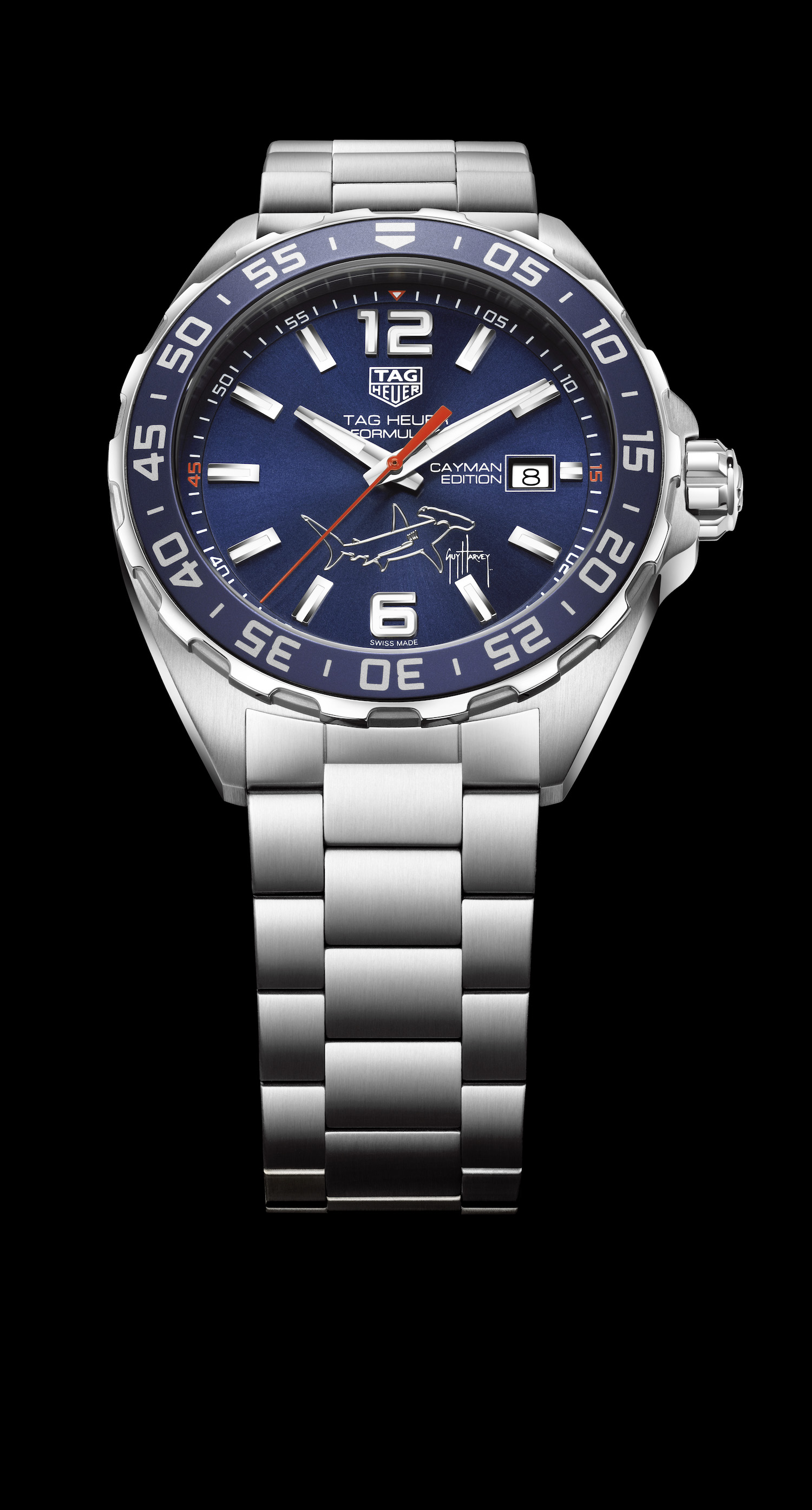 - Formula 1 Men: Featuring a Hammerhead shark drawn by Guy Harvey on its blue sunray dial enhanced by a sporty matt blue aluminum bezel. Fine-brushed and polished steel case with a diameter of 43mm. Fine-brushed steel bracelet