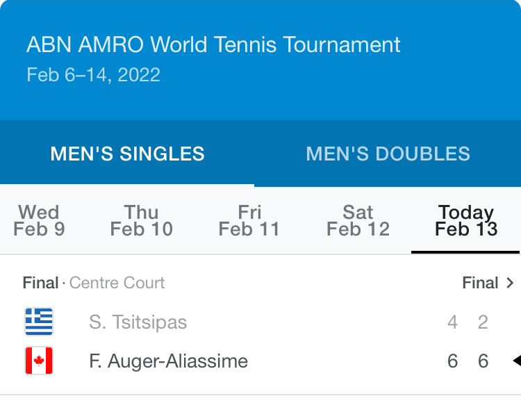 AO Q-F: Felix A-A 2 - 3 Medvedev. What a match. Who knows, maybe a few minutes rain break turned it, maybe not. I would happily wish the "big three" a pleasant retirement if we can see more of these two guys at the top of the game.