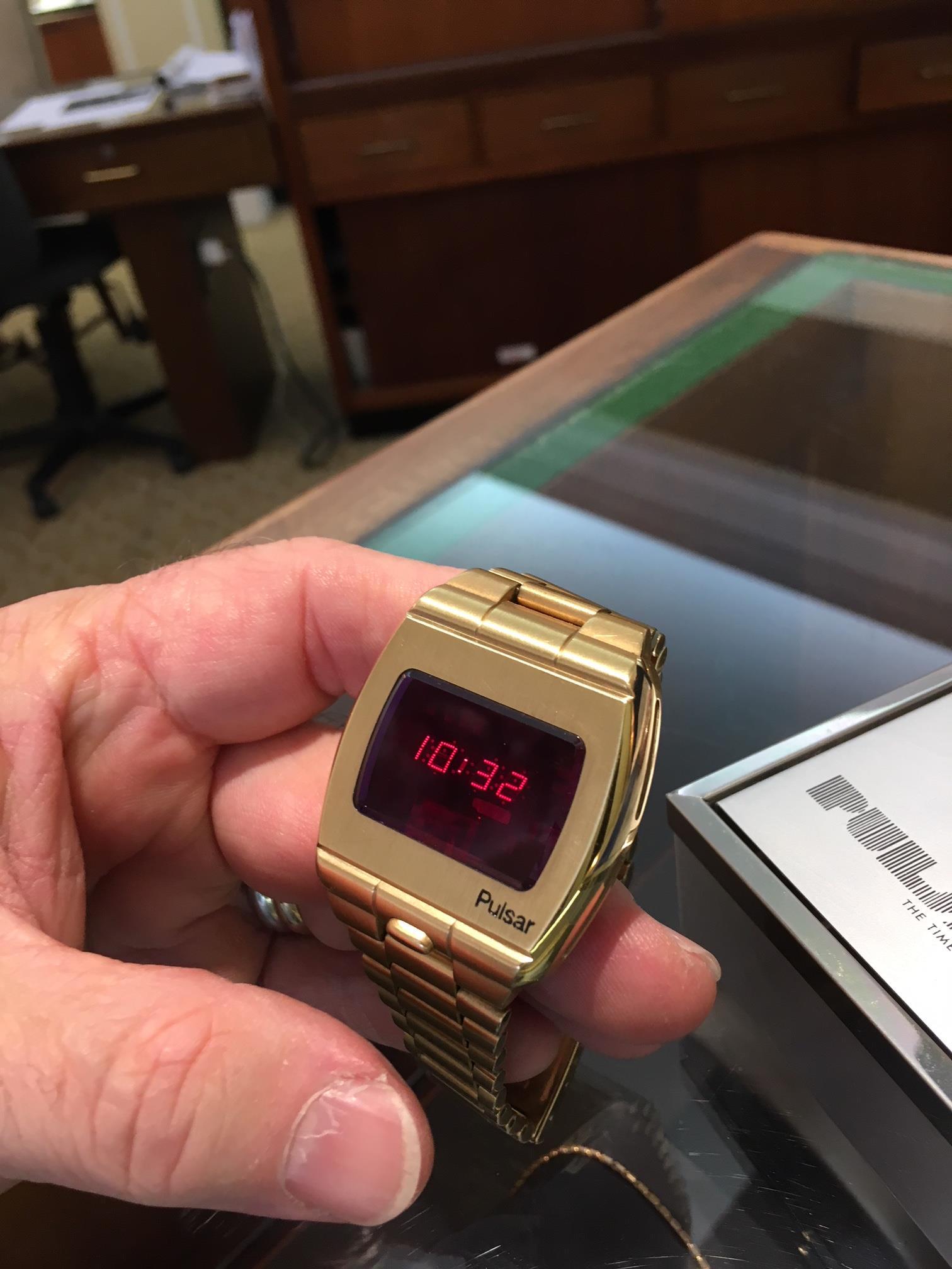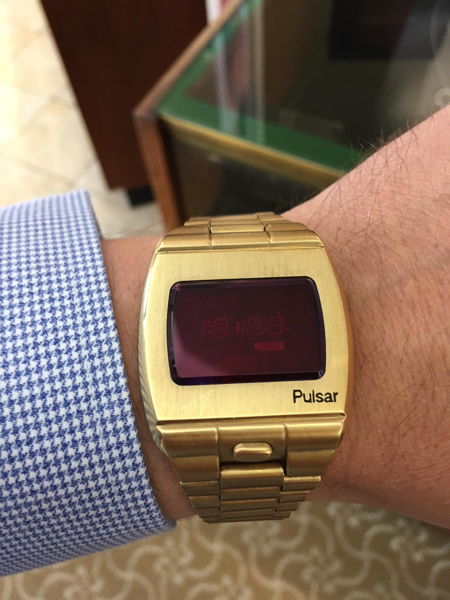 Without getting even more goofy than this post already is, I had the pleasure of putting an authentic Hamilton Pulsar Time Computer (P1) on the wrist today. As the above links demonstrate, this is an important part of timekeeping history.