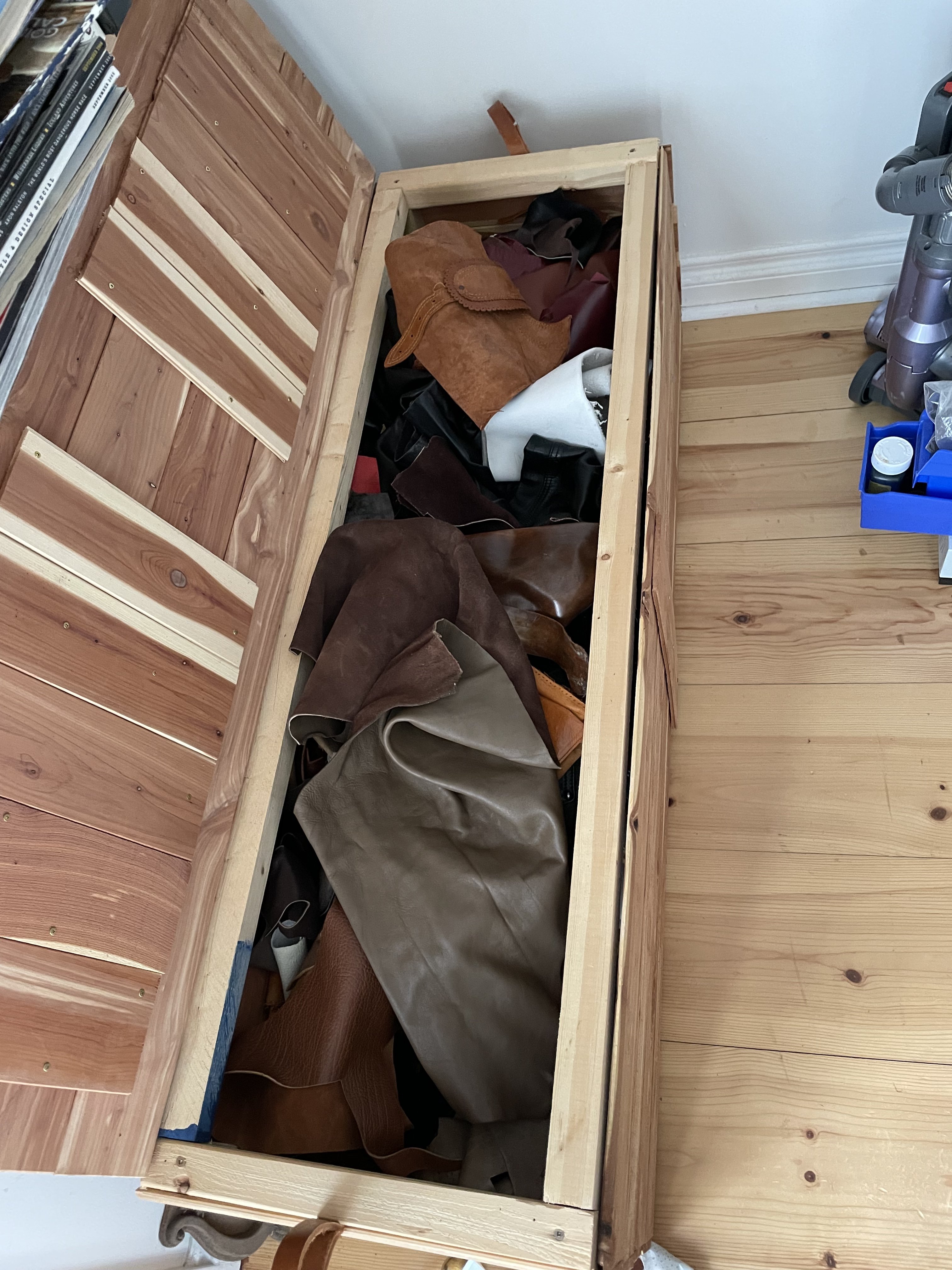 I then took Dave to part of my leather stash. He carefully selected some leather pieces and will make more of his outstanding items.