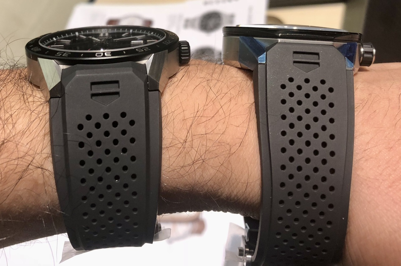 These are both watches side by side. Both with specific strap design, with only one (black rubber strap) available for the exchange watch, while many different straps and bracelets (28) were made for the Modular 45