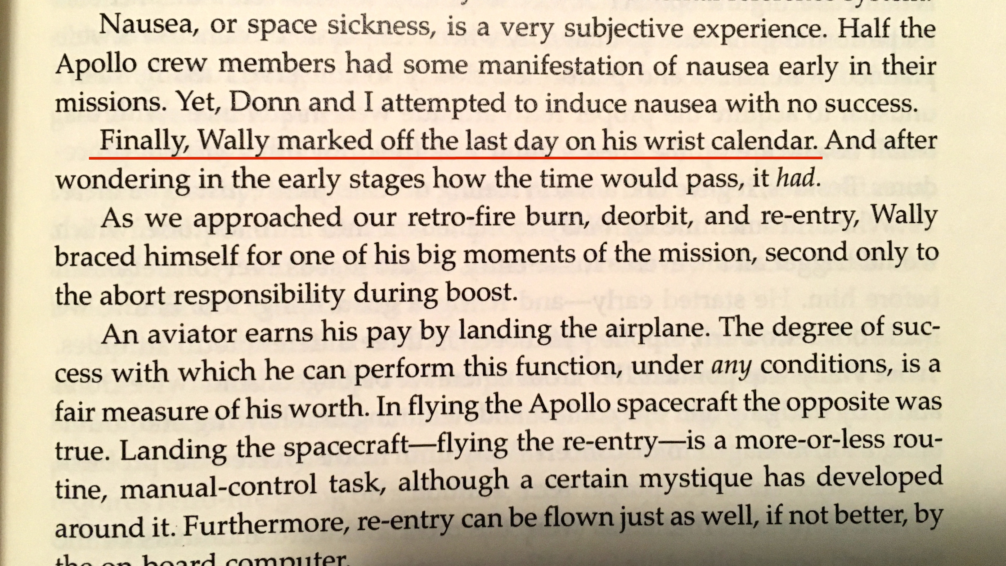 I had asked a few of the astronauts if they recalled the brand or manufacture of the calendars they used but none of them could remember. I thought after all they had going on this would be the last bit of information they would retain, and I was correct, at the time. Then a few months ago I woke up to an email from one of them with the word Timely in the subject line. His email said that he was working around the house and it just popped into his head. While I was thrilled to have the information I was more impressed that after years of memories flying jets, training, orbiting and walking on the surface of the moon I had inserted myself into the deepest reaches of an Apollo astronauts brain![]()
